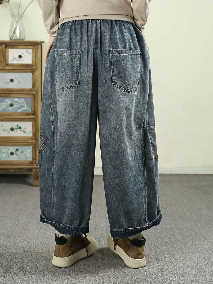 Pantalones harén de mezclilla vintage con estrellas empalmadas para mujer