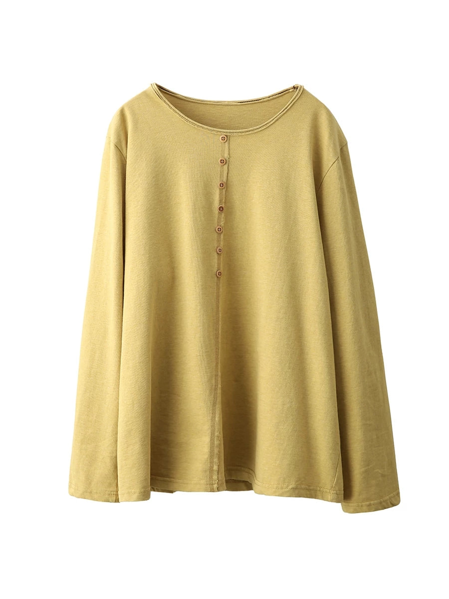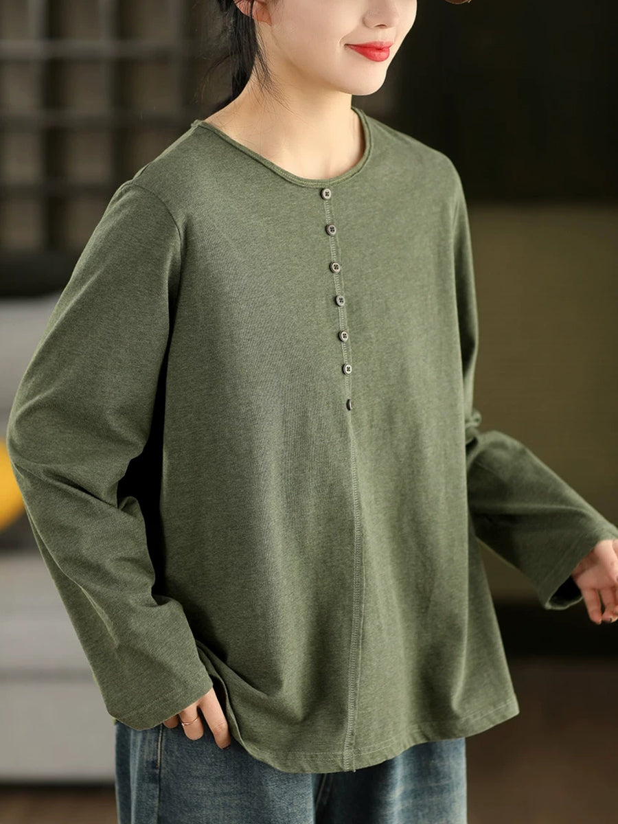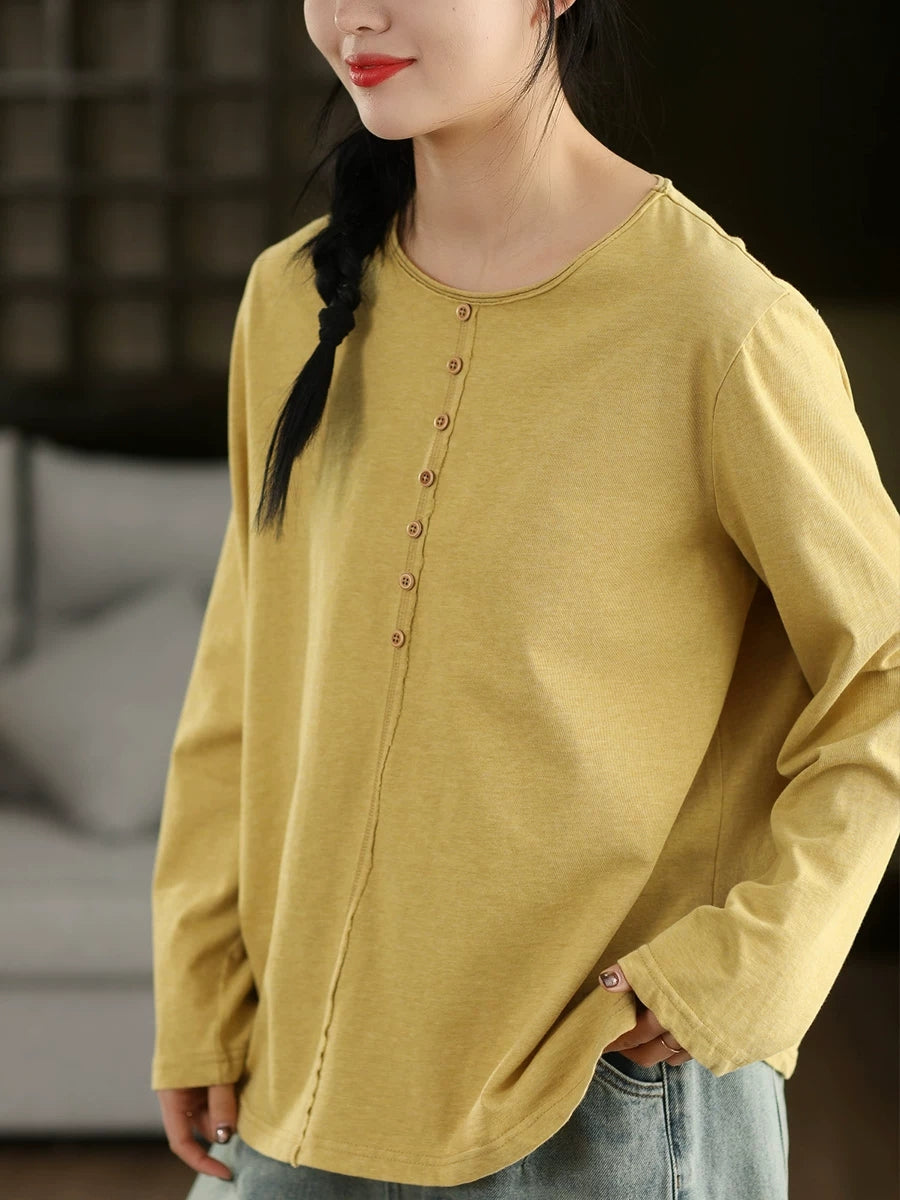 Blusa de cuello redondo 100 % algodón de color puro y estilo artístico para mujer