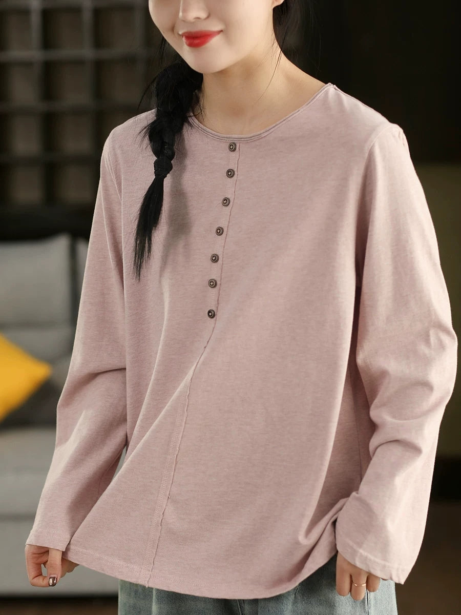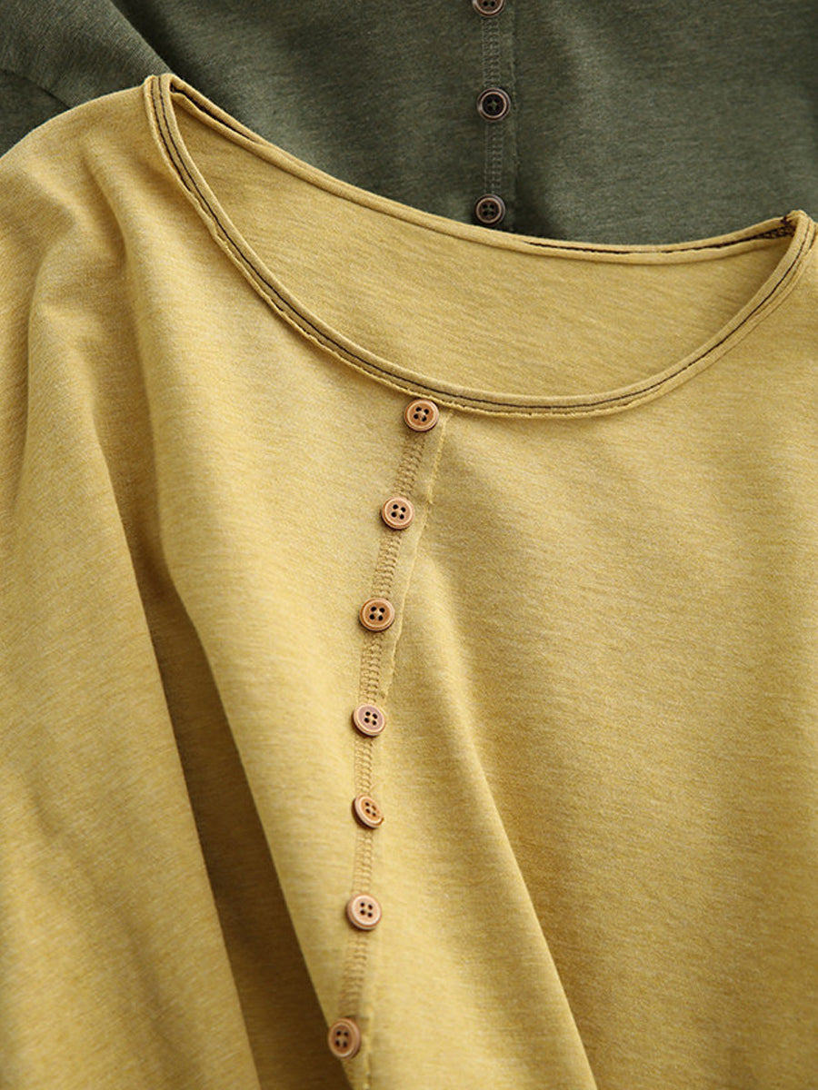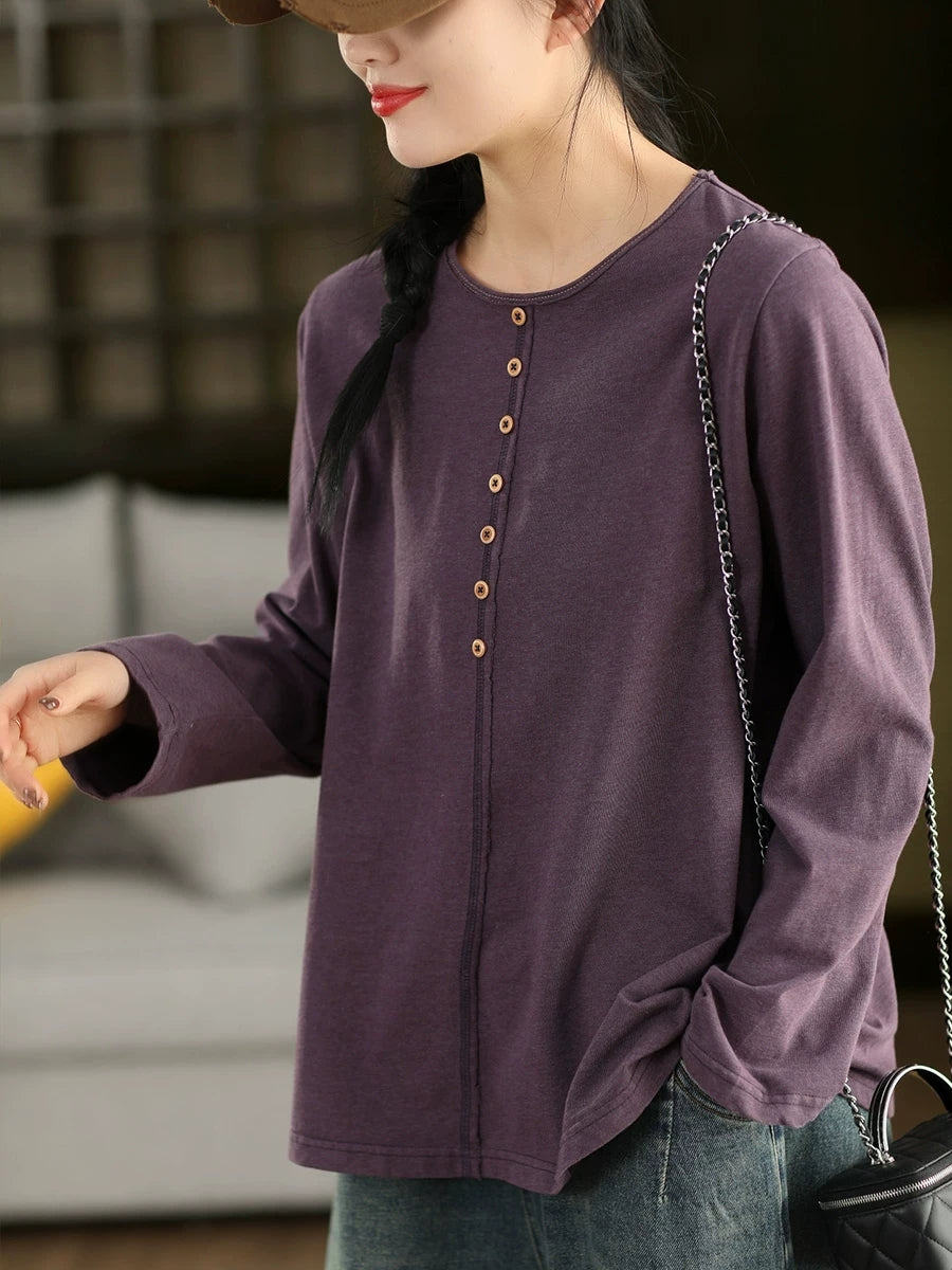 Blusa de cuello redondo 100 % algodón de color puro y estilo artístico para mujer