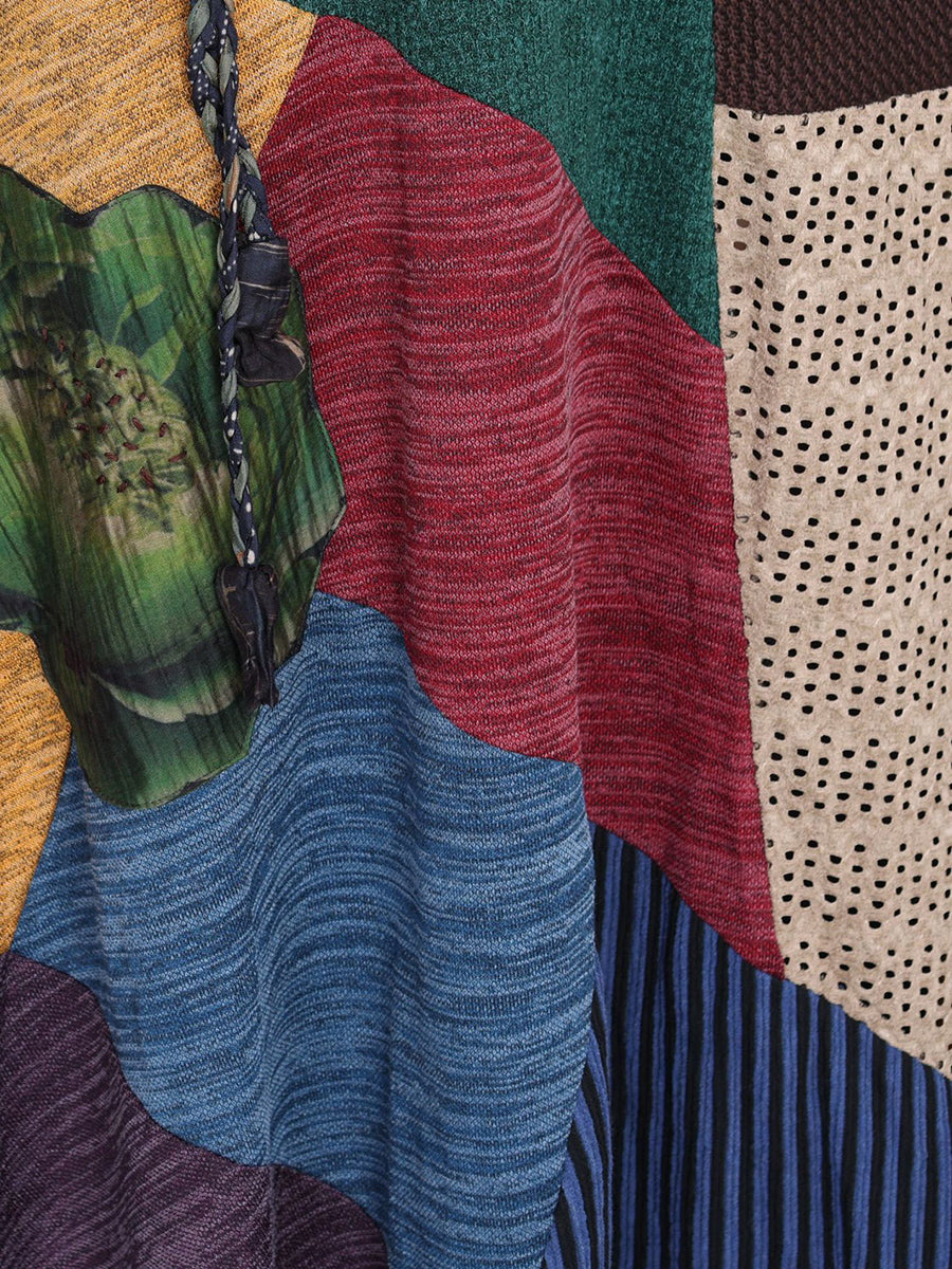 Este vestido, confeccionado en un 85 % de rhozinyl y un 15 % de elastano, presenta un cuello redondo y un dobladillo irregular. El estampado de hojas de arce le aporta un toque de singularidad, mientras que las mangas raglán y el largo completo brindan comodidad y cobertura. Perfecto para la temporada de otoño, este vestido llega hasta los tobillos para lograr un estilo sofisticado.