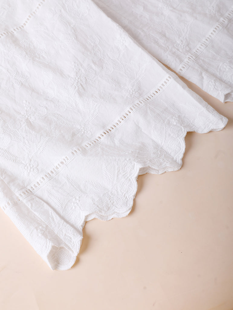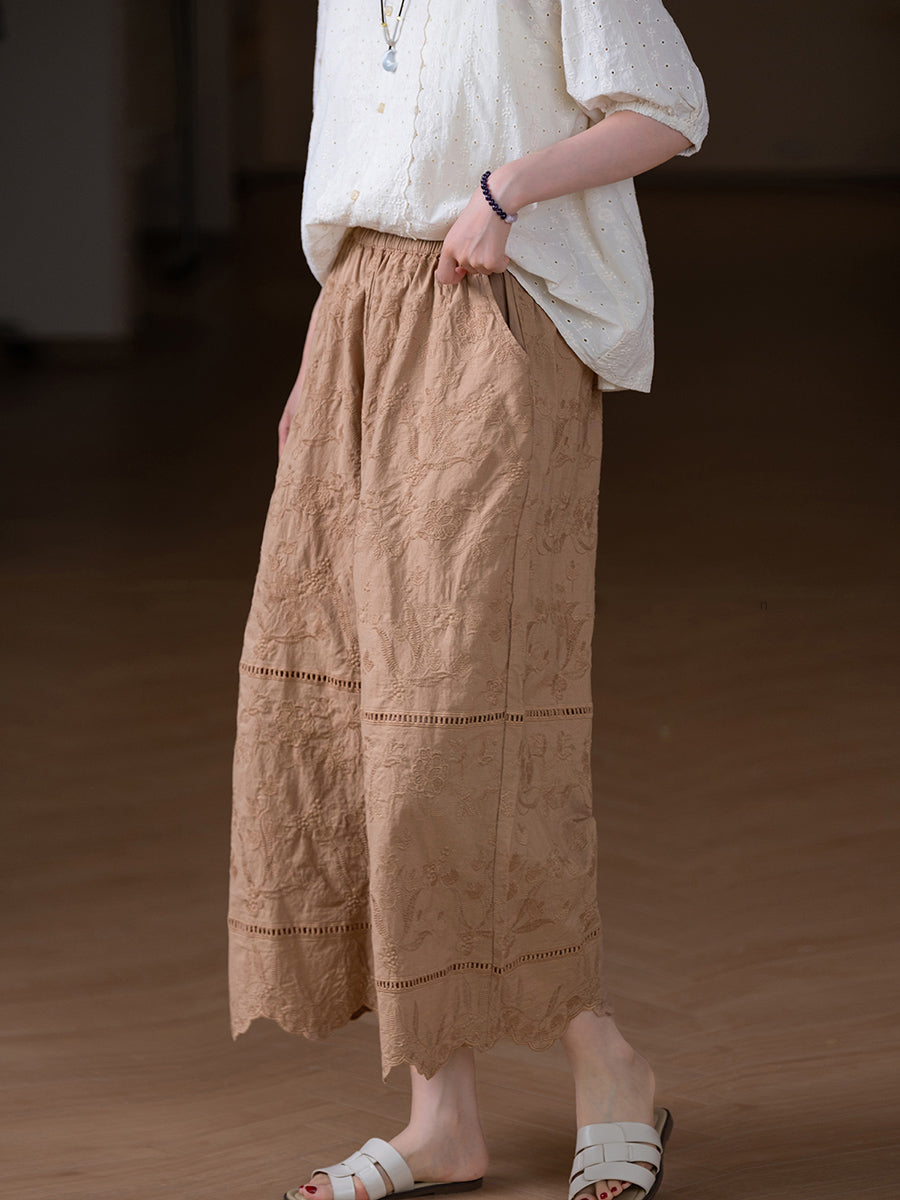 Pantalones rectos de verano para mujer, 100 % algodón, con bordado retro