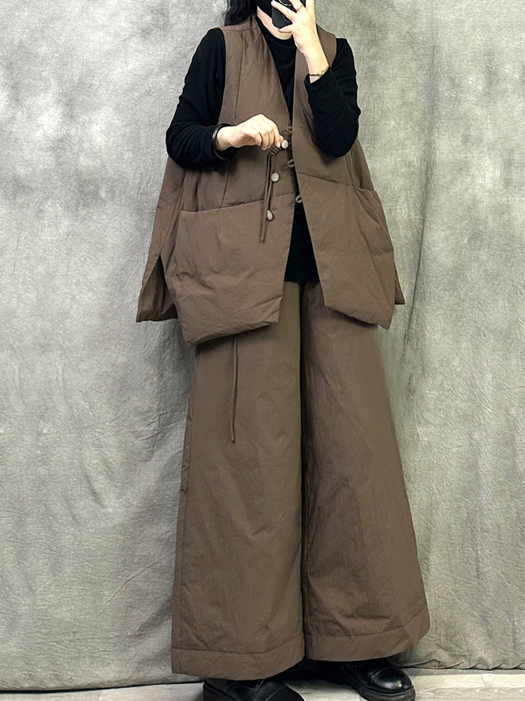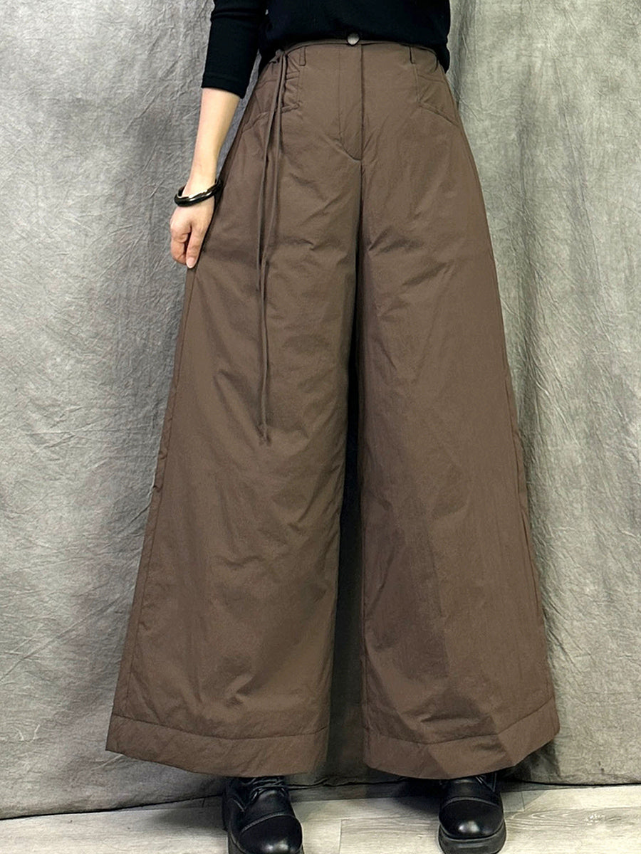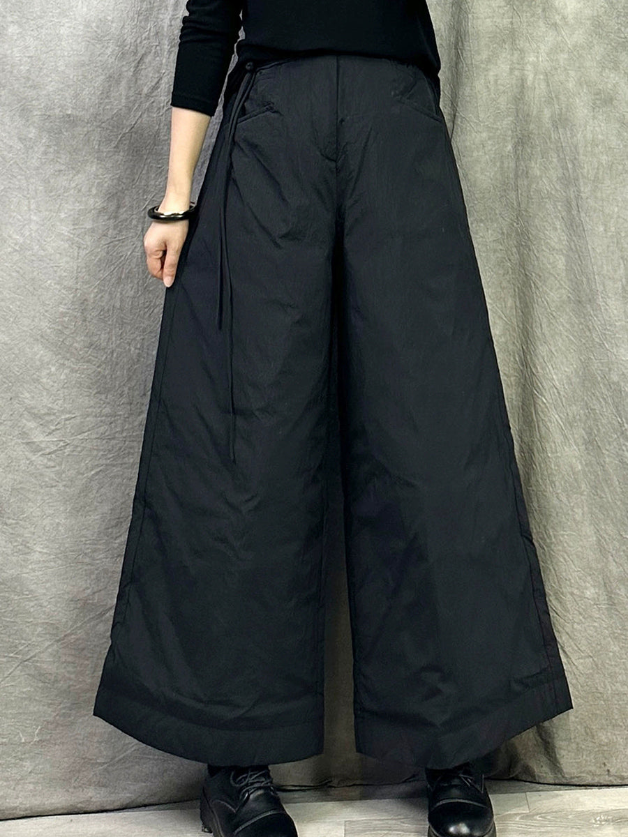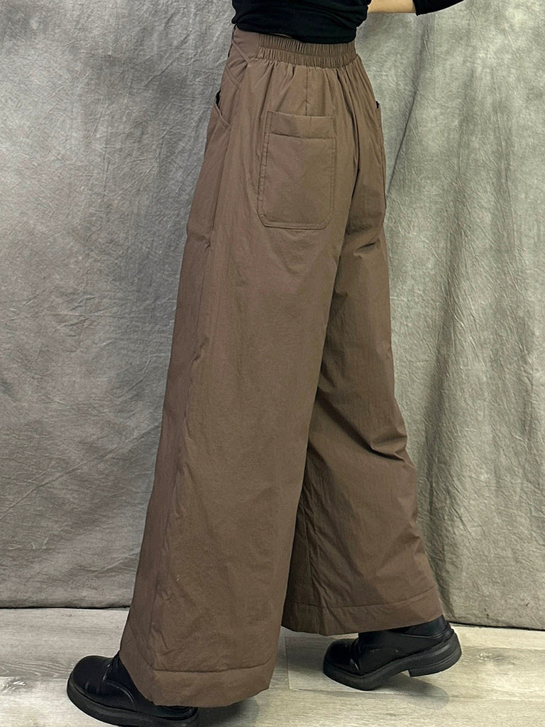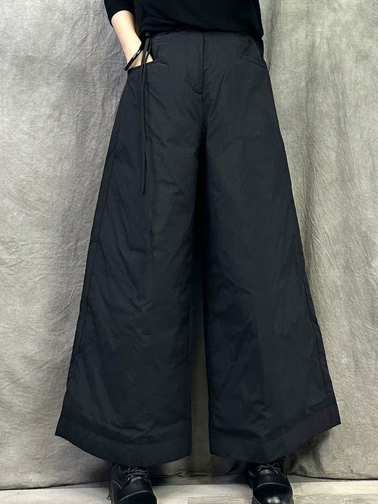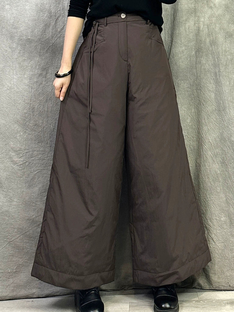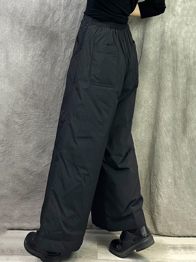 Pantalones de invierno casuales para mujer, de color liso y pierna ancha.
