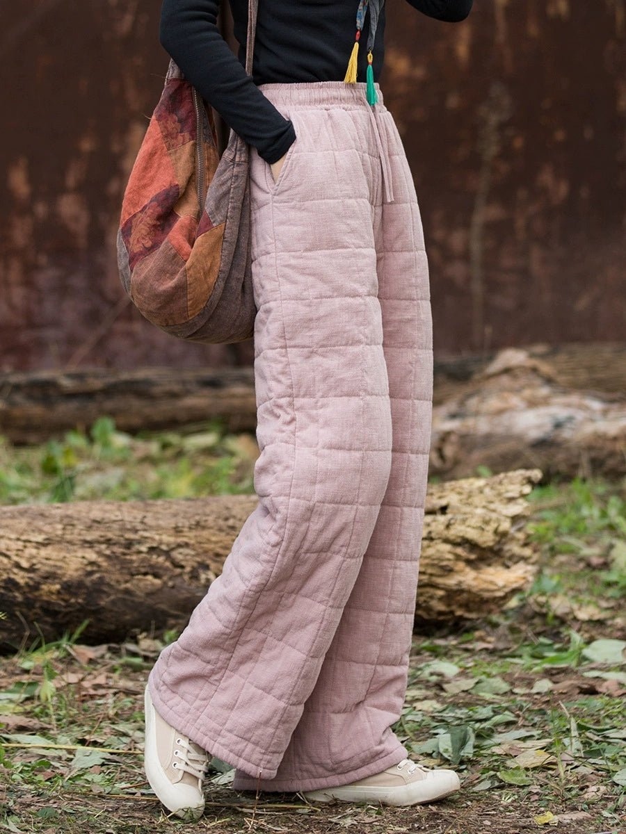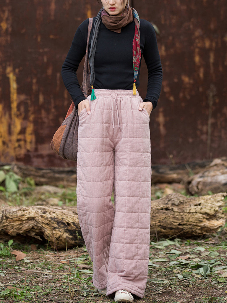 Pantalones rectos de invierno informales para mujer, forrados con forro polar de ramio