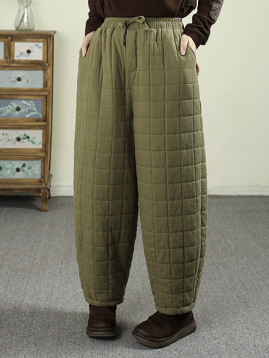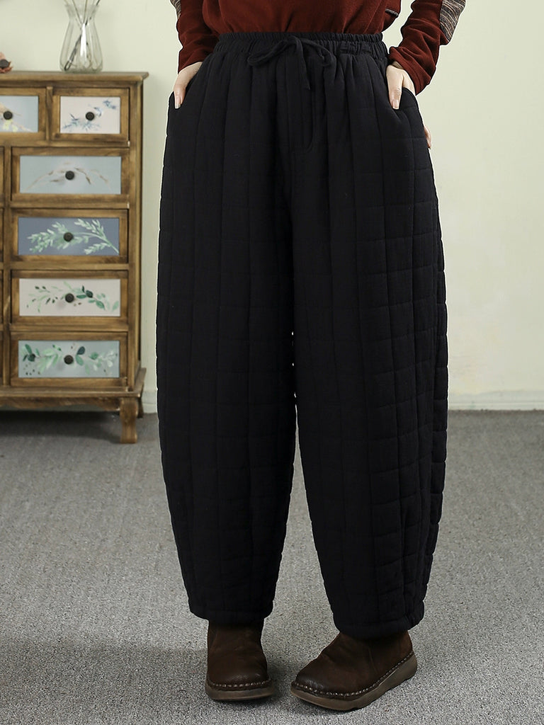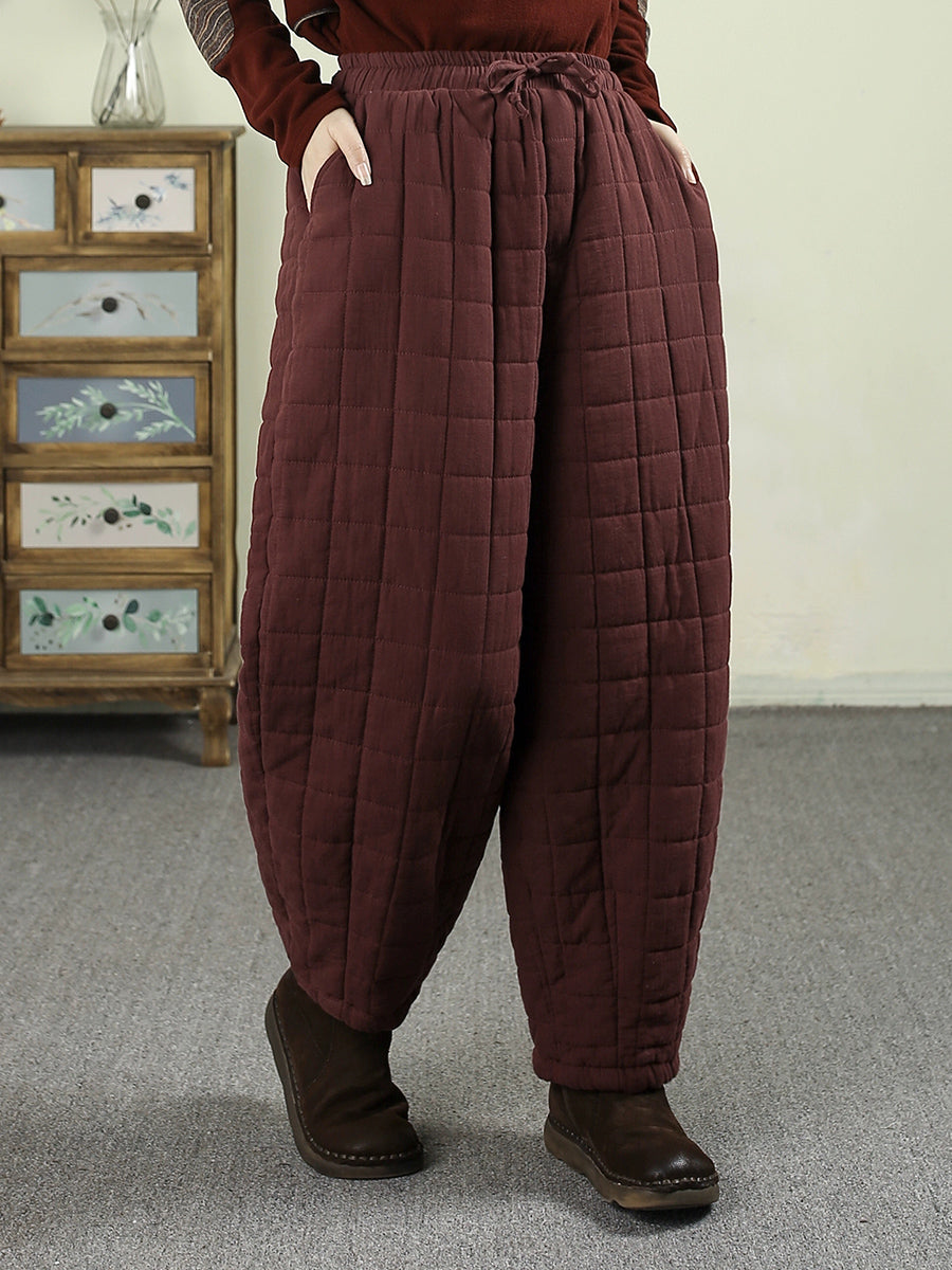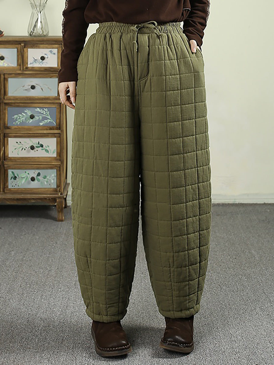 Pantalones bombachos acolchados de invierno retro para mujer, de color liso.