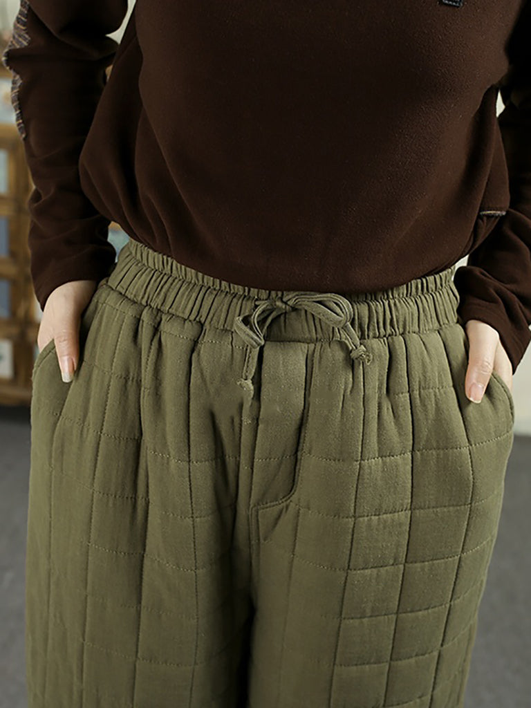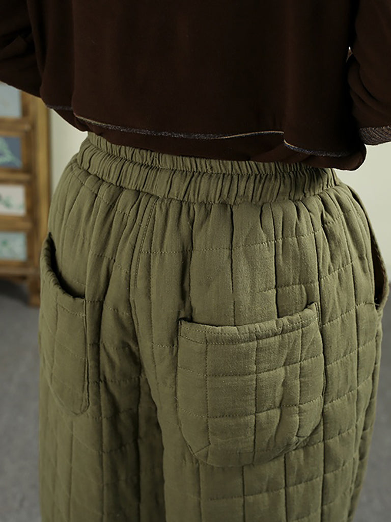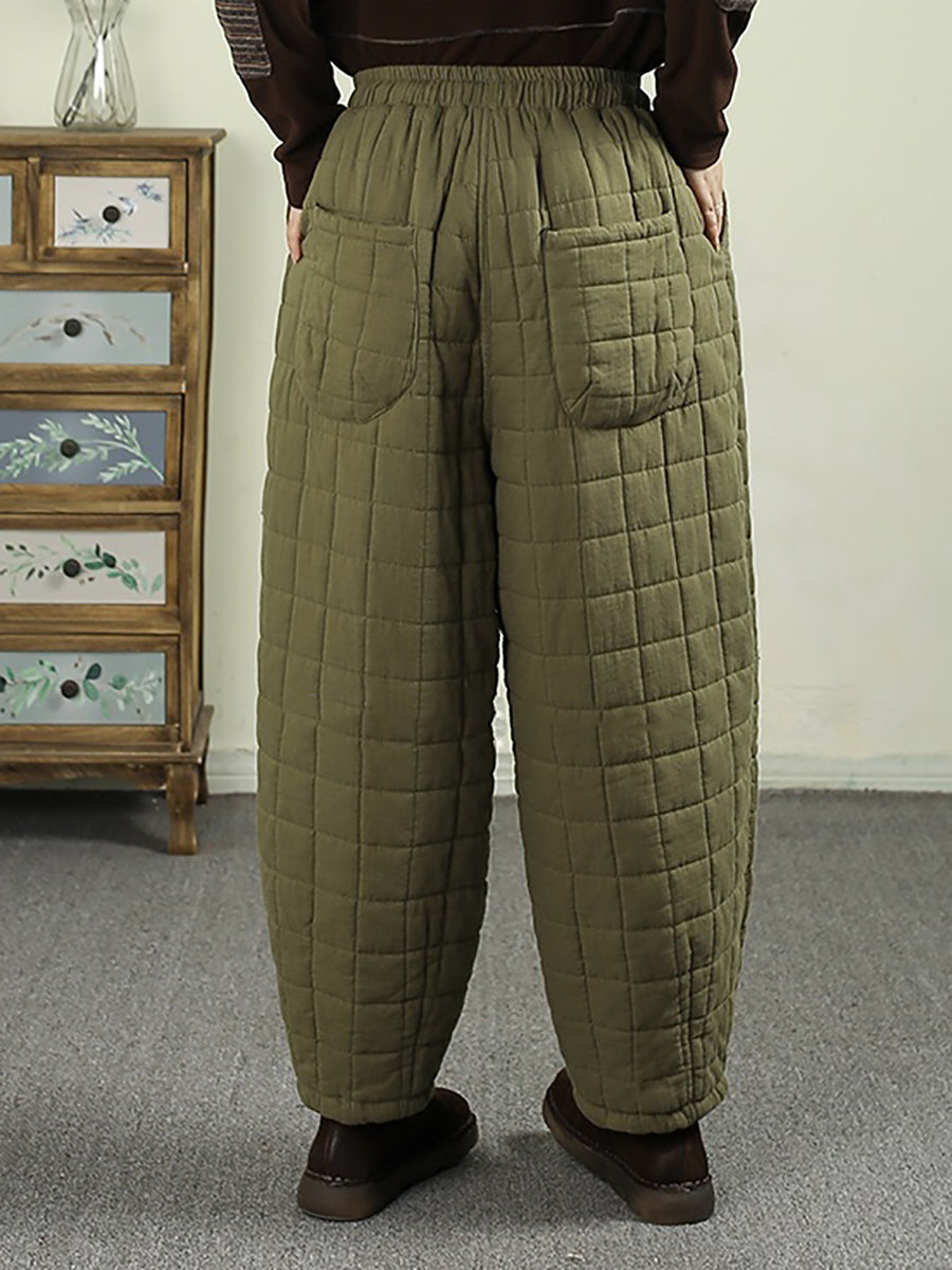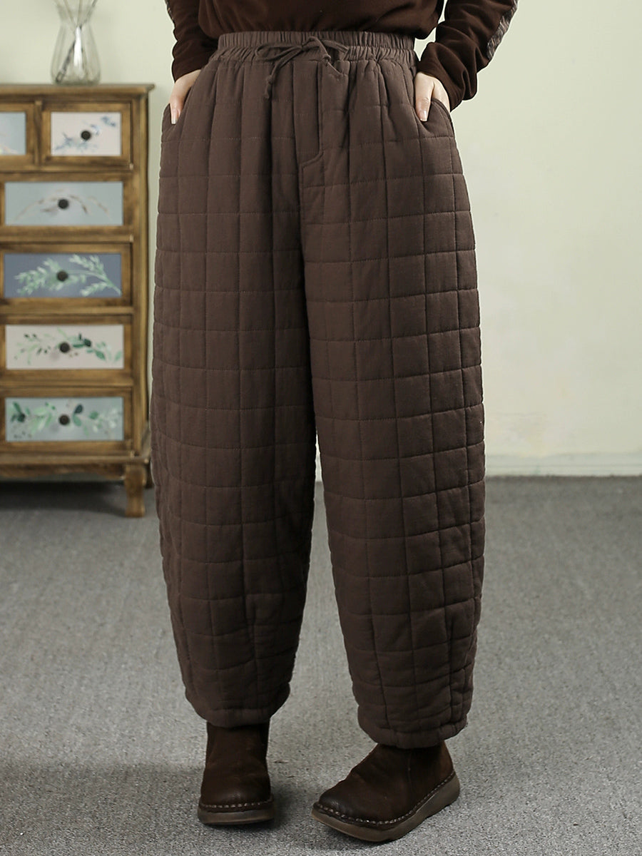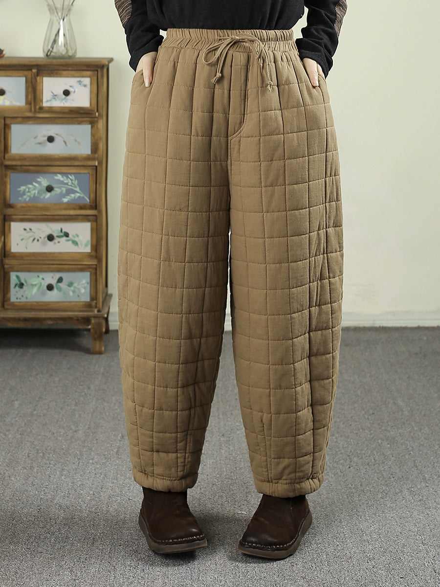 Pantalones bombachos acolchados de invierno retro para mujer, de color liso.