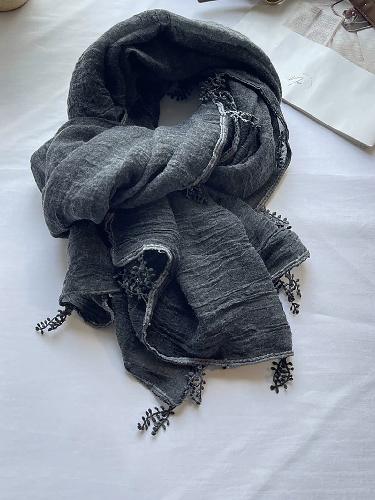 Bufanda tipo chal con encaje de colores puros y estilo artístico para mujer