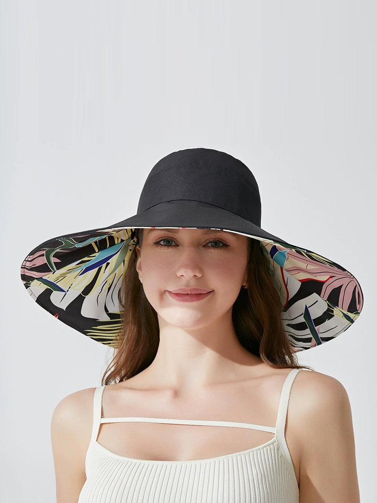 Sombrero de verano para mujer con diseño floral artístico y doble cara, resistente al sol