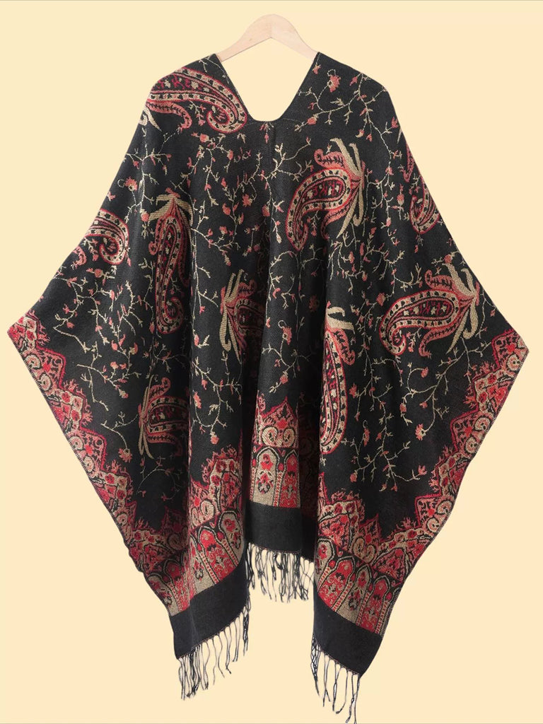 Chal vintage con borlas y flores otoñales para mujer