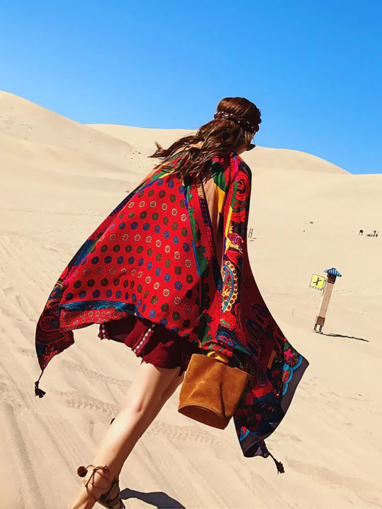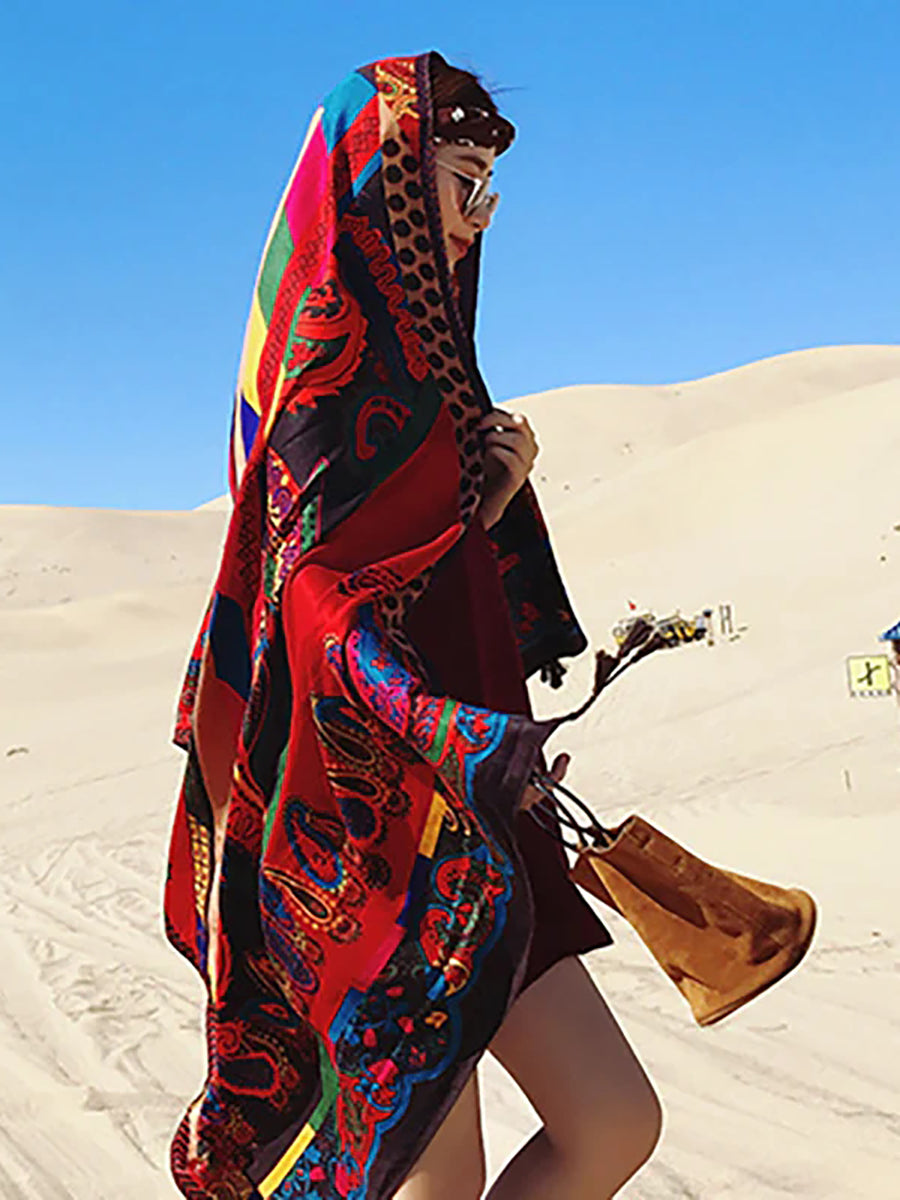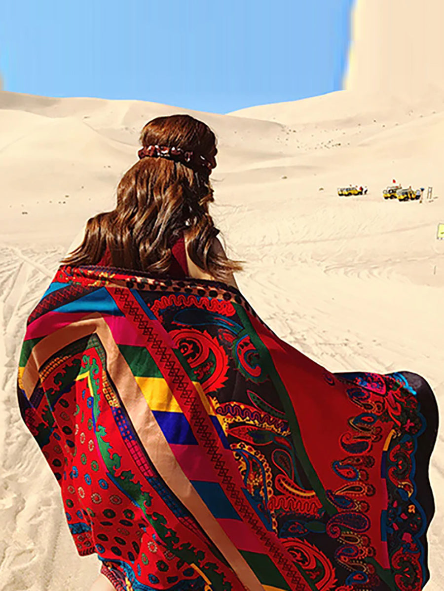 Bufanda protectora solar con borlas estampadas Seaside Vacation de Buykud