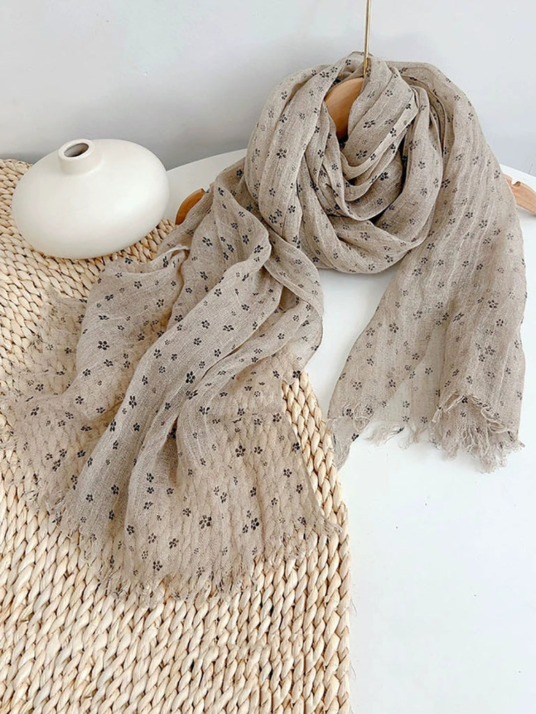Bufanda tipo chal de lino con borlas finas y diseño floral artístico para mujer