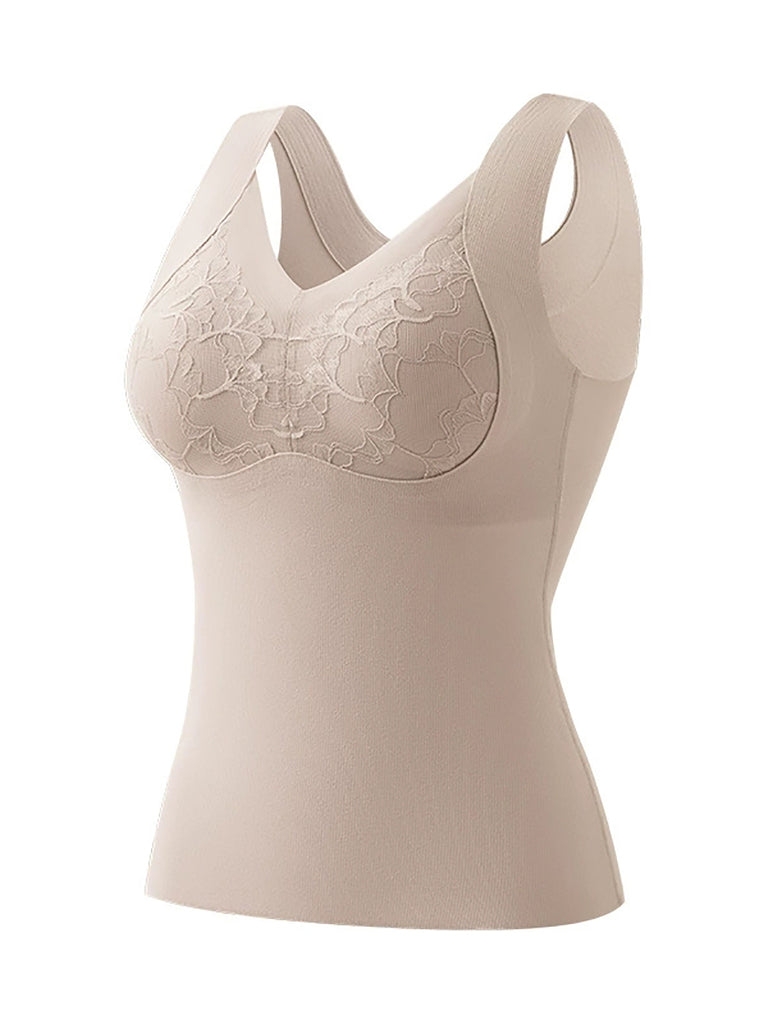 Chaleco de otoño con escote en V y encaje artístico para mujer