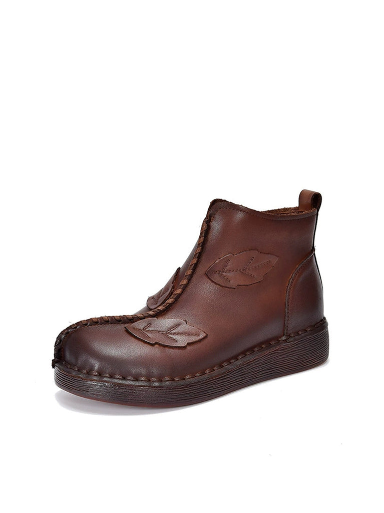 Botines de cuero retro empalmados de invierno para mujer
