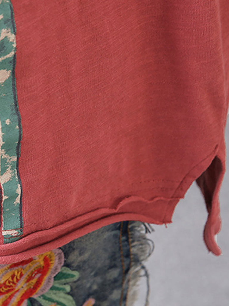 • Algodón suelto Top rojo con estampado de girasoles, cuello redondo y manga tres cuartos, disfrutarás usándolo durante la primavera, el verano y el otoño.