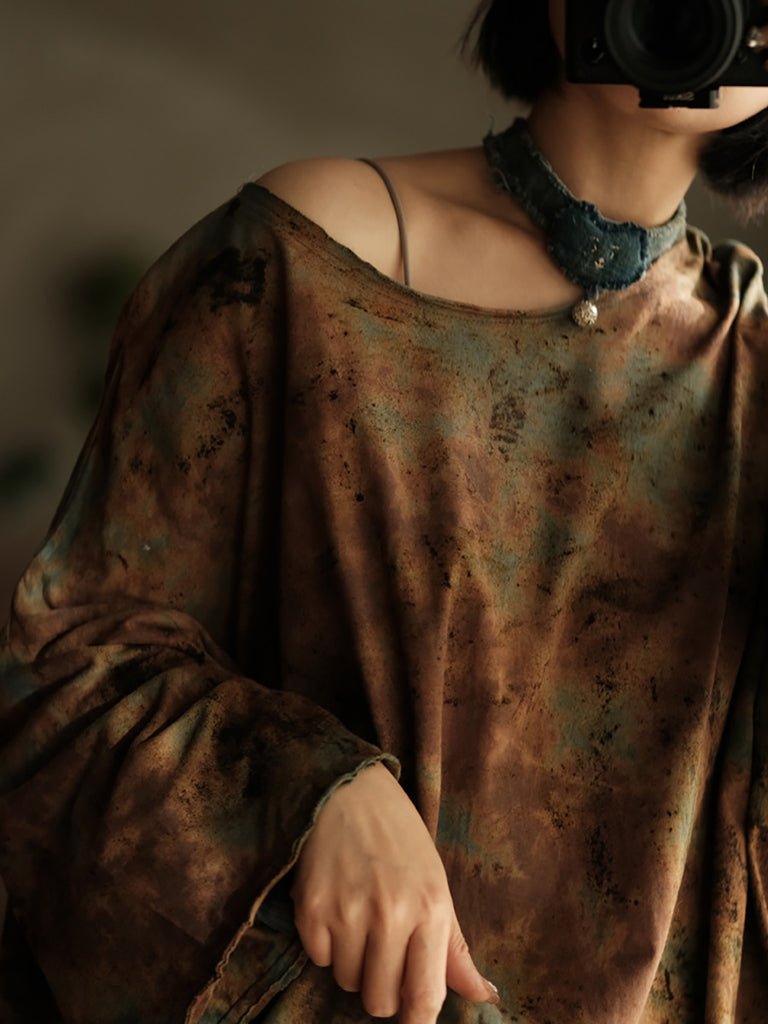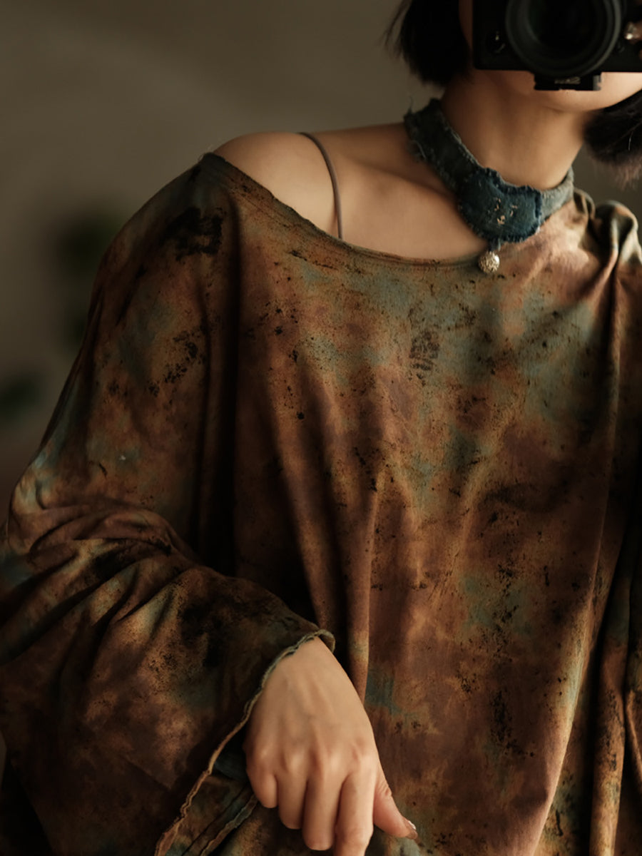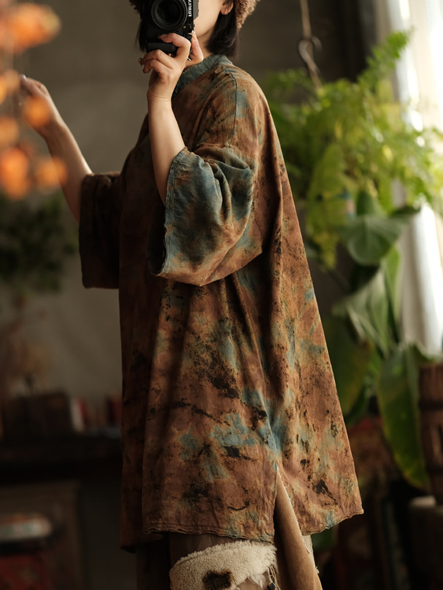 Camisa de algodón con cuello redondo y flores retro de verano para mujer