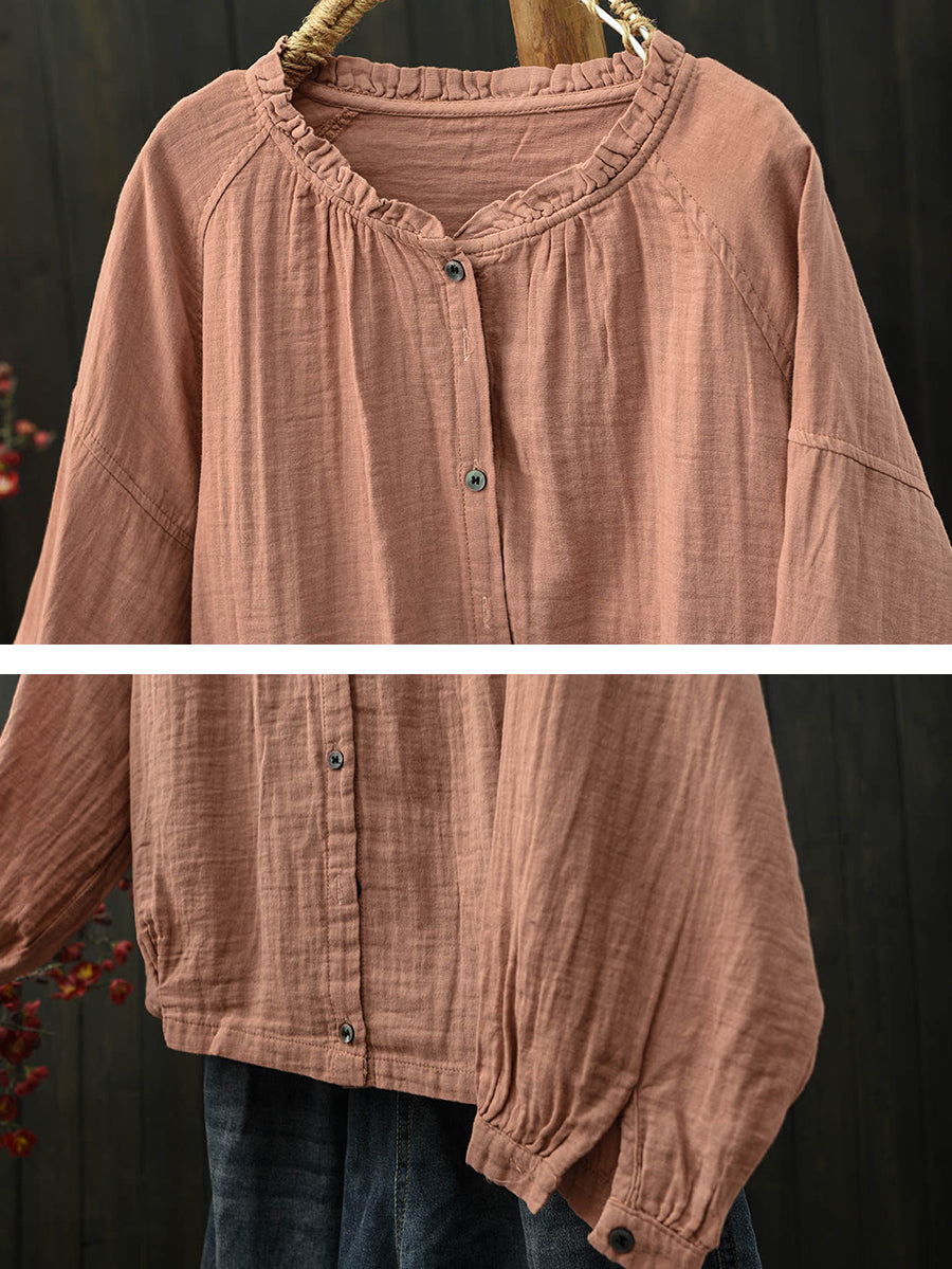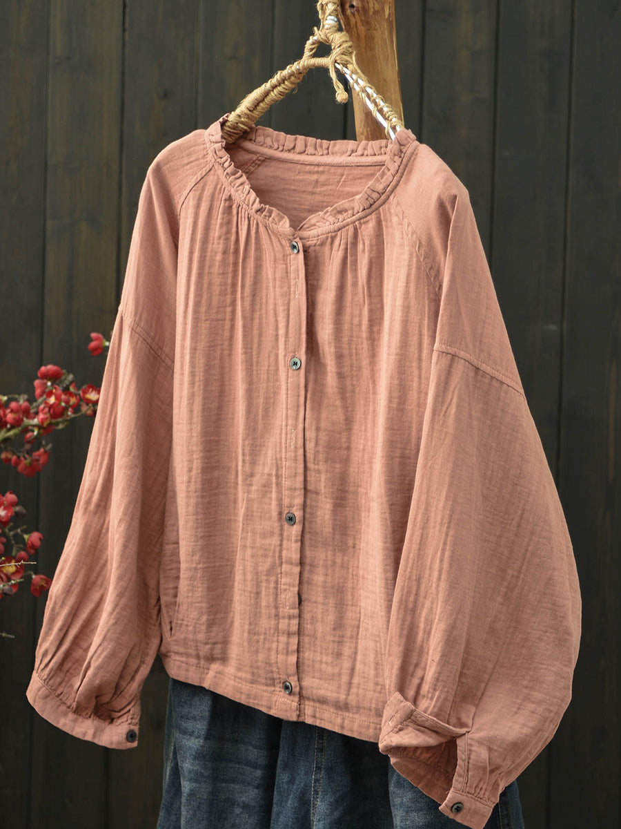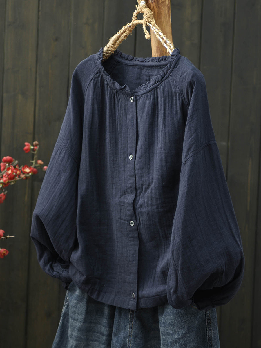 Camisa de algodón con cuello alto y color puro Artsy de primavera para mujer