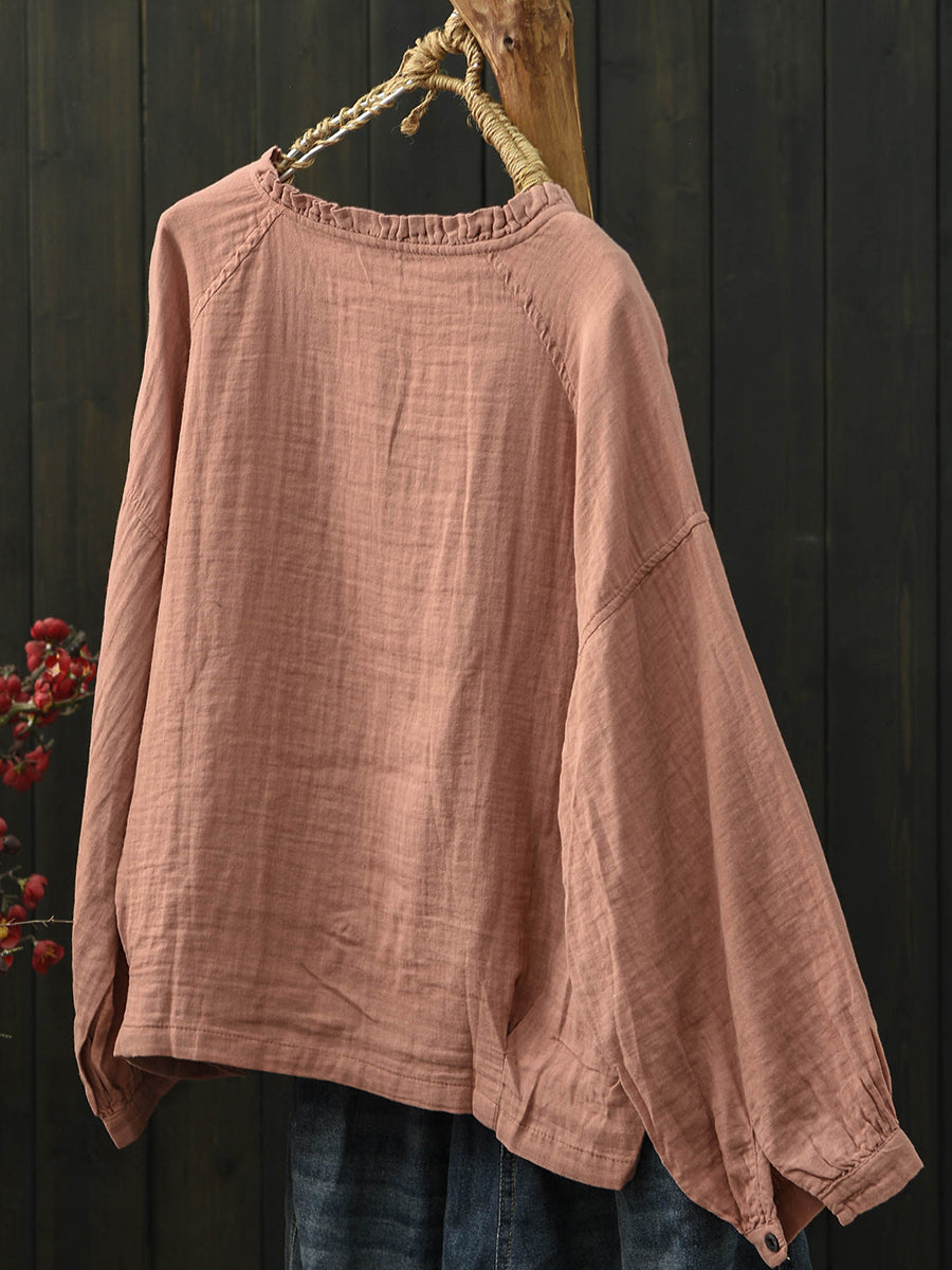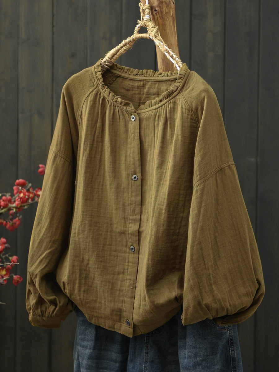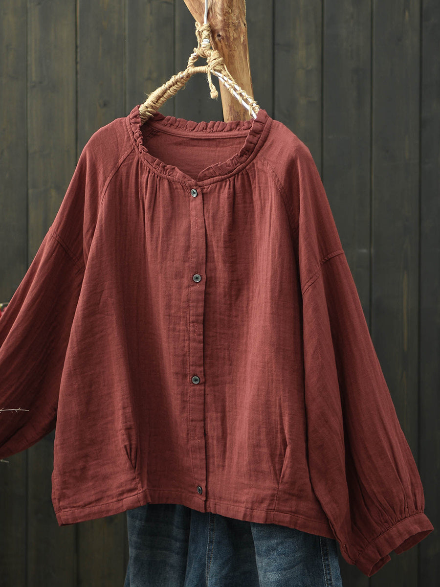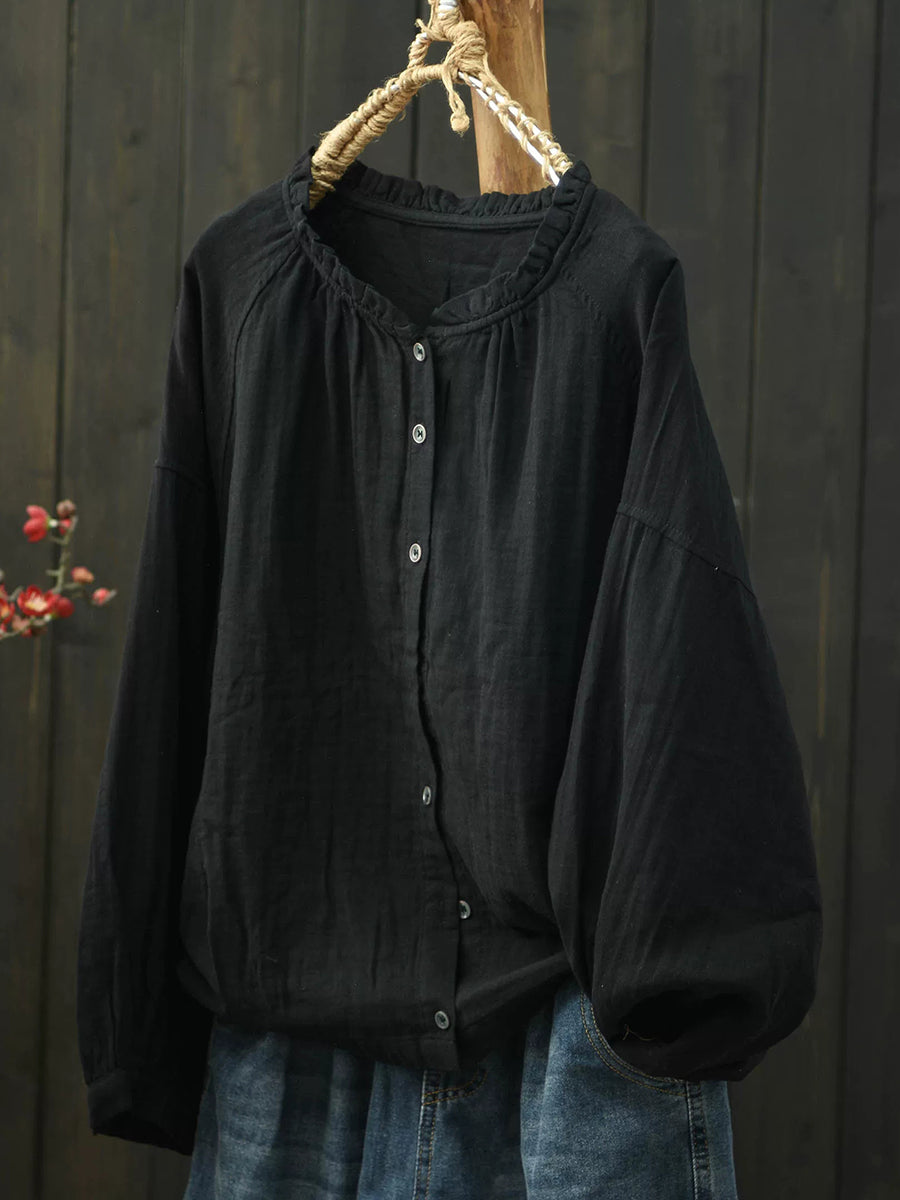 Camisa de algodón con cuello alto y color puro Artsy de primavera para mujer