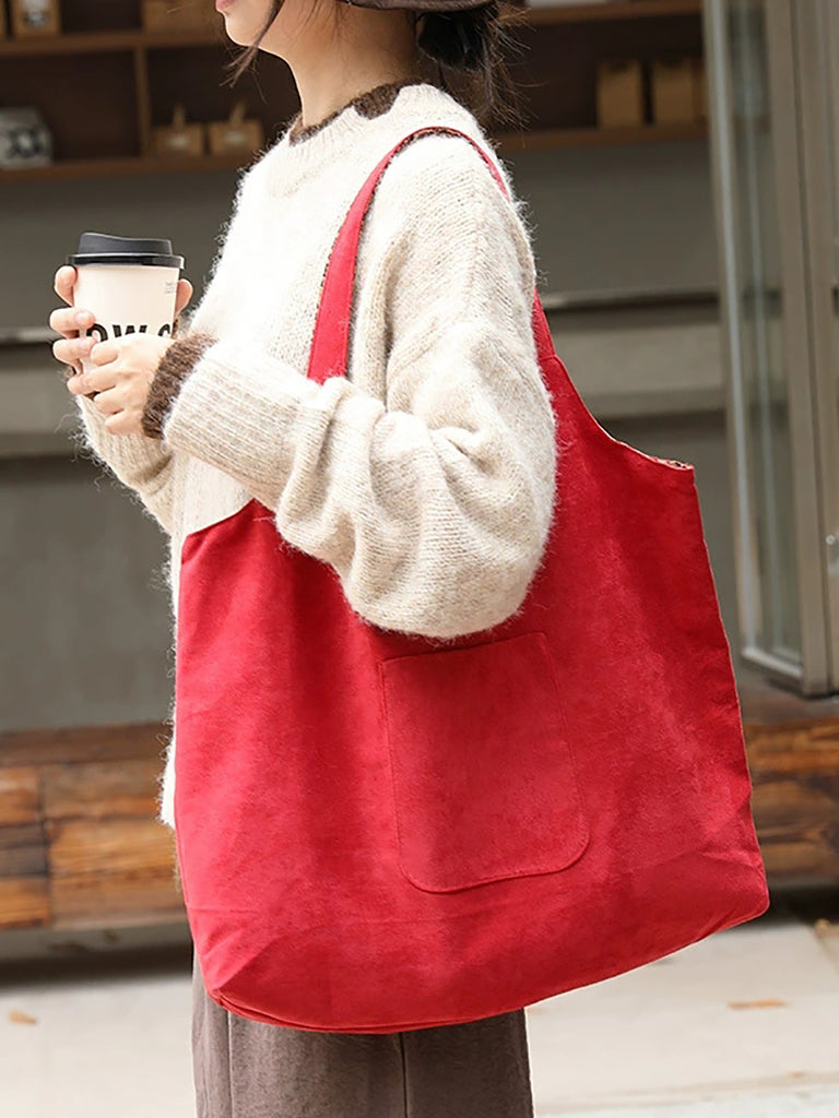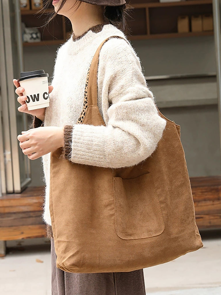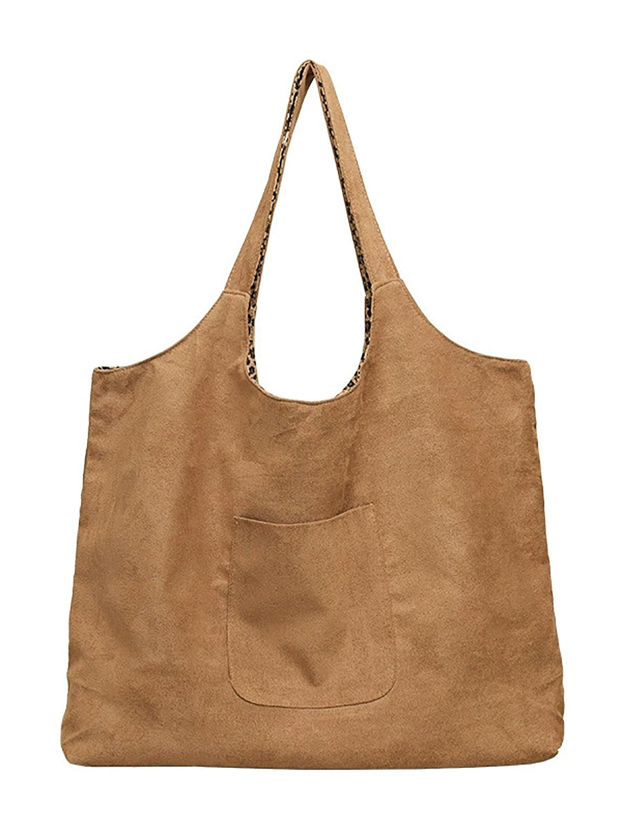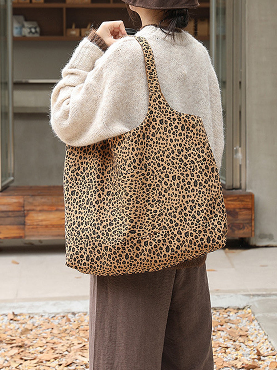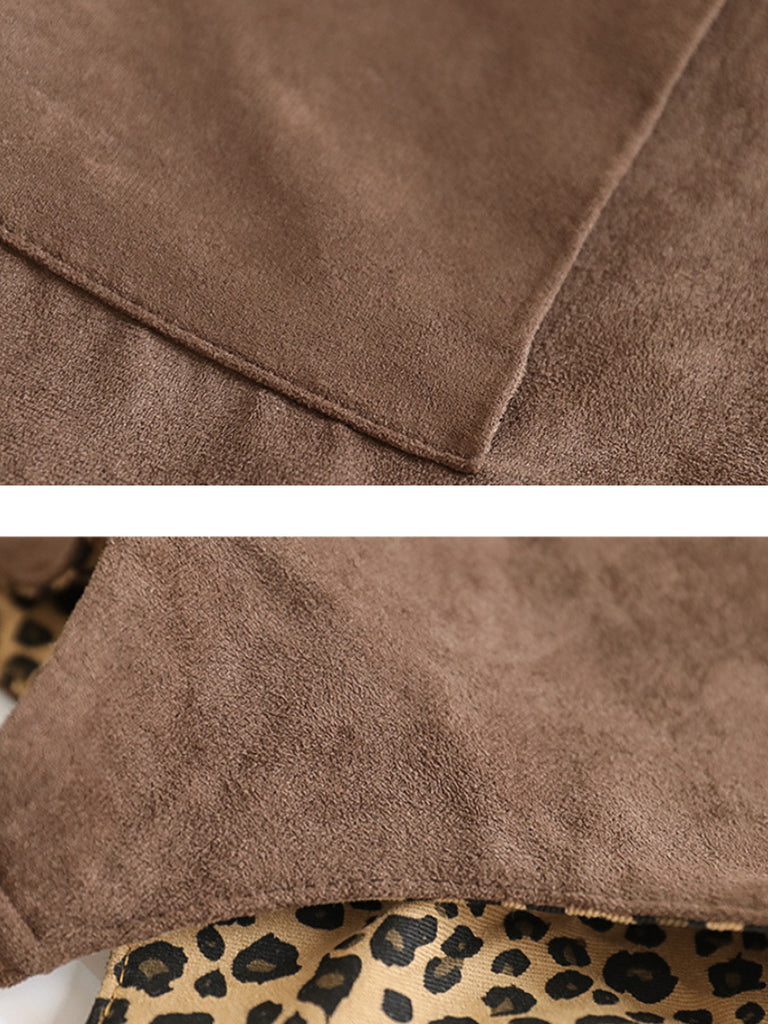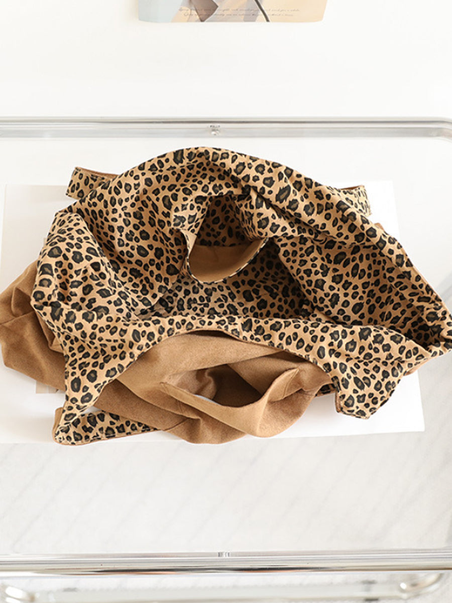 Bolso de hombro retro de ante con estampado de leopardo de dos caras para mujer