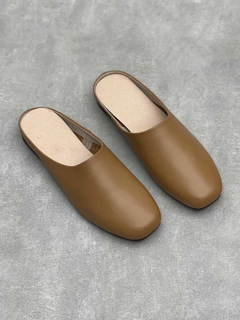 Zapatillas de tacón bajo informales de piel auténtica de verano para mujer