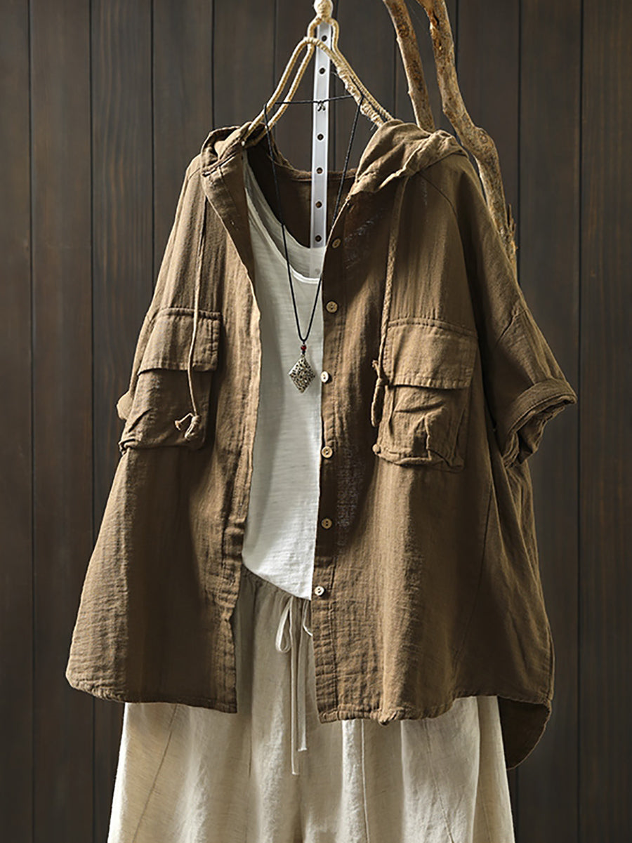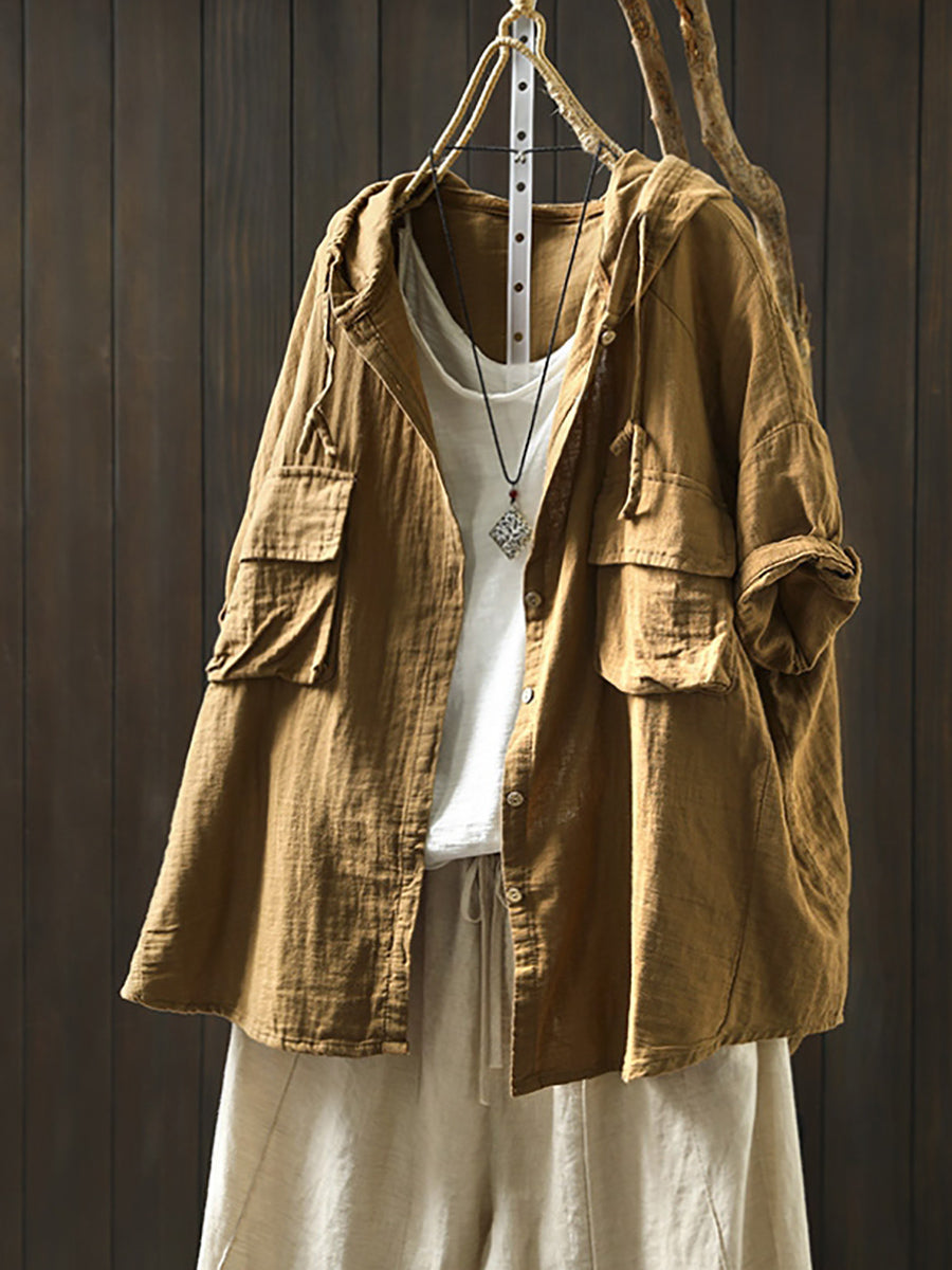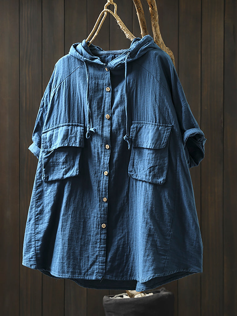 Camisa con capucha 100 % algodón de color puro para mujer, talla grande, primavera