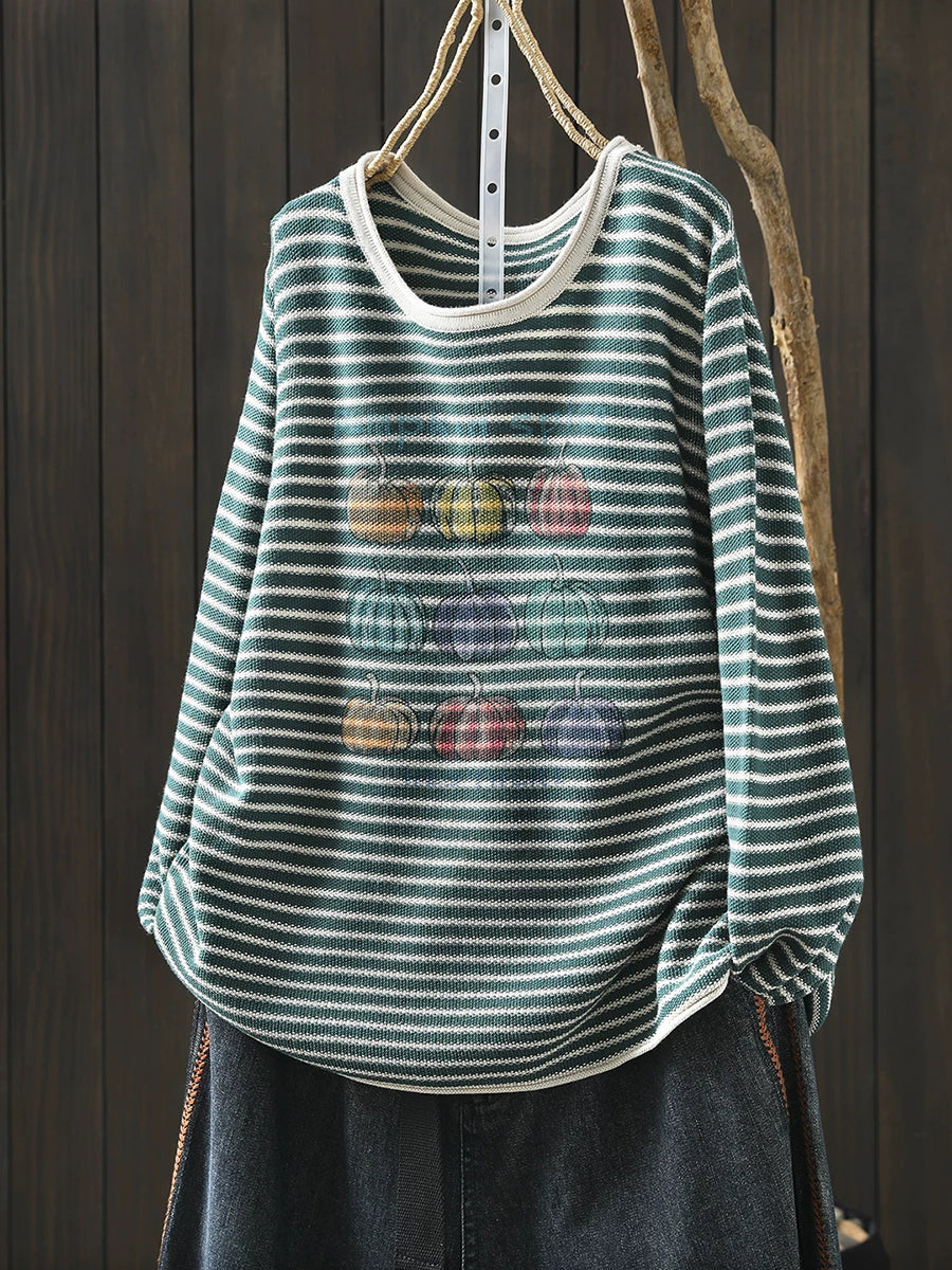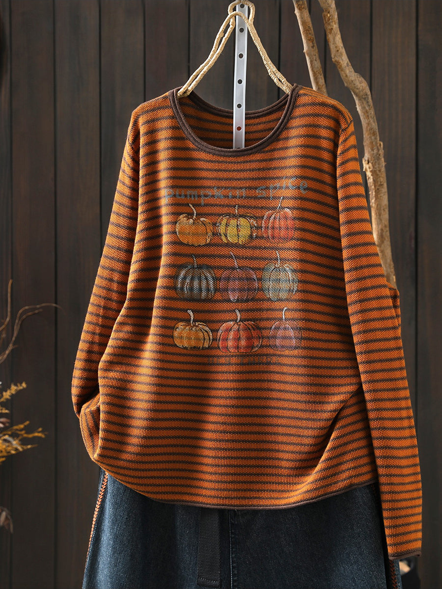 Blusa informal de primavera con rayas y cuello redondo de calabaza para mujer
