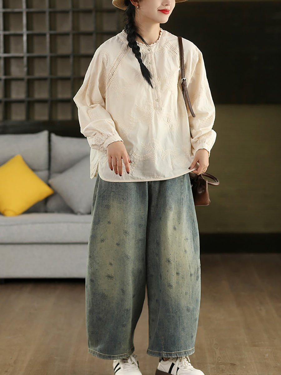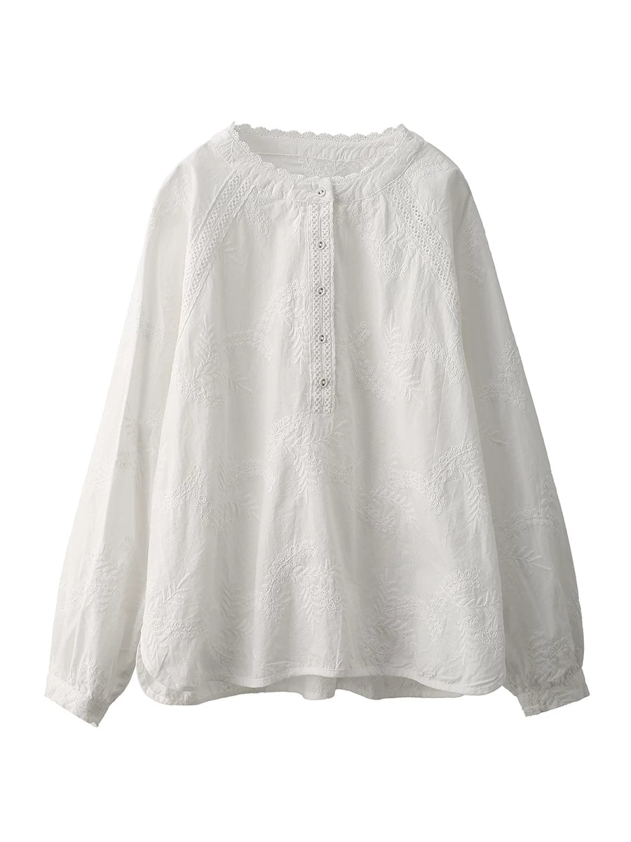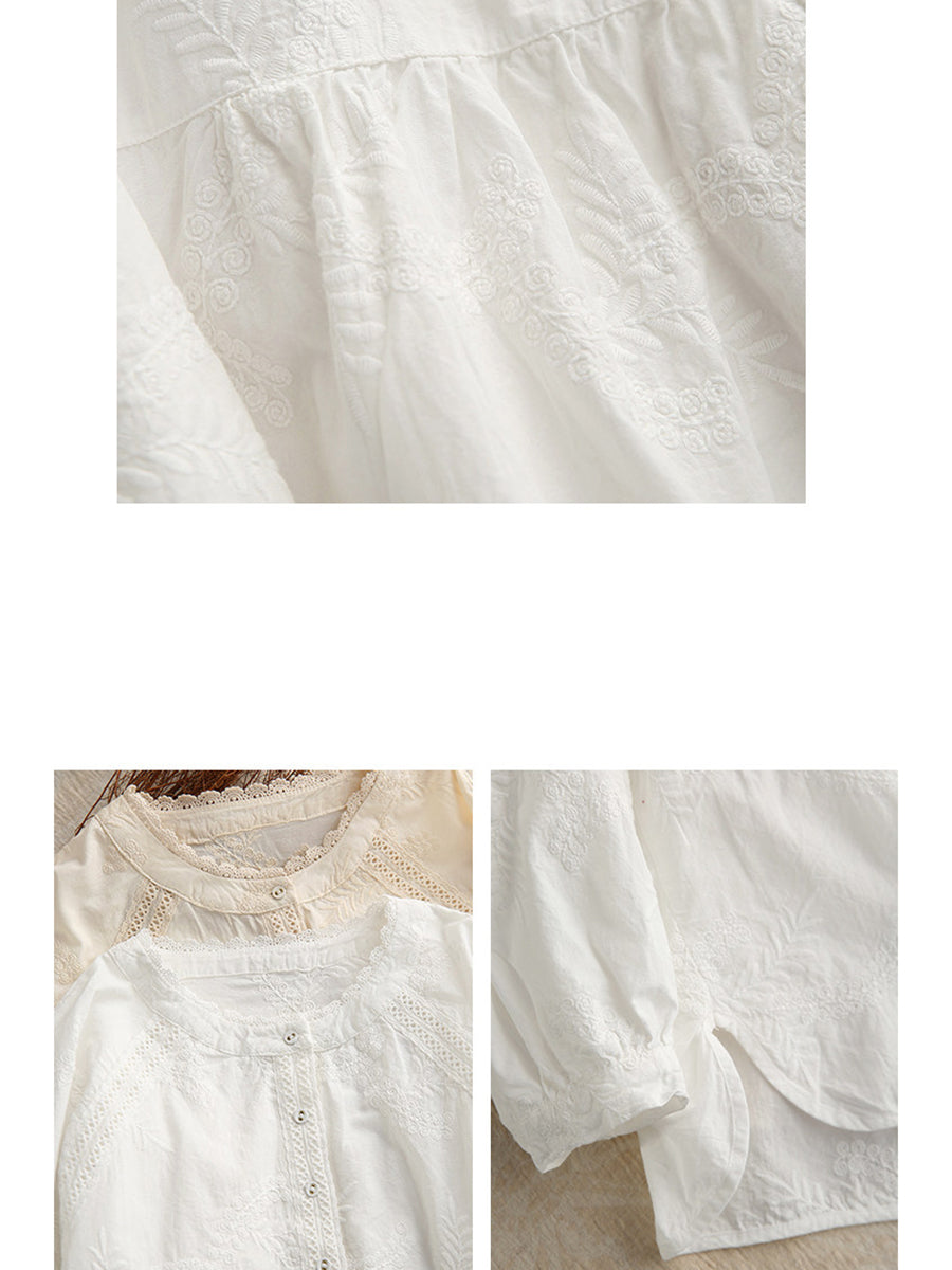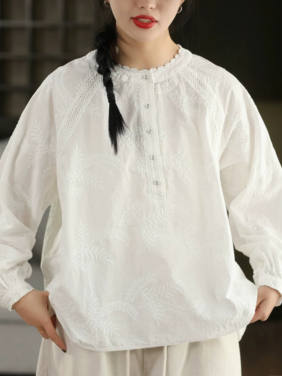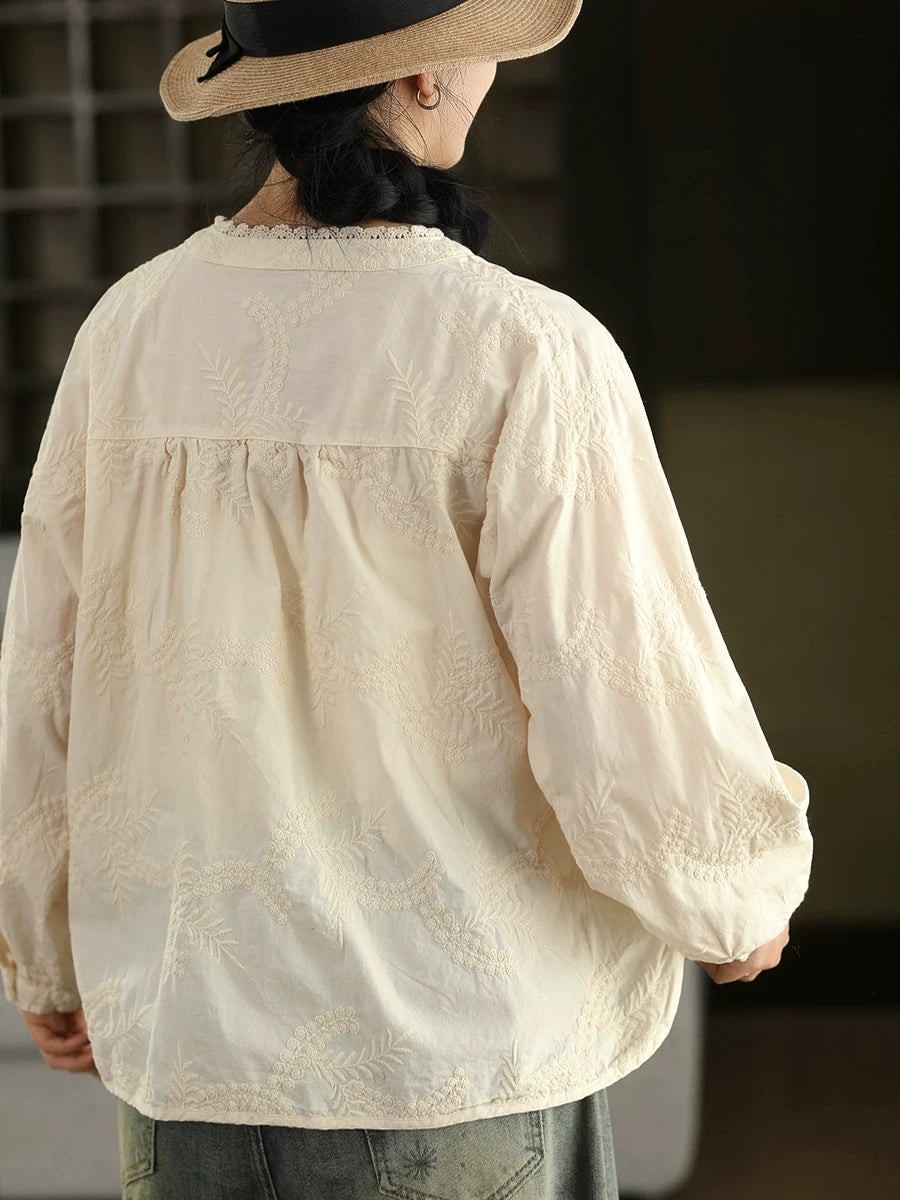 Camisa de mujer 100 % algodón con bordado artístico de primavera