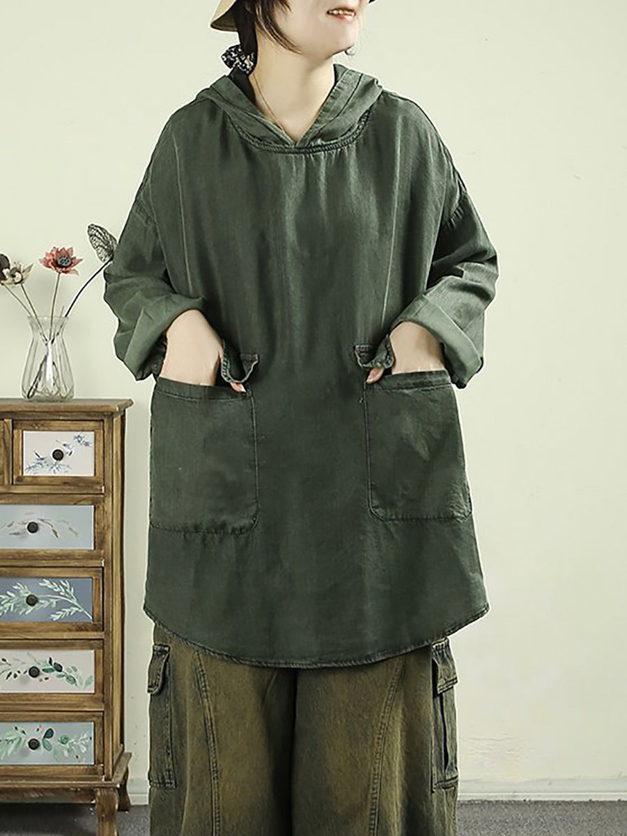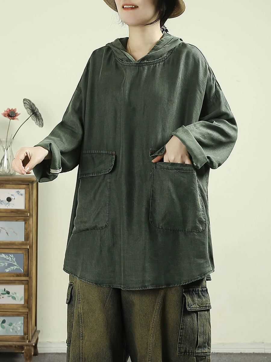 Sudadera con capucha de algodón 90 % de color puro y estilo artístico para mujer, primavera