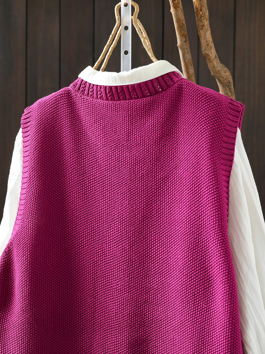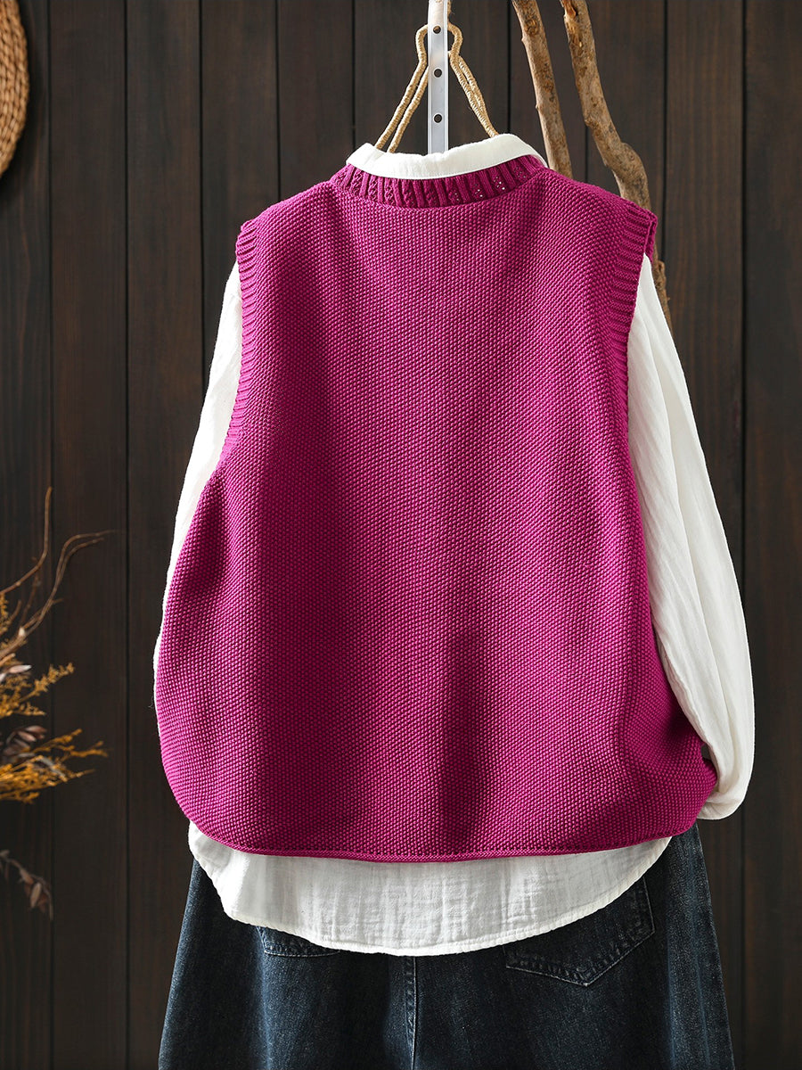 Chaleco de punto con cuello redondo y colores puros Artsy de primavera para mujer