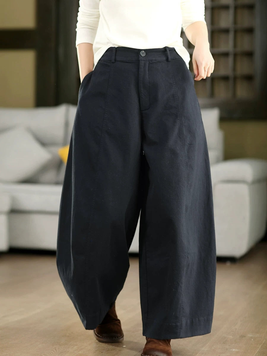 Pantalones anchos de algodón estilo retro de primavera para mujer