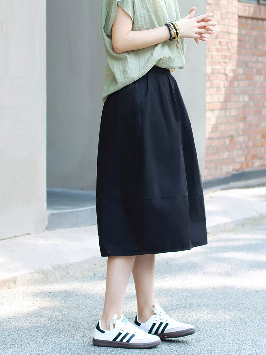 Falda de verano informal para mujer, color liso, 100% algodón.