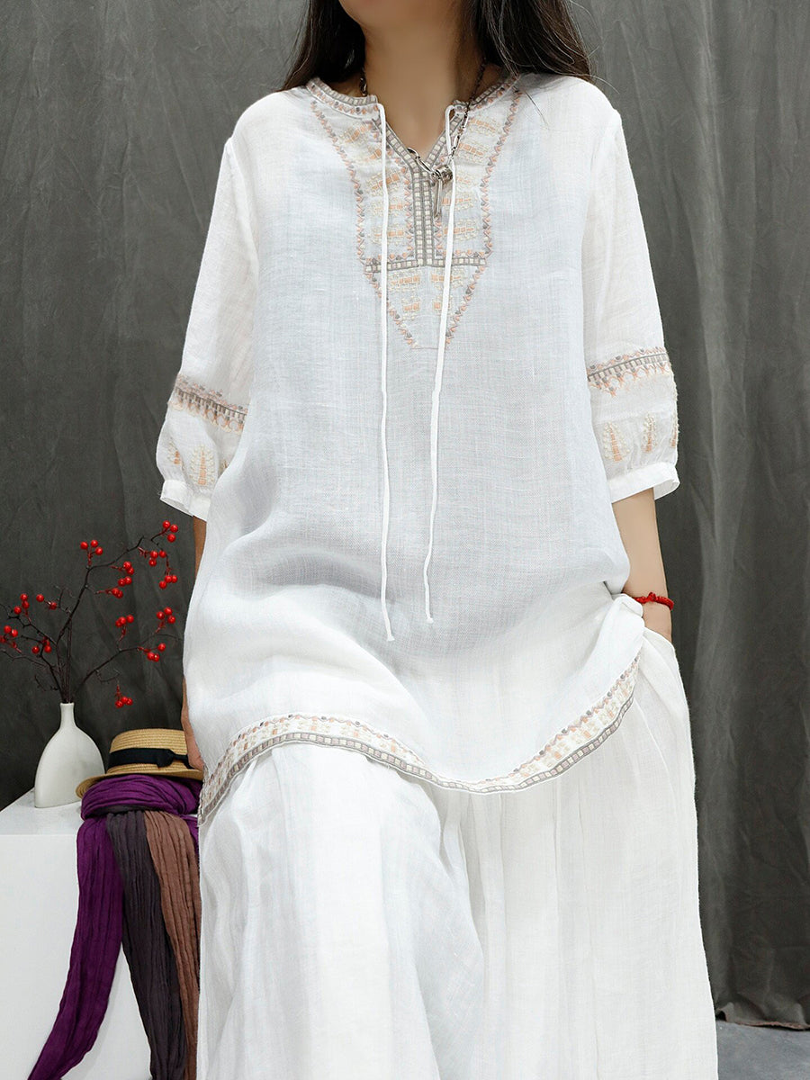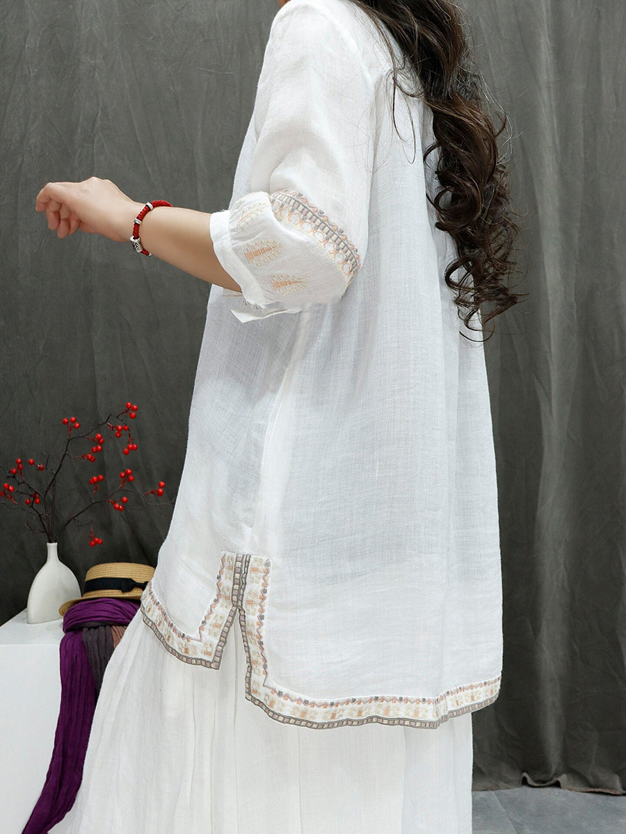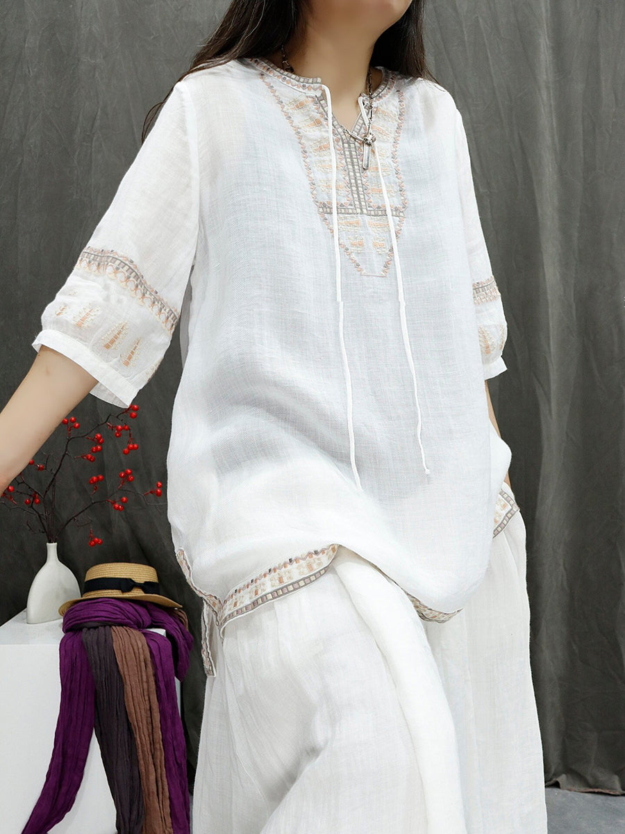 Blusa de verano retro para mujer con bordado 100% ramio.