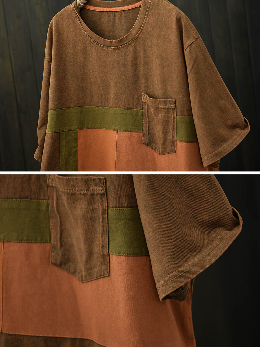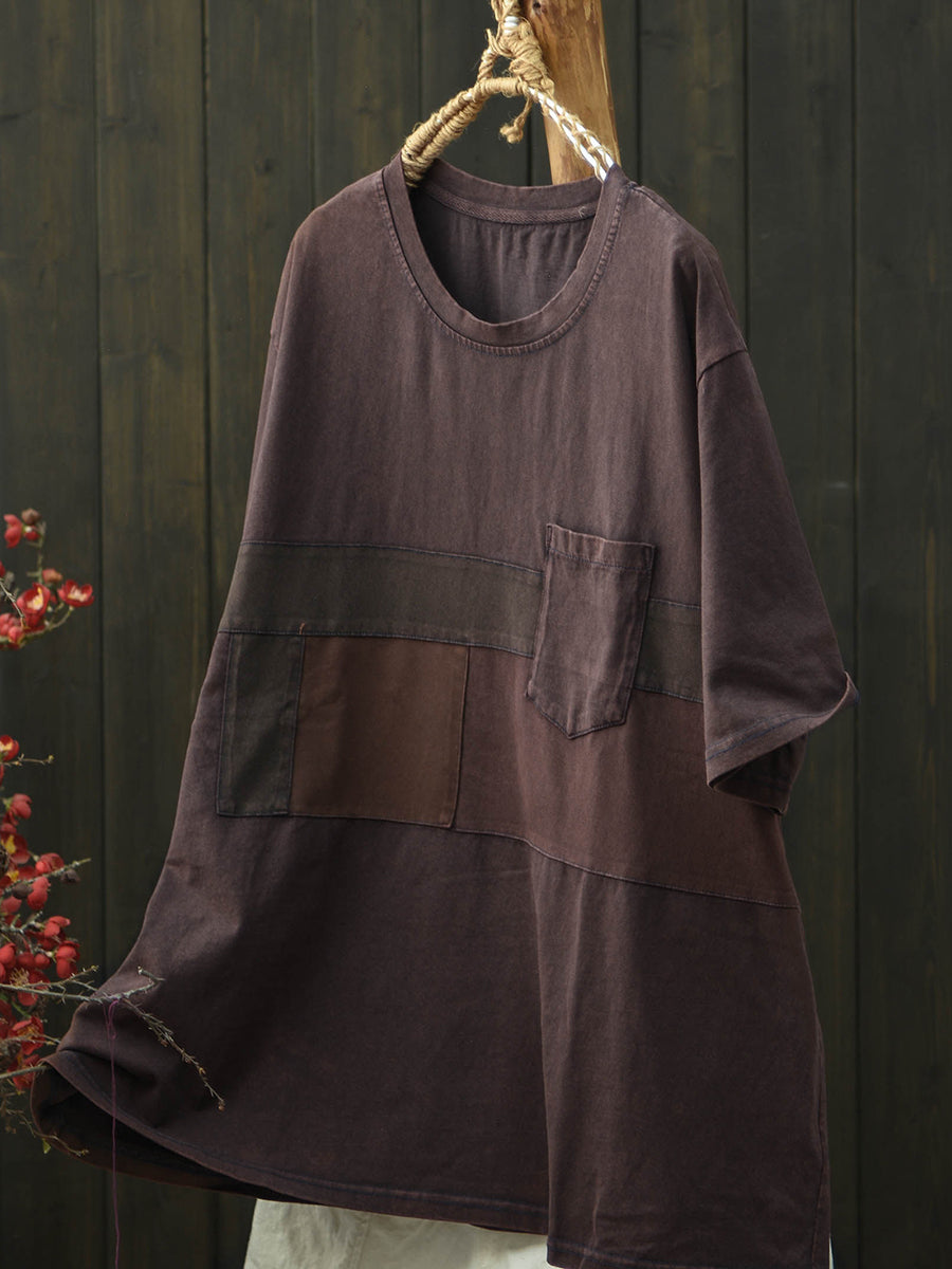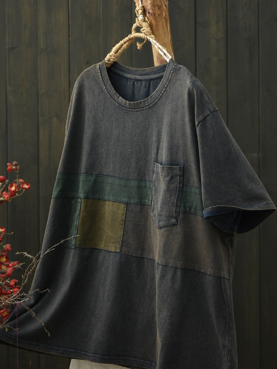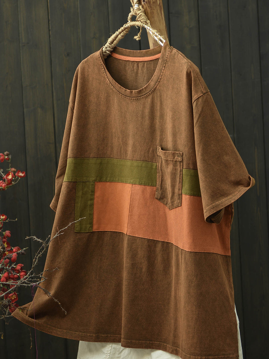 Camiseta de algodón estilo patchwork retro para mujer, ideal para el verano.