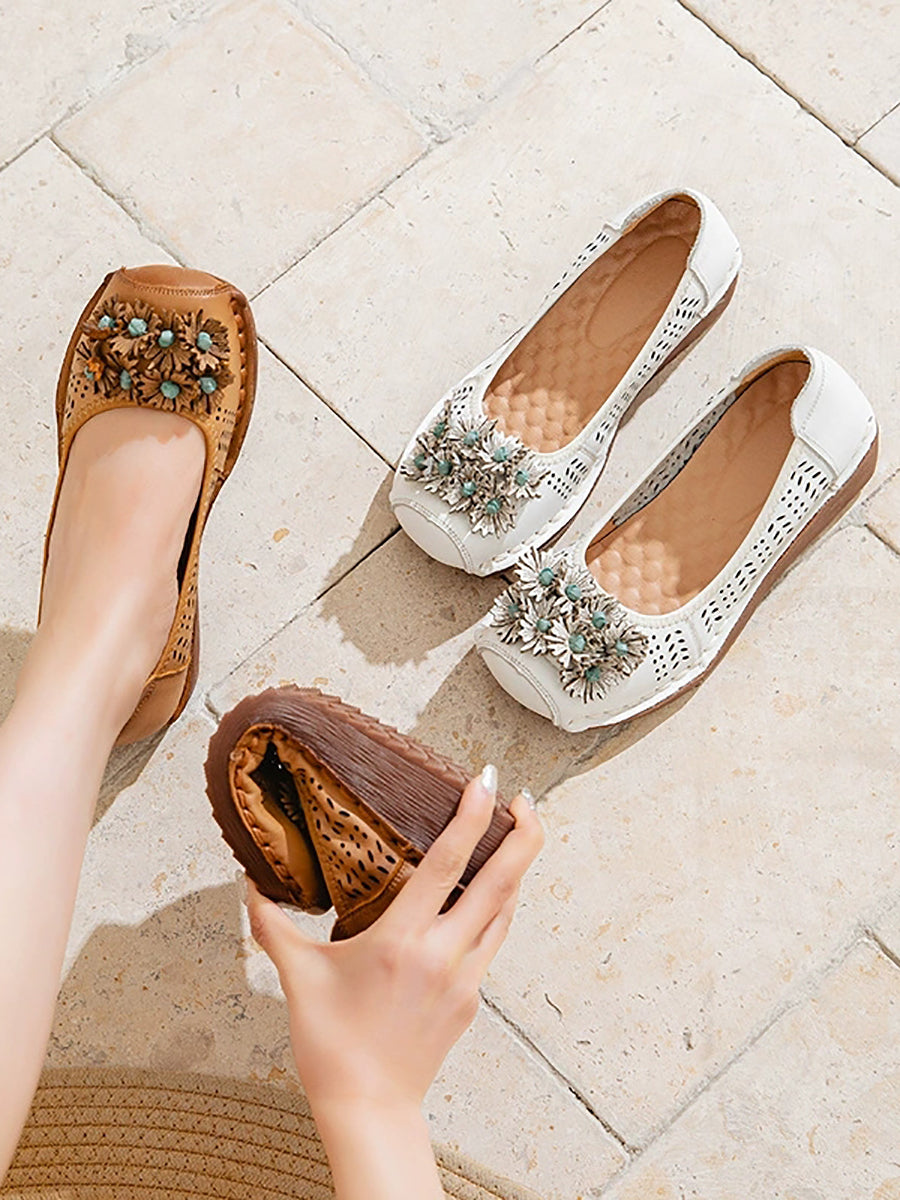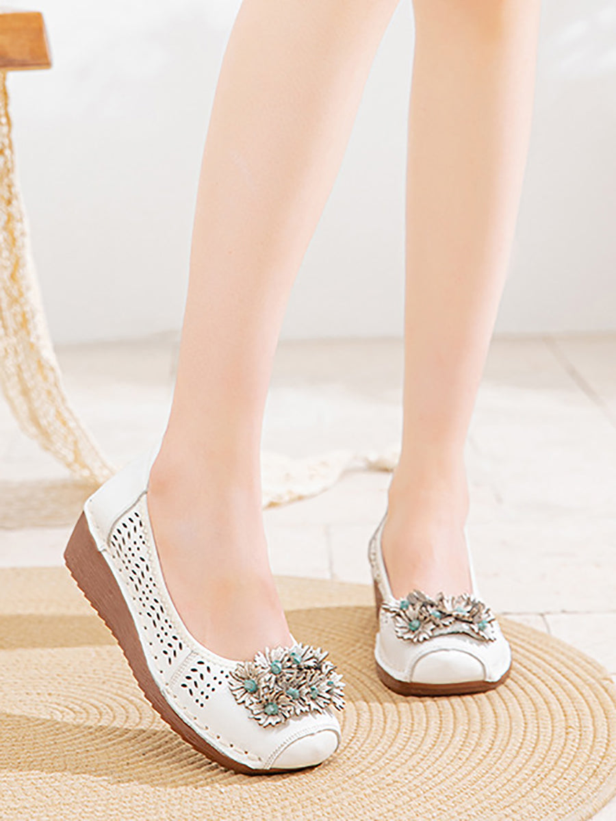 Zapatos de tacón medio de piel con estampado floral estilo vintage para mujer, ideales para el verano.