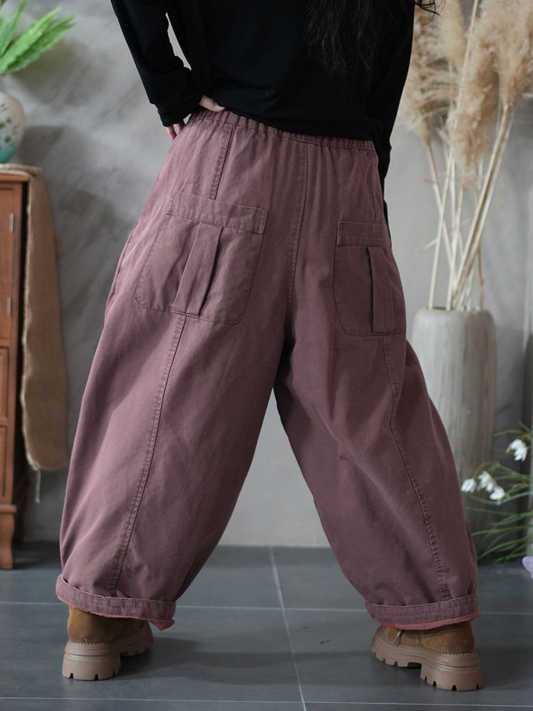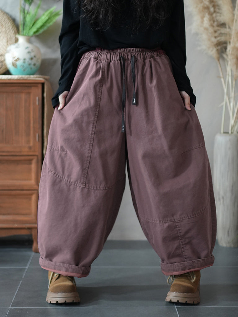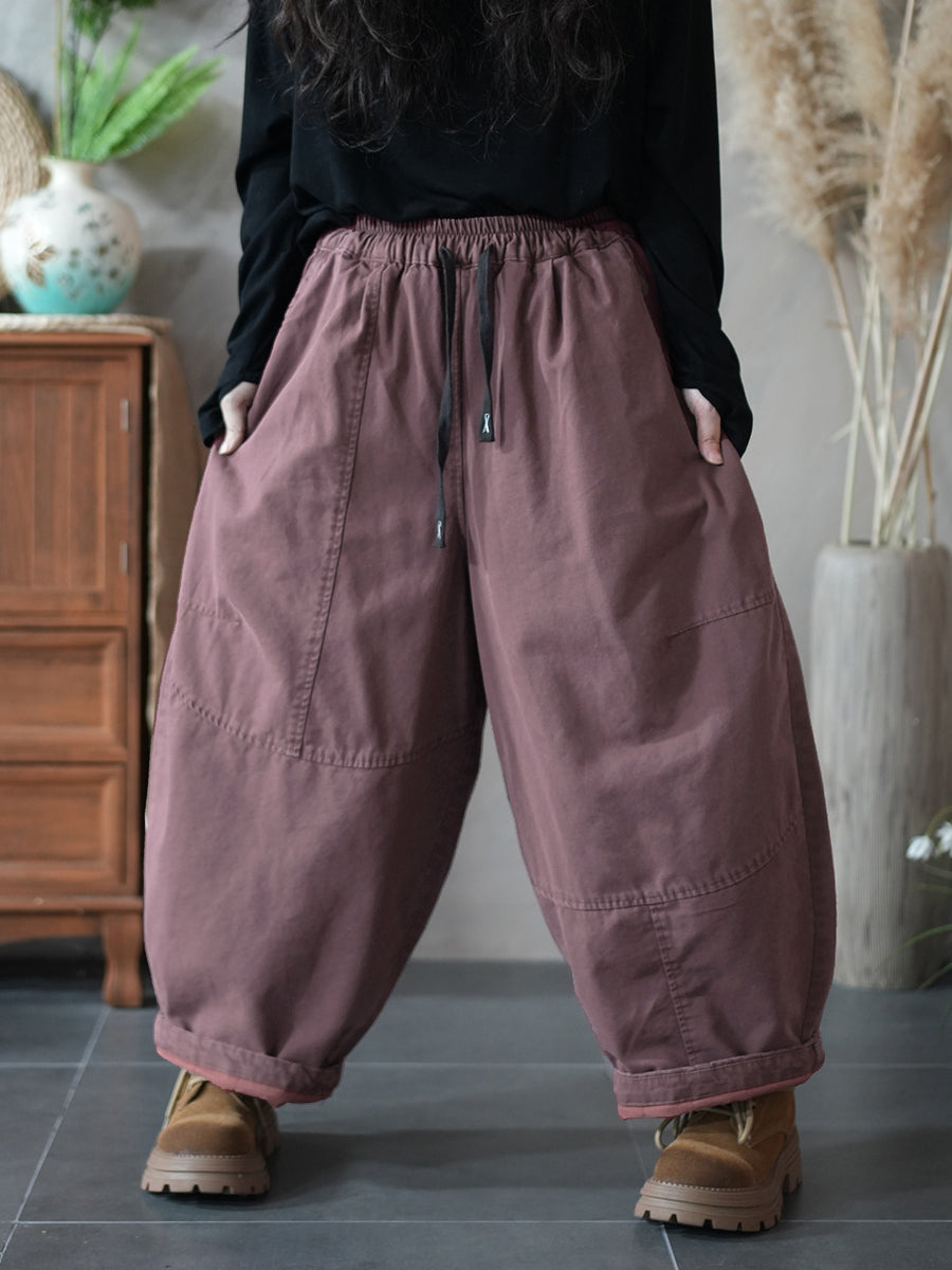Pantalones harén acolchados de color puro retro de invierno para mujer