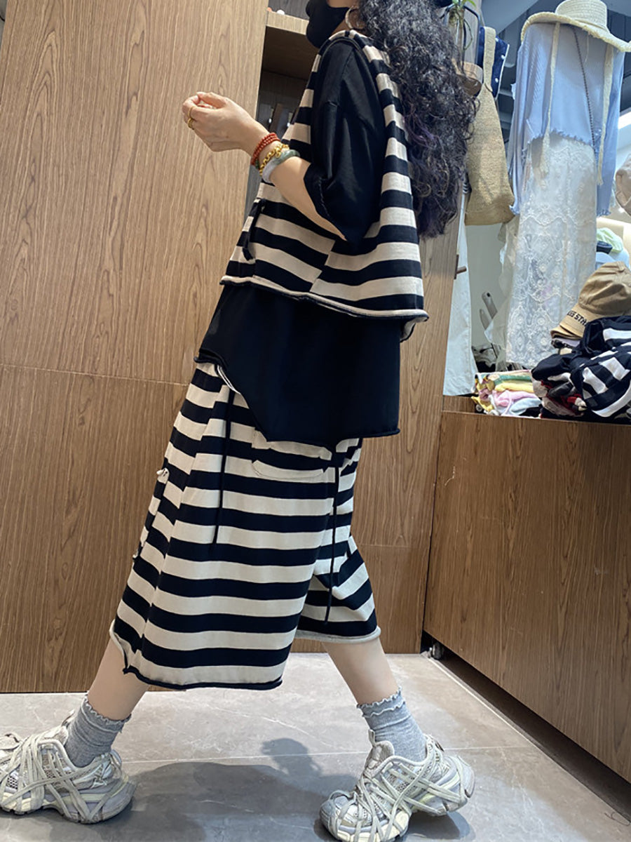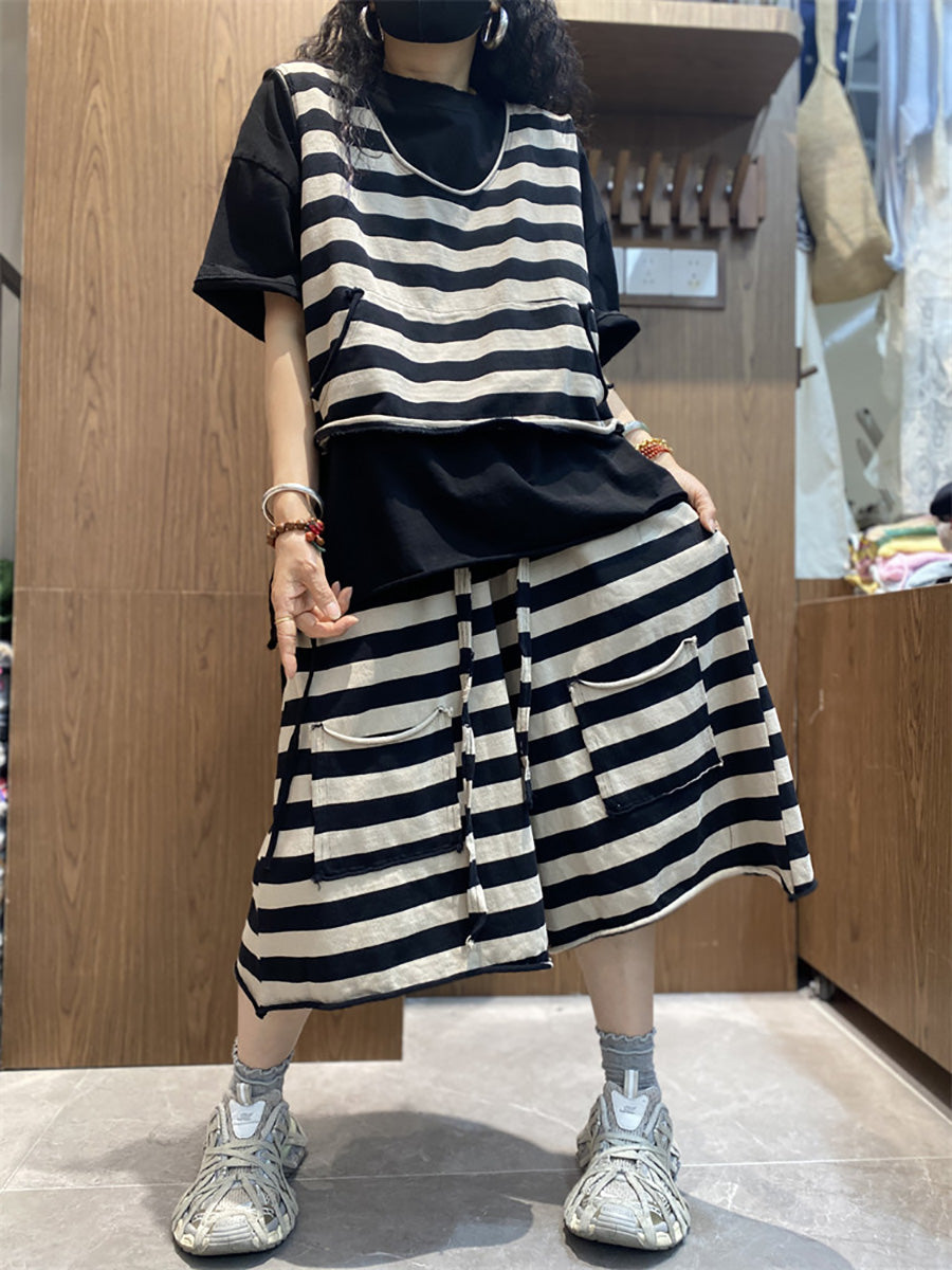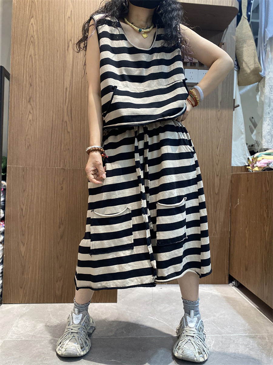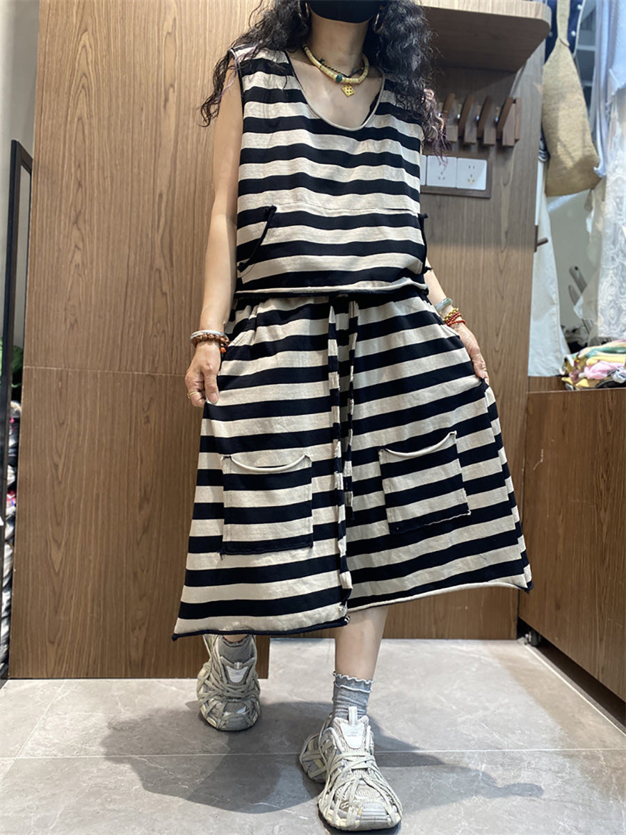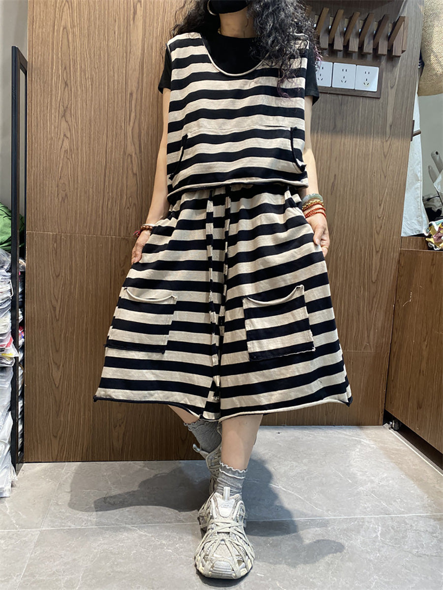 Trajes de verano casuales de mujer con cuello redondo y rayas