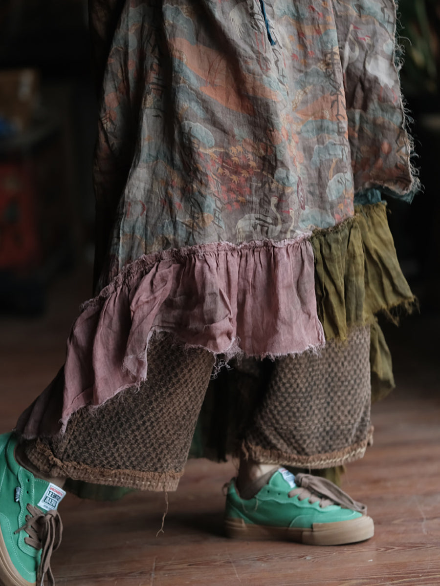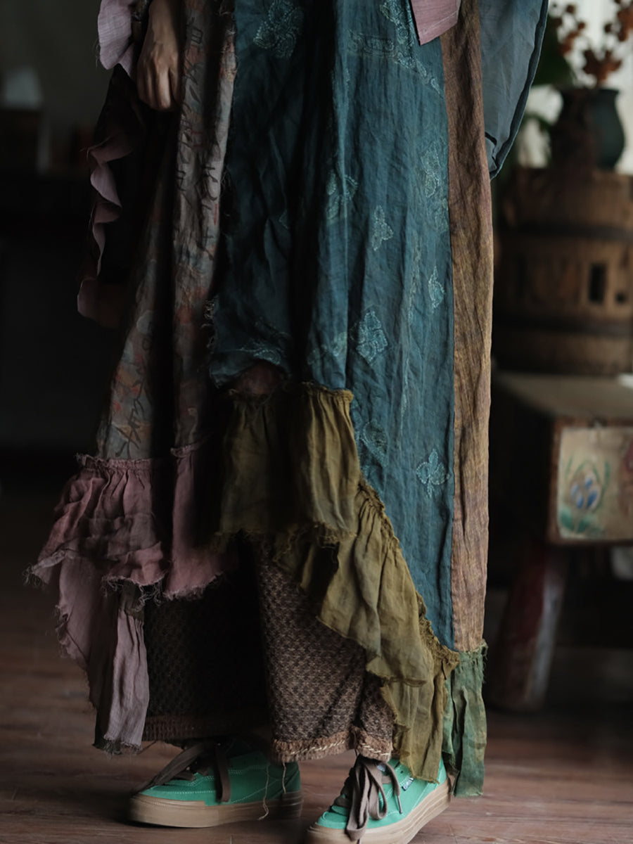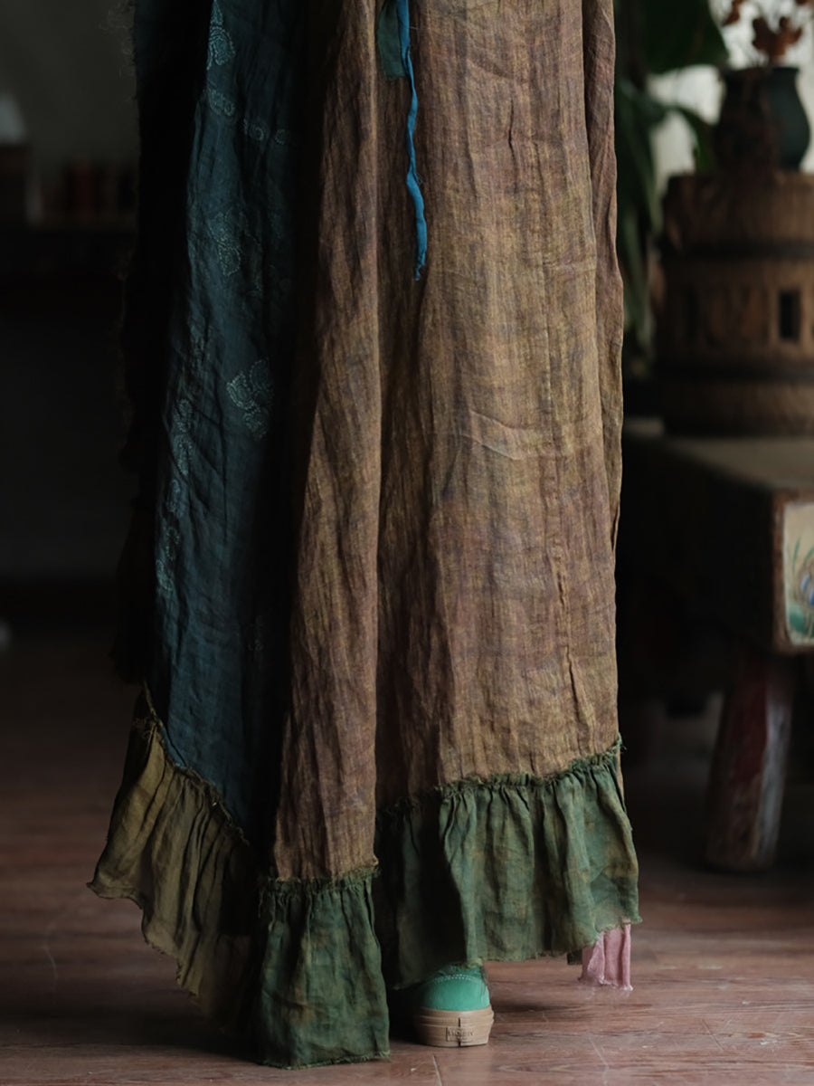 Vestido tipo chaleco de ramio con cuello redondo y parches de verano para mujer