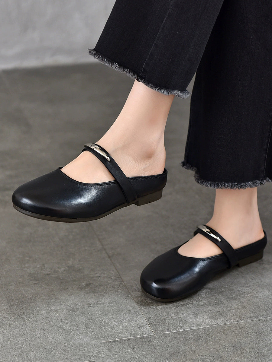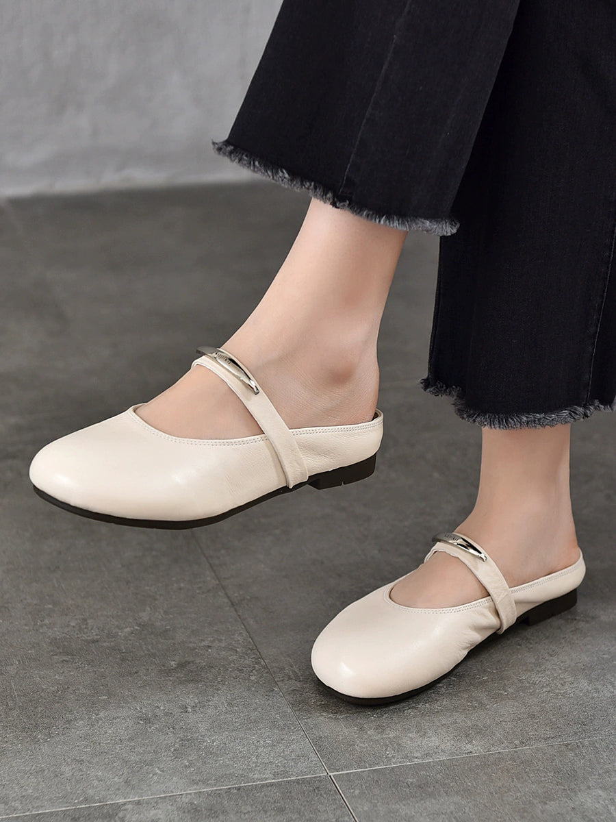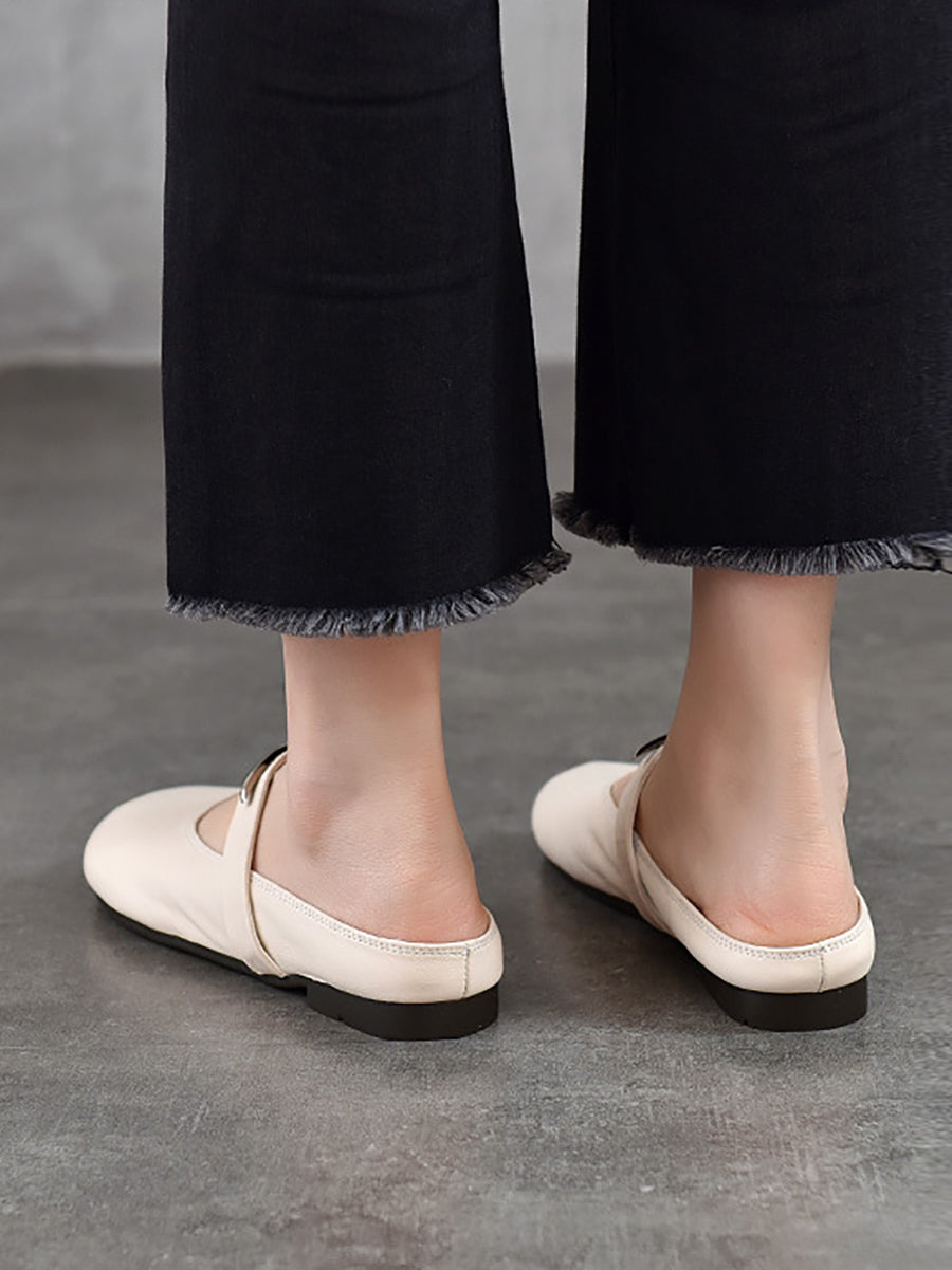 Pantuflas planas de piel auténtica para mujer, ideales para el verano.