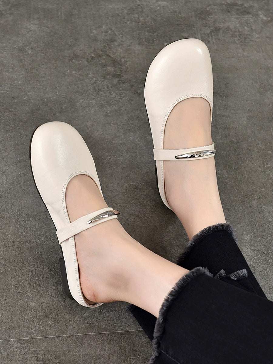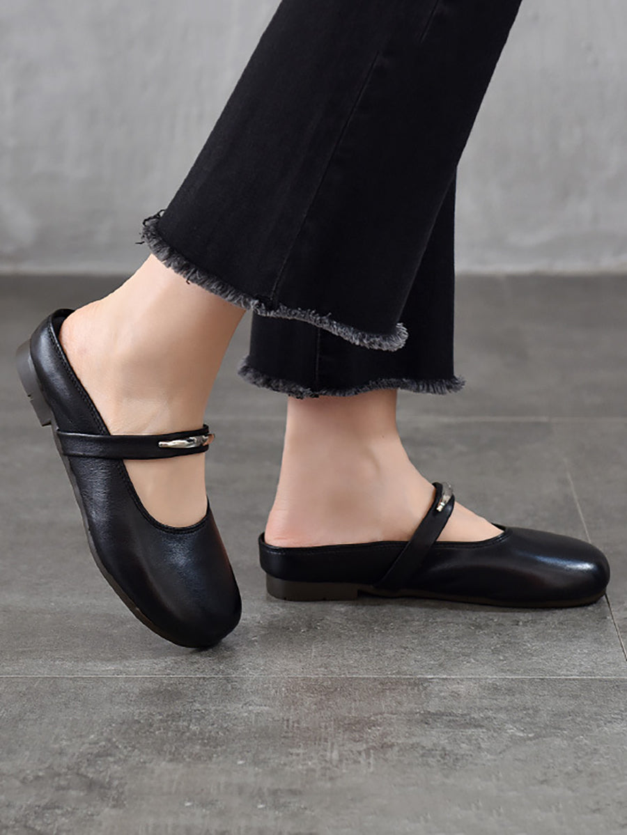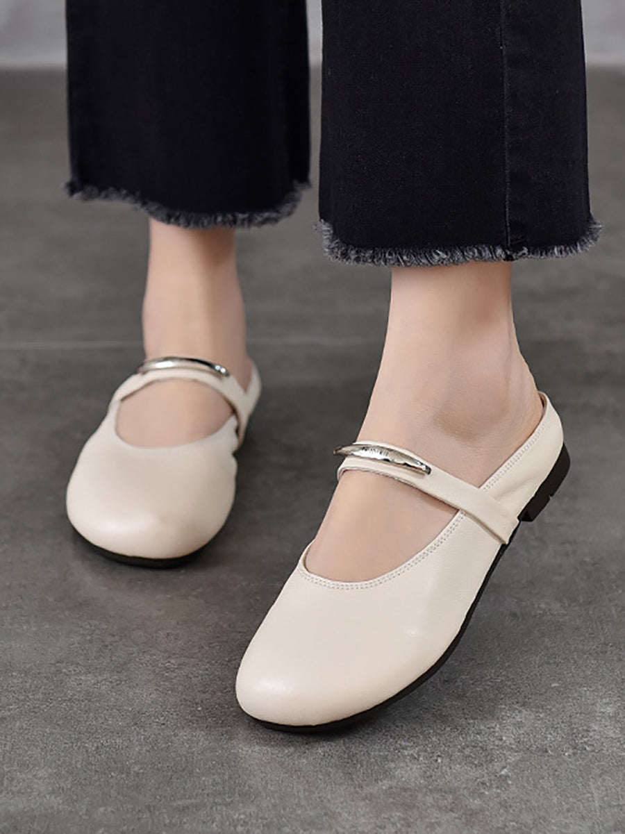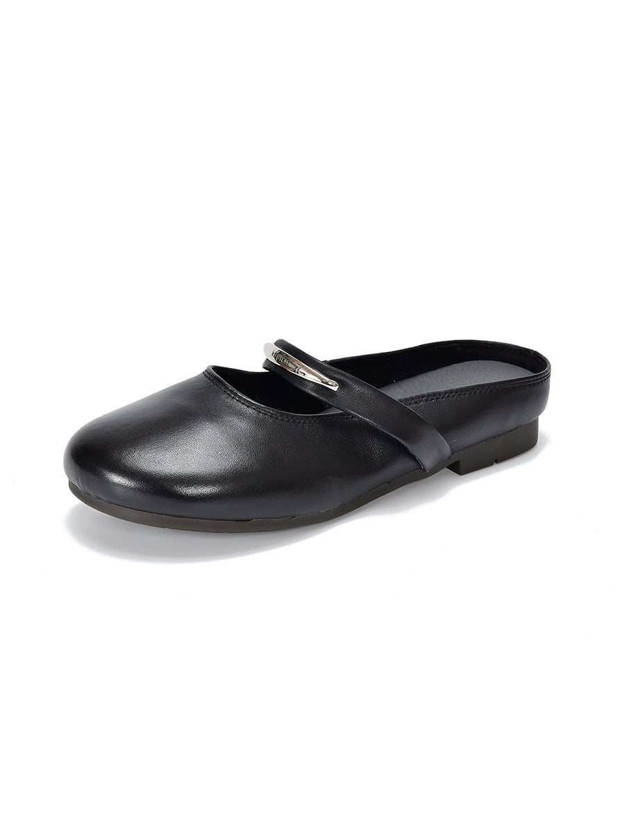 Pantuflas planas de piel auténtica para mujer, ideales para el verano.