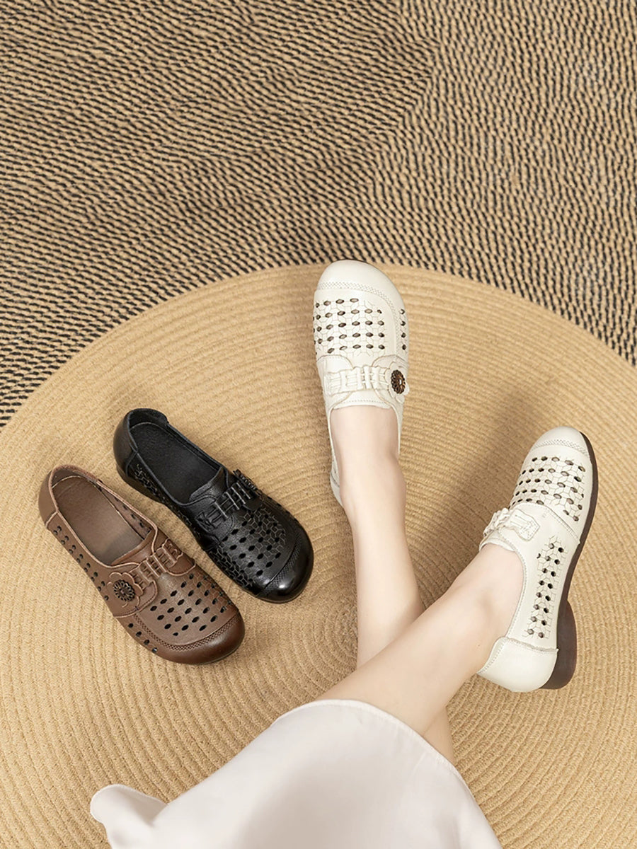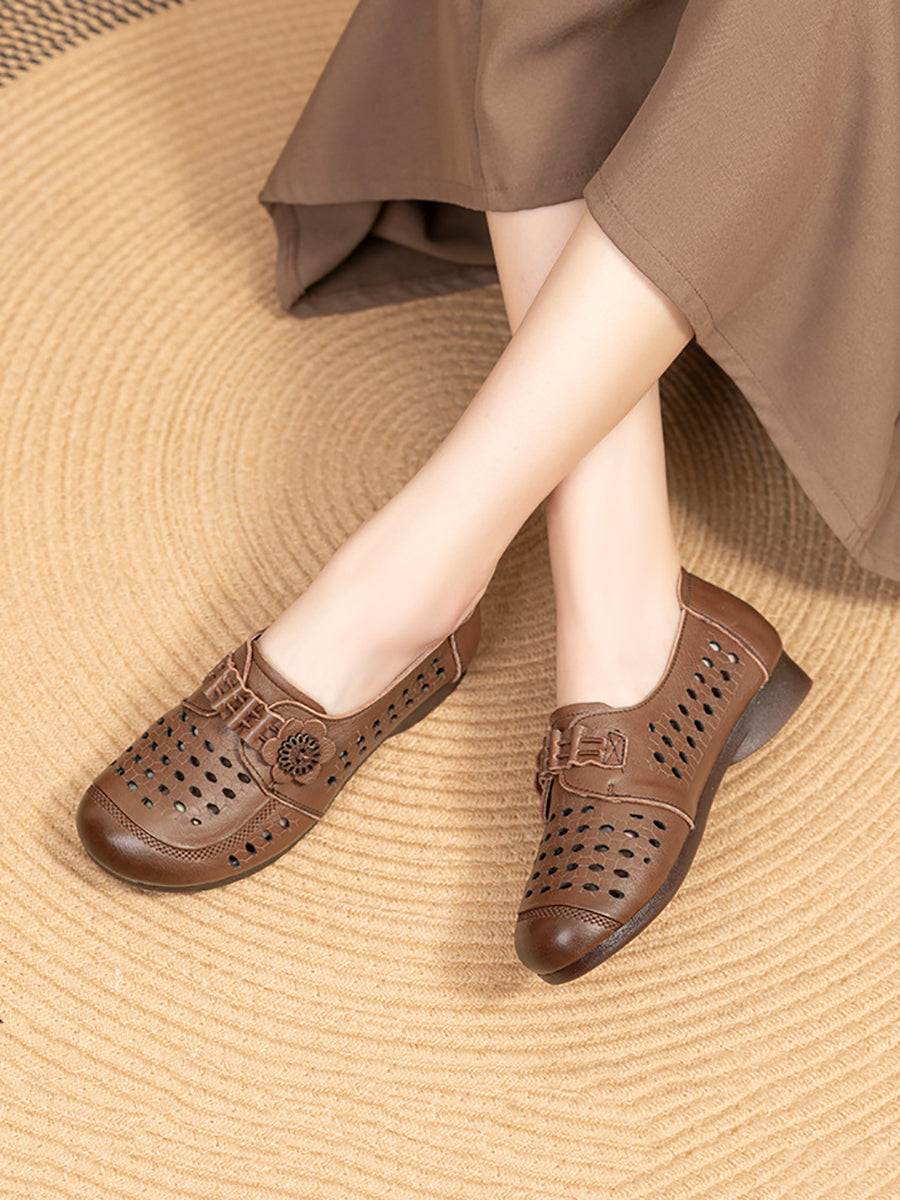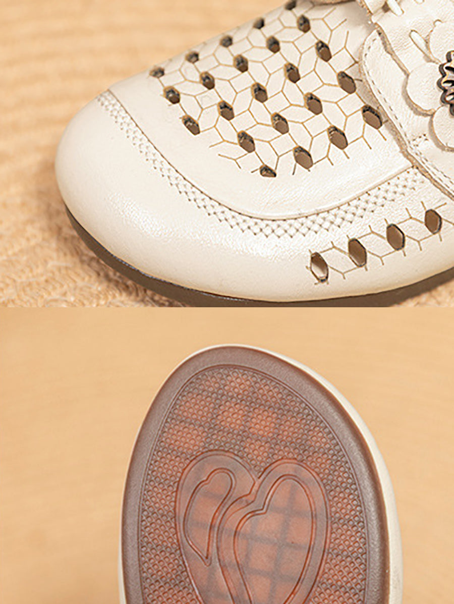Sandalias de verano para mujer de piel auténtica con tacón bajo.