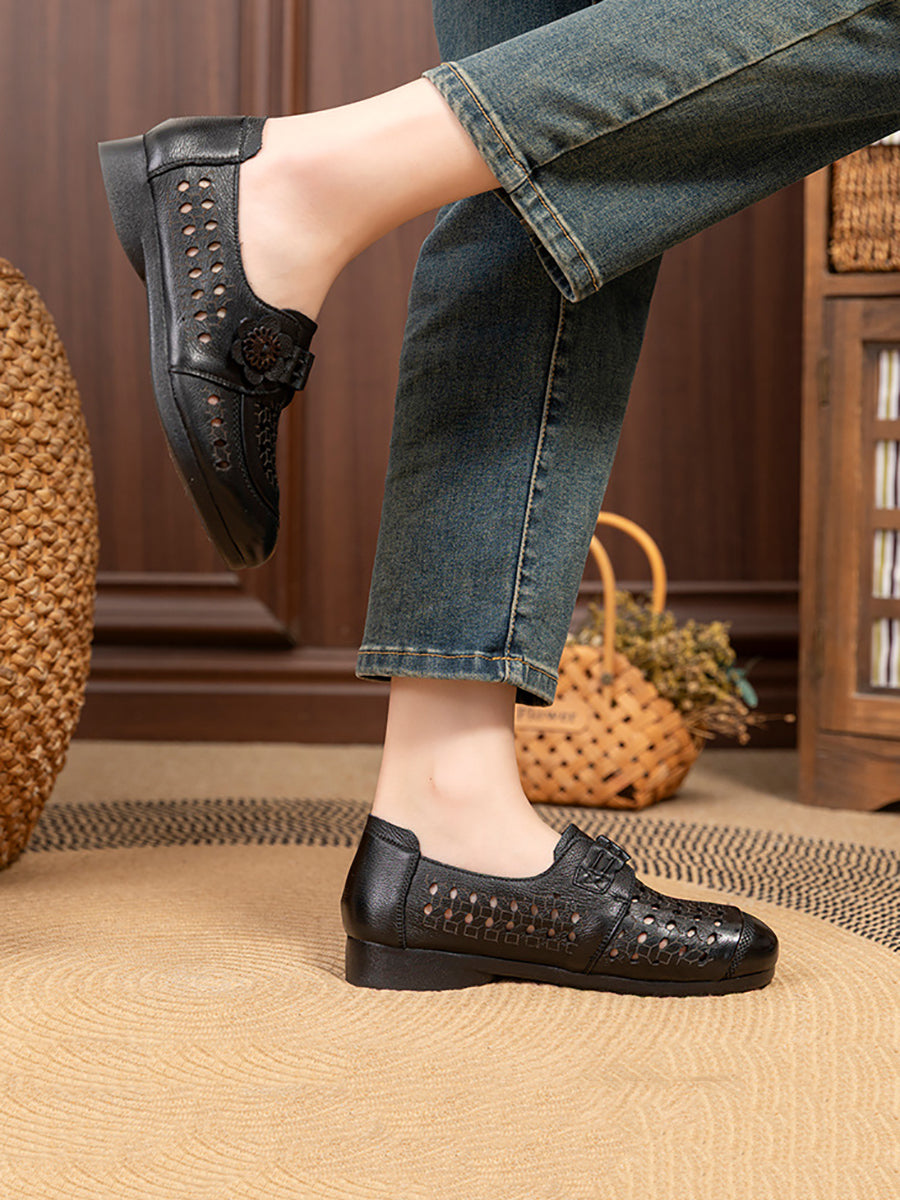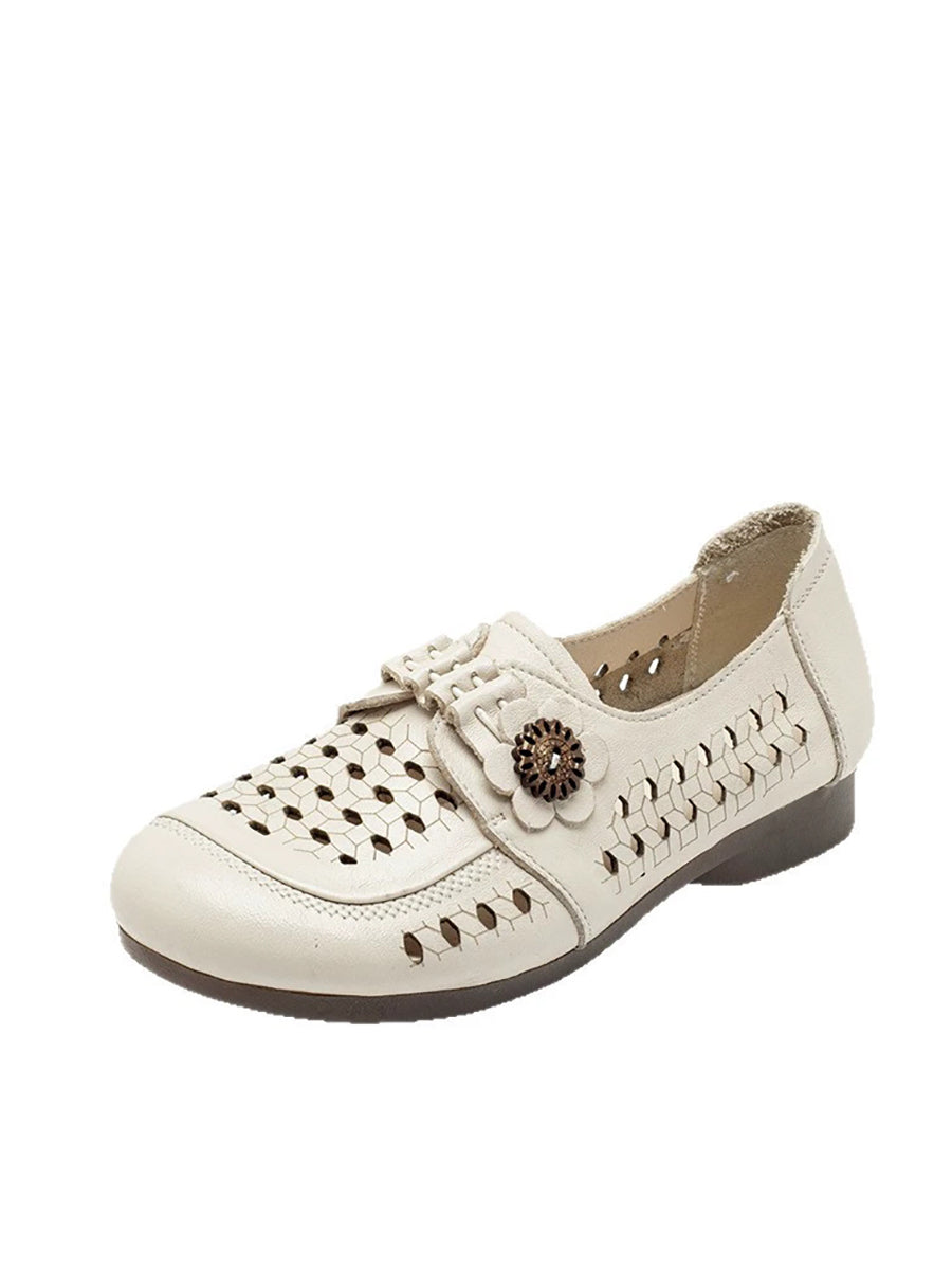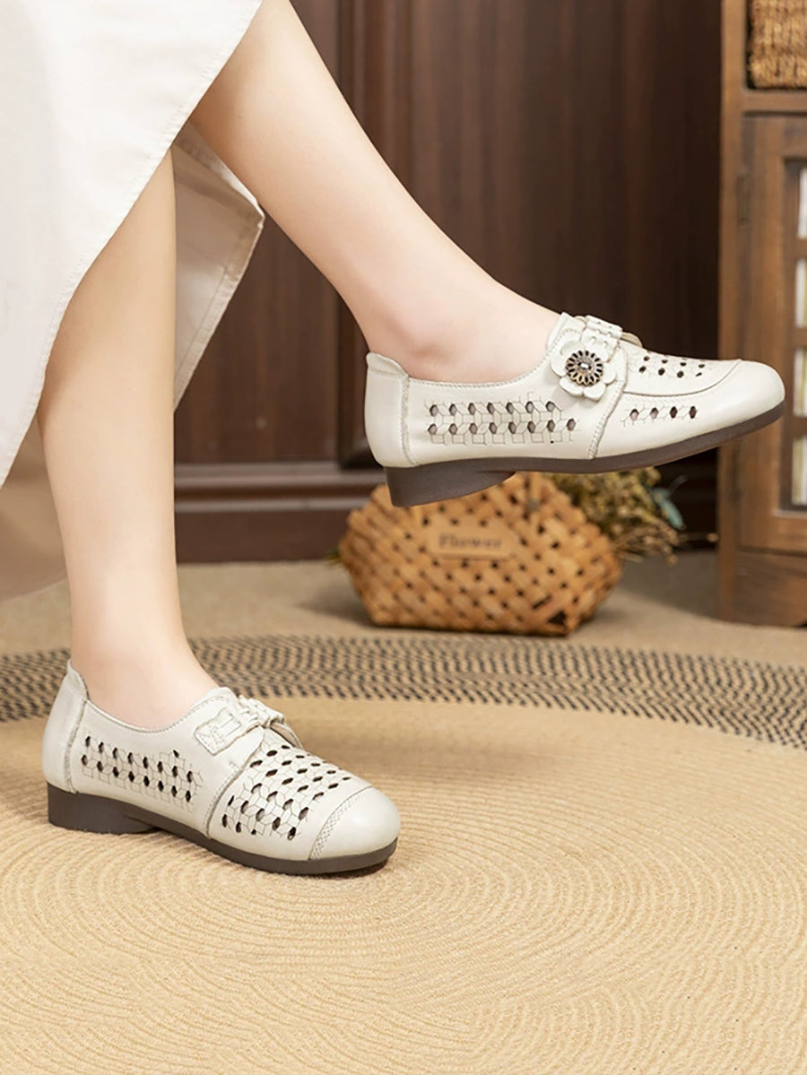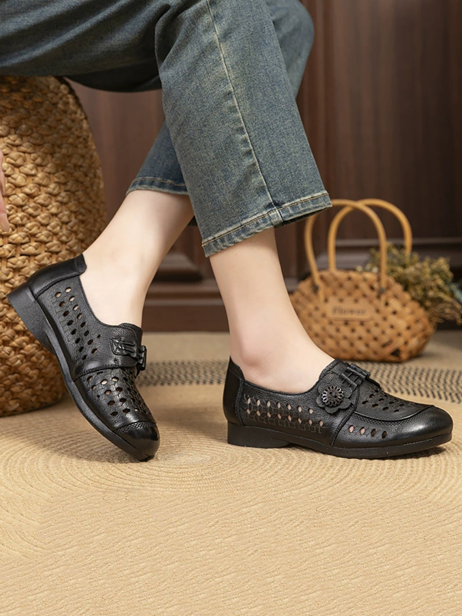 Sandalias de verano para mujer de piel auténtica con tacón bajo.