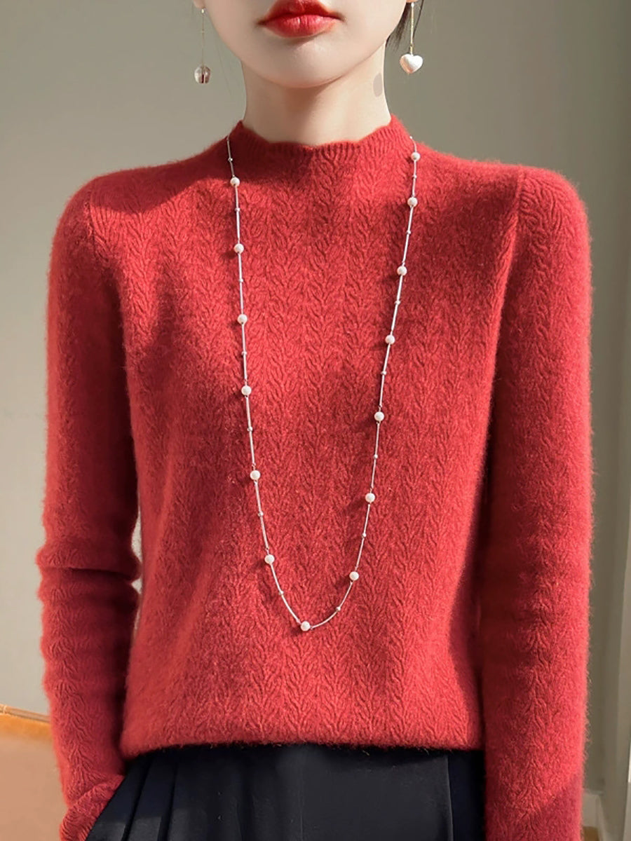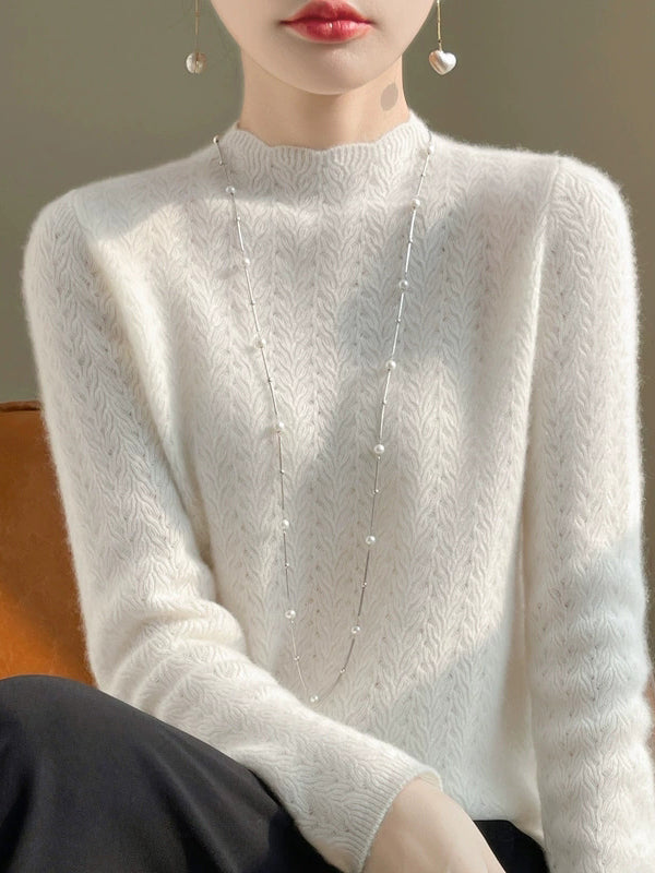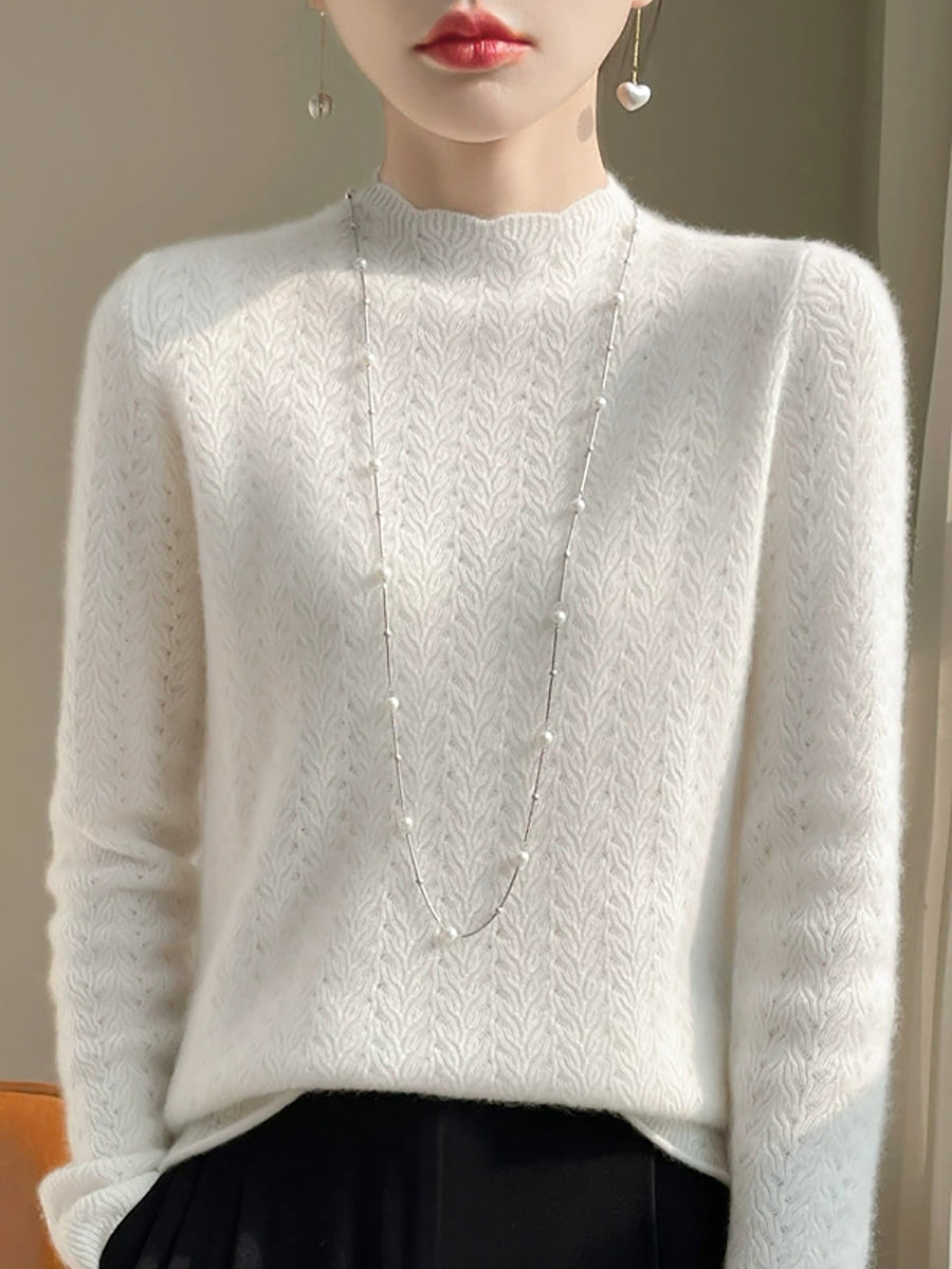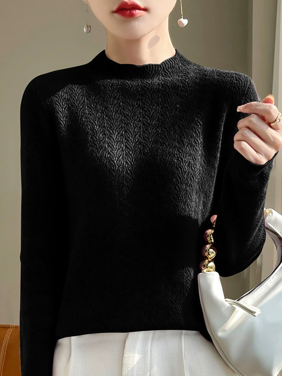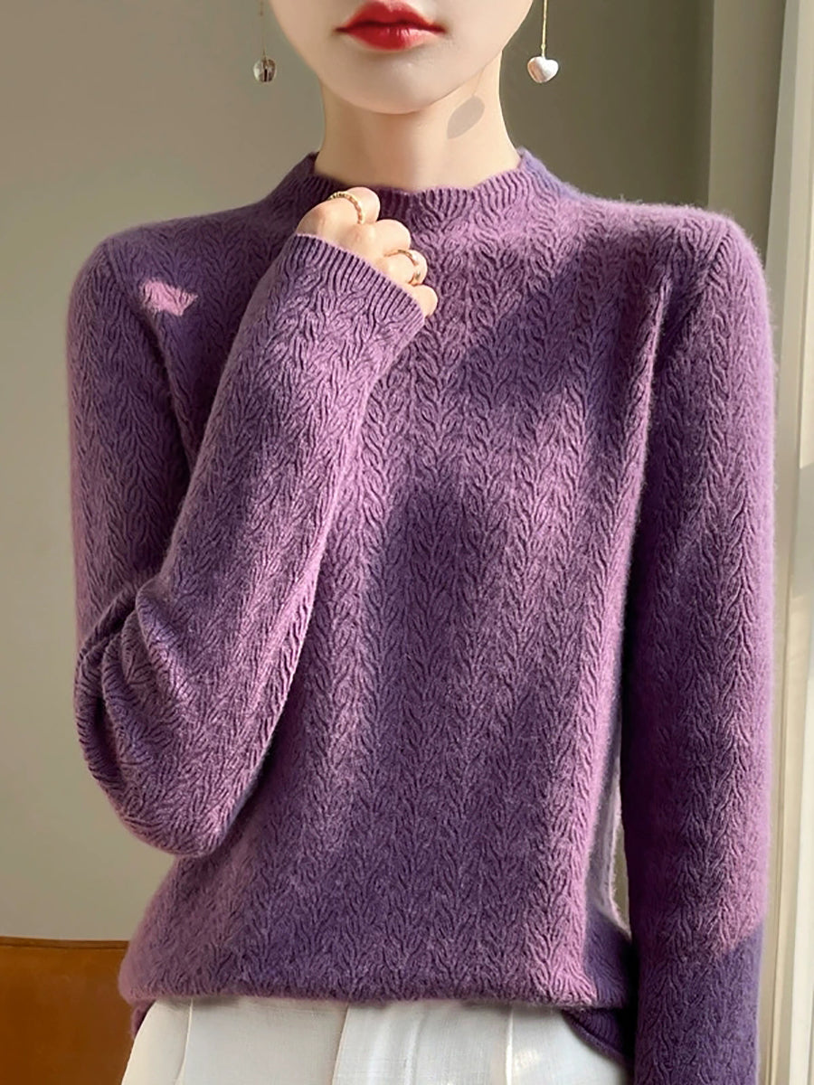 Suéter de cuello redondo de color puro y artístico de primavera para mujer