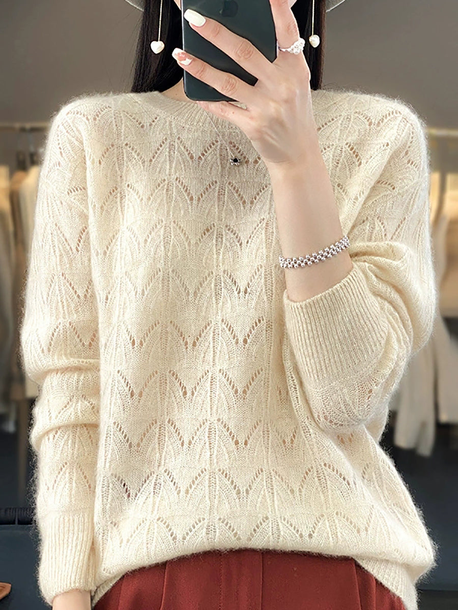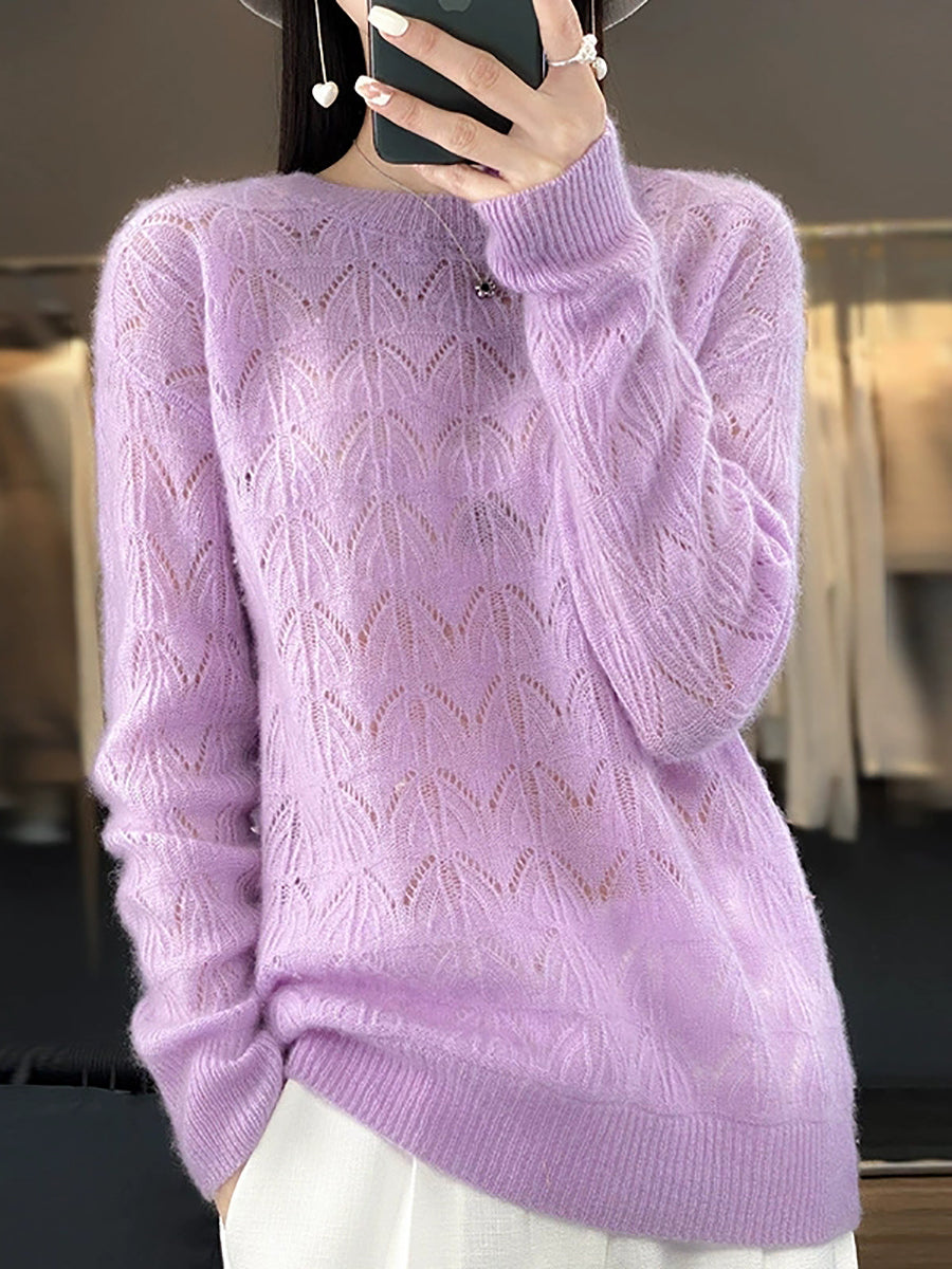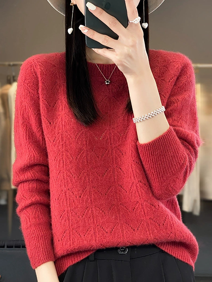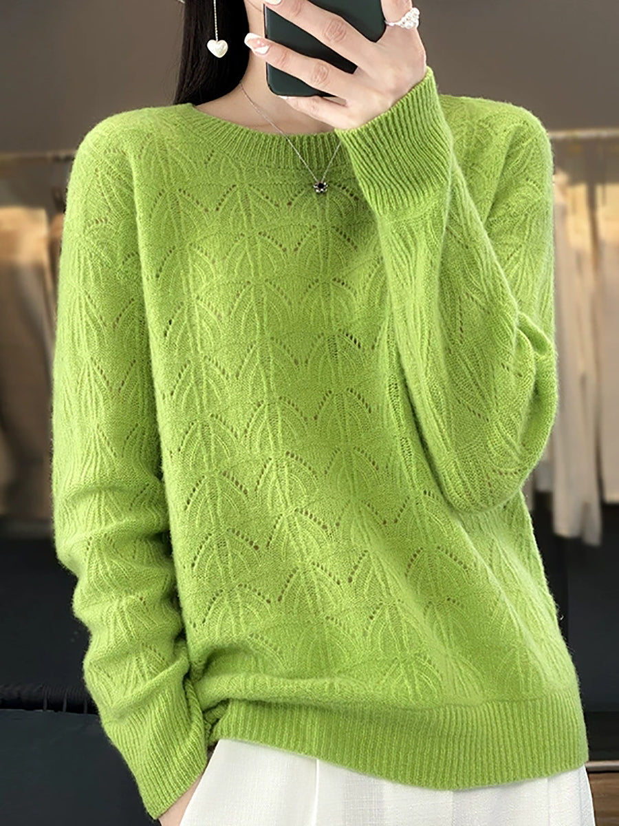 Suéter de lana con cuello redondo y color puro Artsy de primavera para mujer