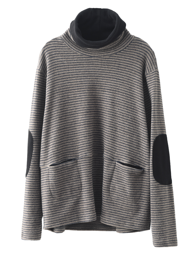 Sudadera casual con cuello alto a rayas para mujer de talla grande