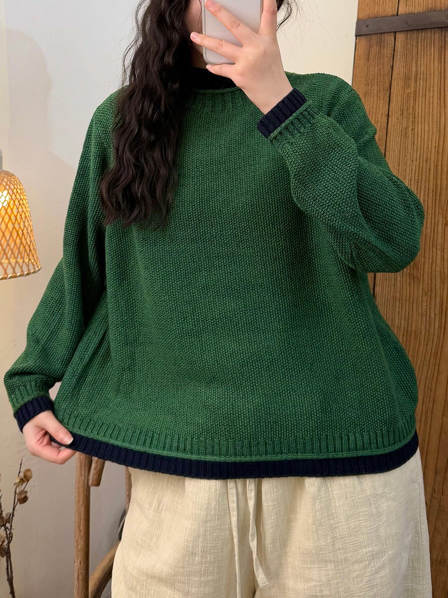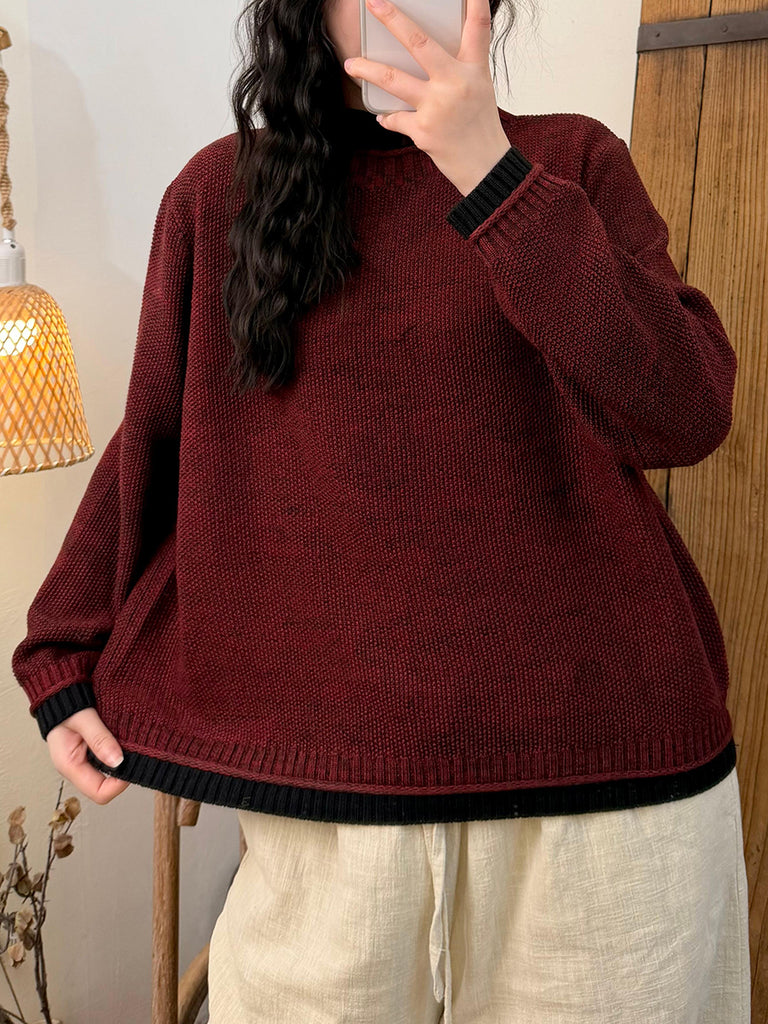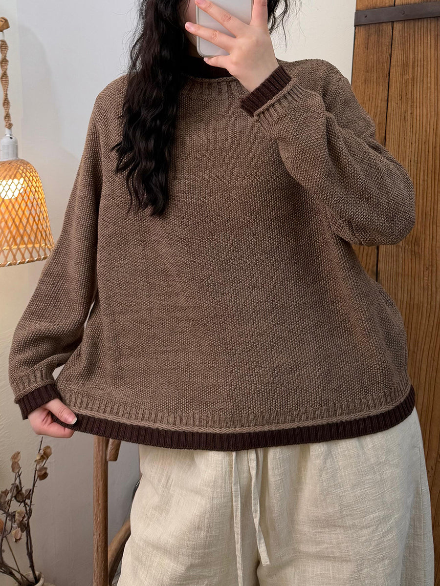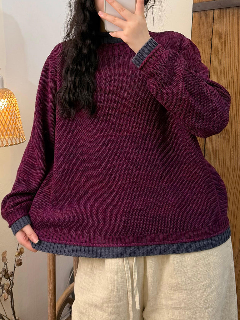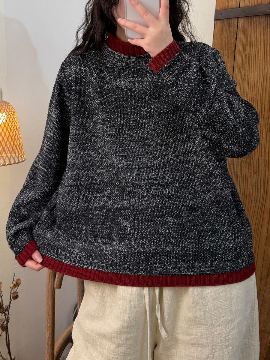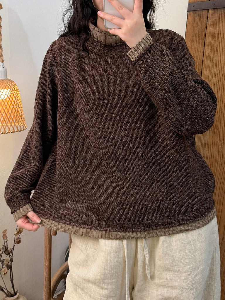Suéter de punto de cuello alto con bloques de color artísticos de otoño para mujer
