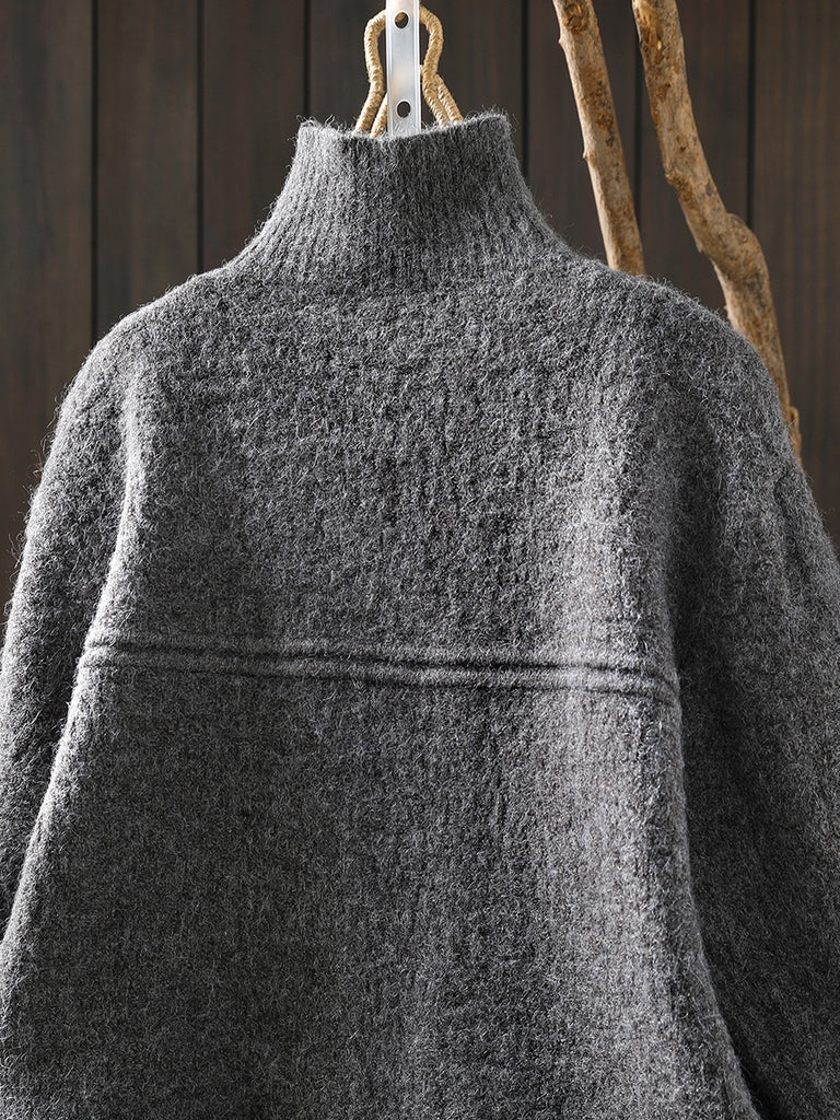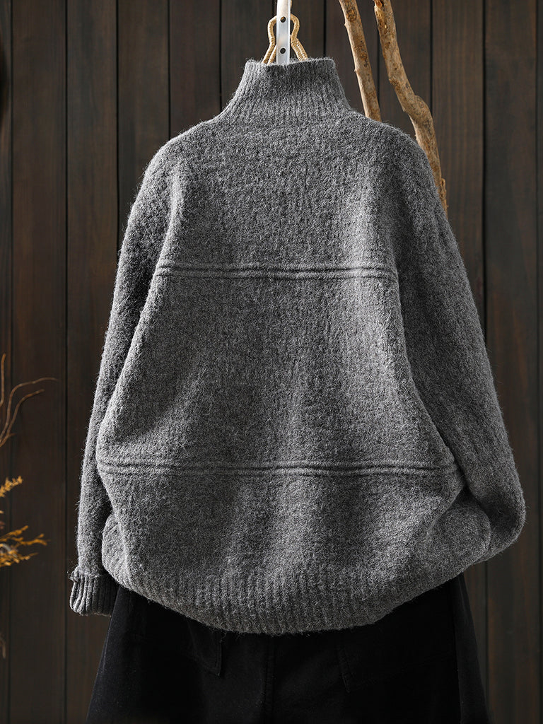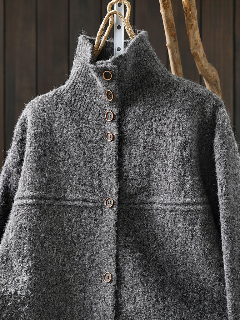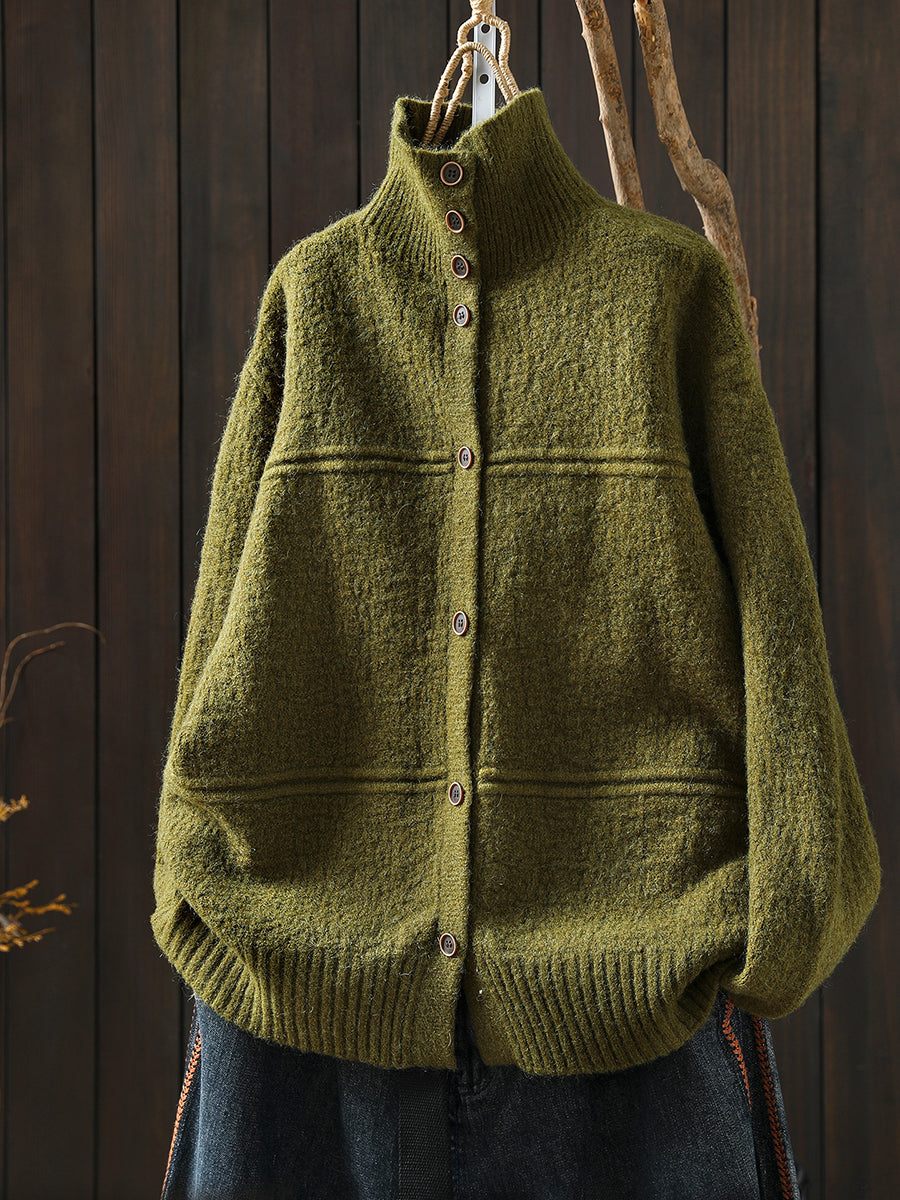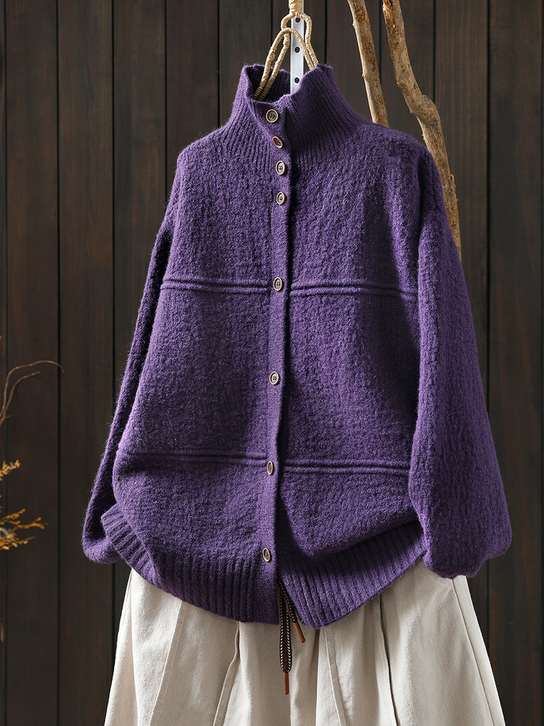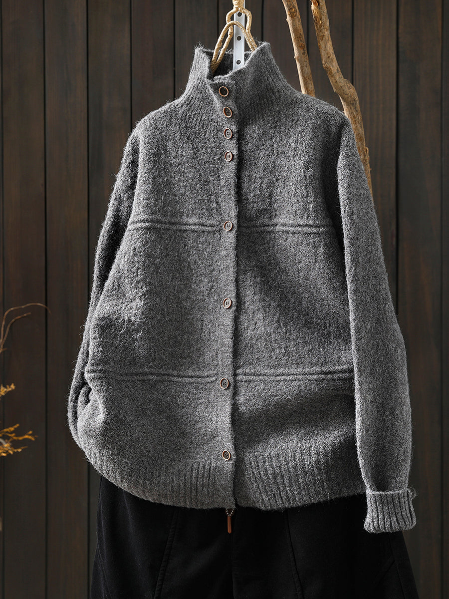 Suéter tipo cárdigan de cuello alto de color puro y artístico de otoño para mujer