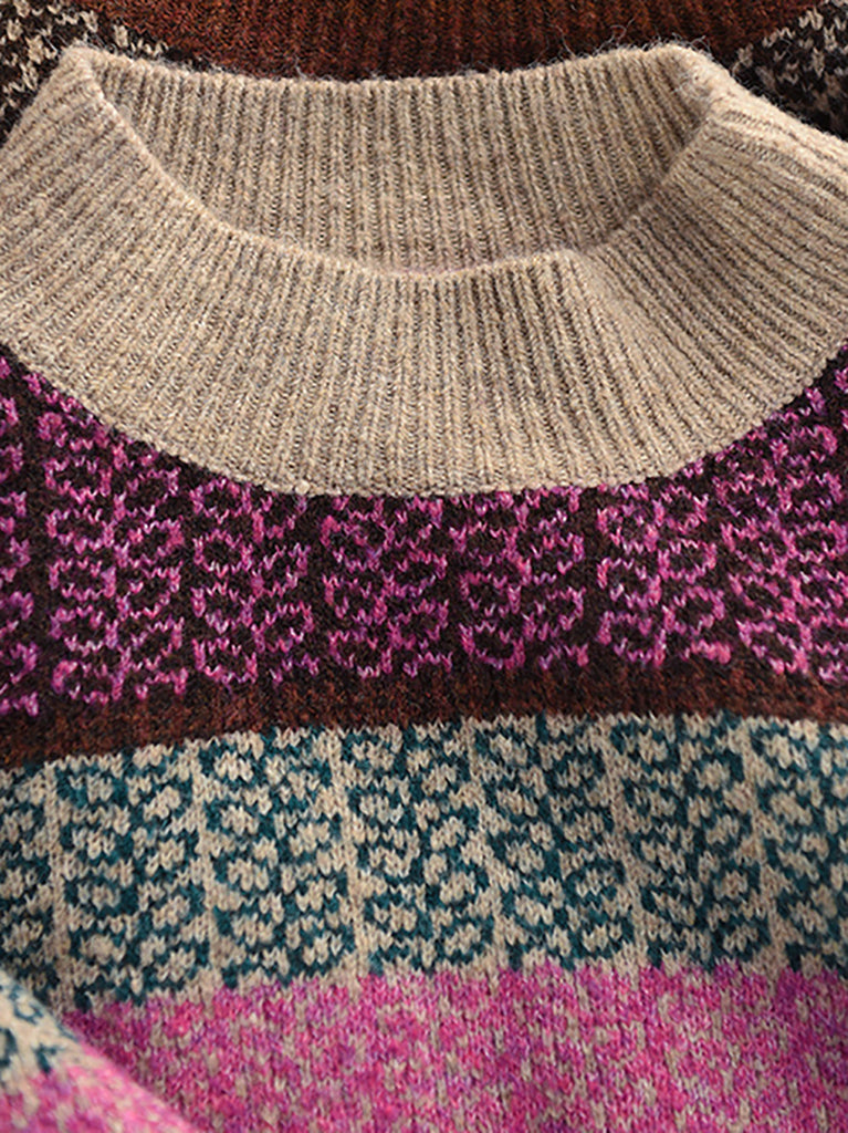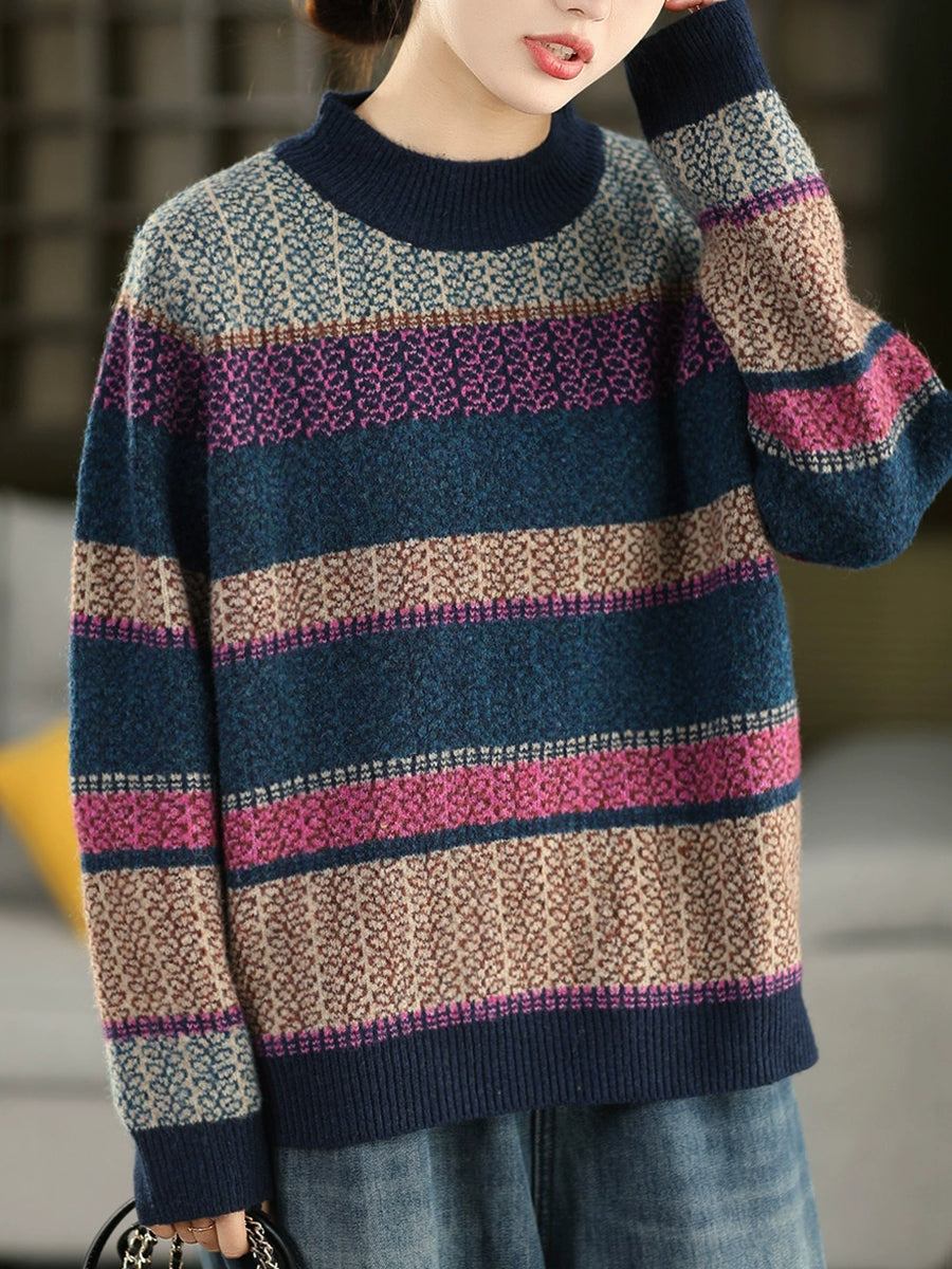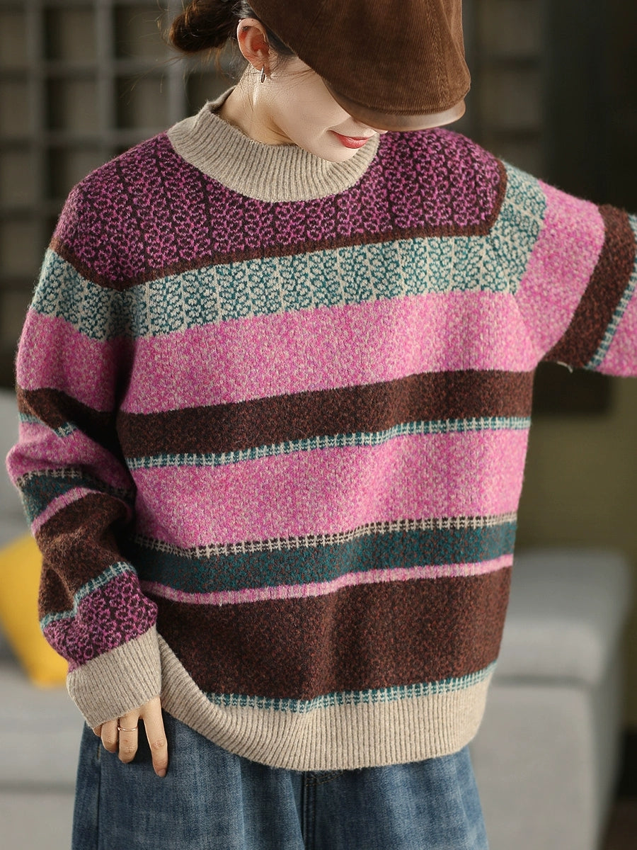 Suéter de cuello alto a rayas artísticas para mujer, estilo otoño