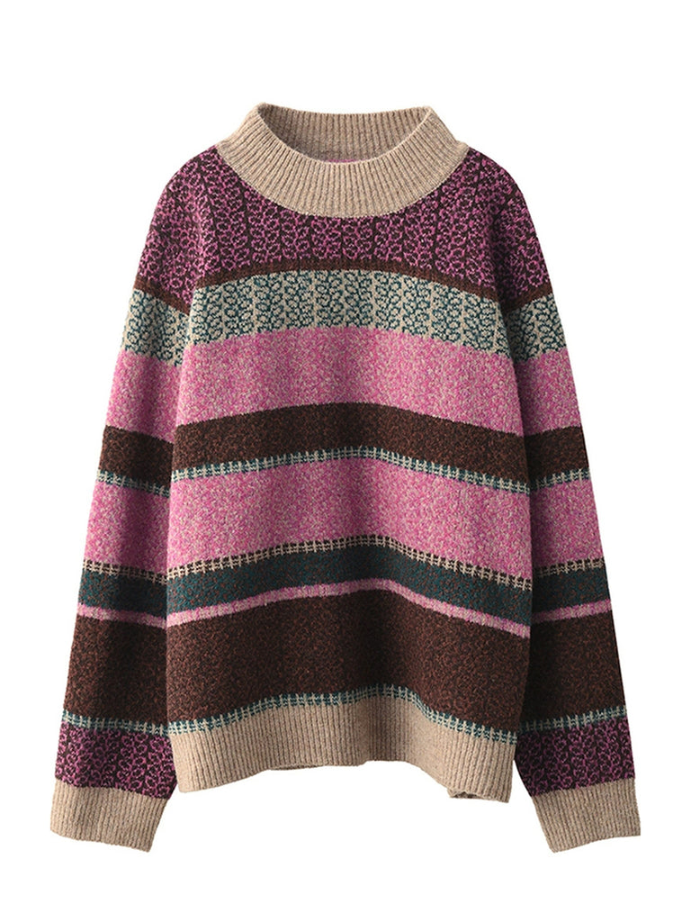 Confeccionado con una mezcla premium de 55% acrílico y 45% algodón, este suéter ofrece una calidez y transpirabilidad óptimas para entretiempo. Su cuello alto le aporta un toque clásico y sofisticado, mientras que sus mangas largas permiten crear diversos estilos. Con un estampado de rayas de estilo artístico, es una prenda ideal para combinar con otras capas en otoño e invierno, perfecta para quienes buscan comodidad y un toque distintivo.