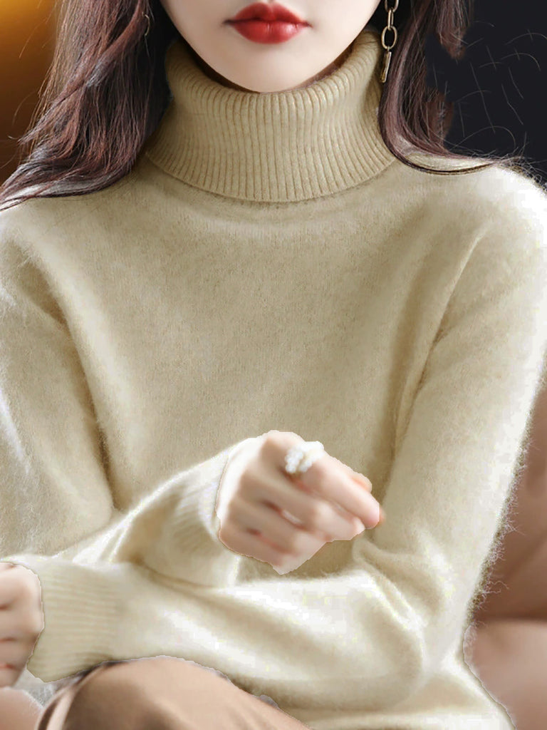 Suéter de cuello alto de lana de punto informal de otoño para mujer