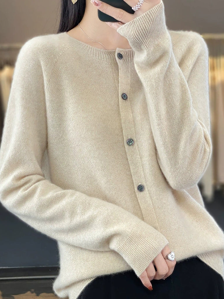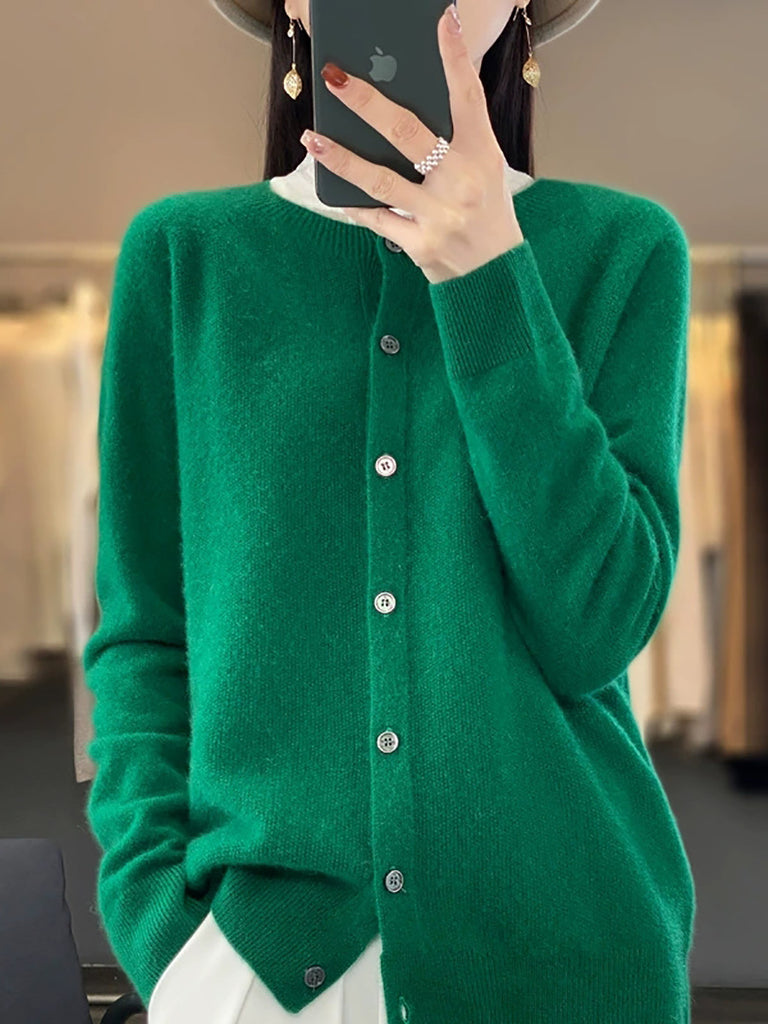 Suéter de cuello redondo de color liso para mujer, estilo casual de otoño