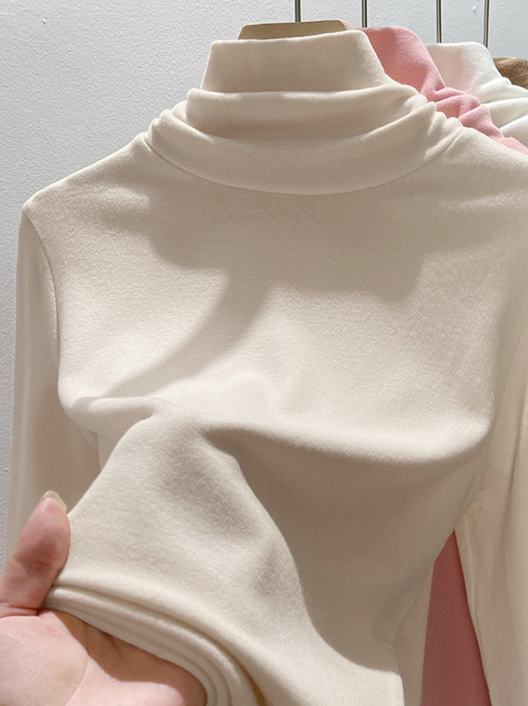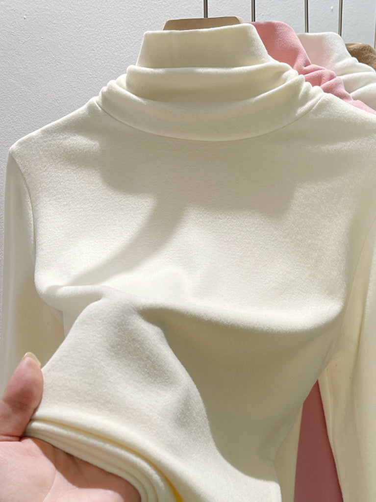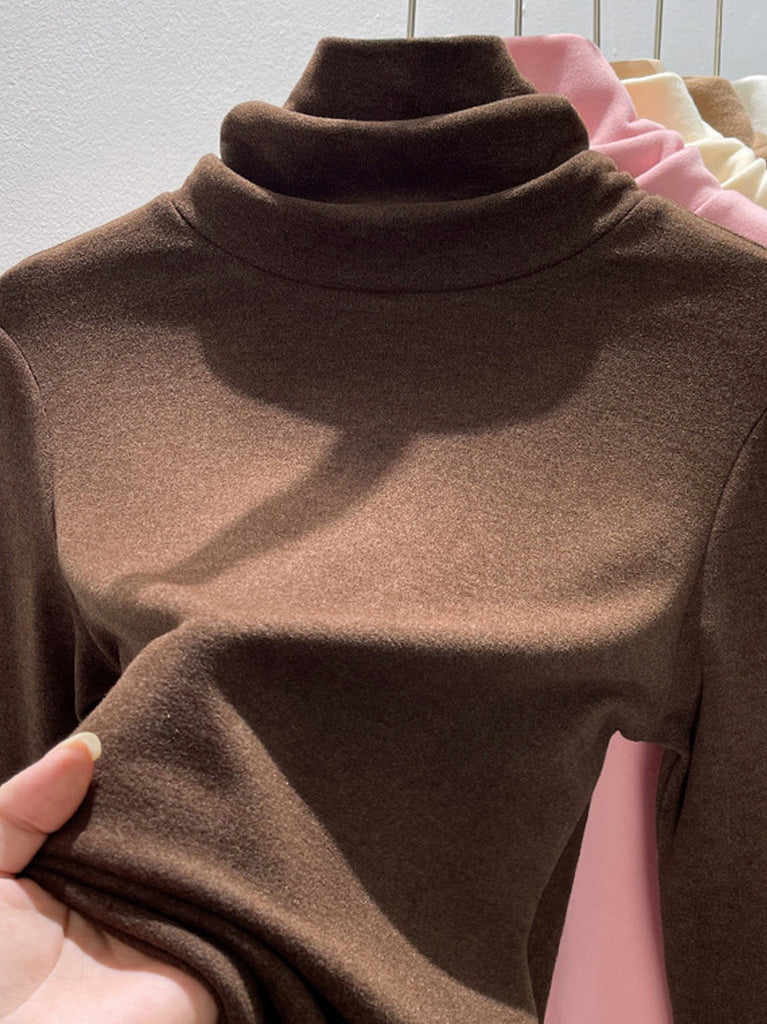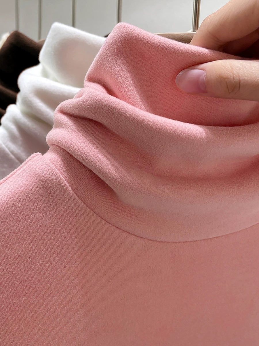 Suéter de cuello alto de color liso para mujer, estilo casual de otoño