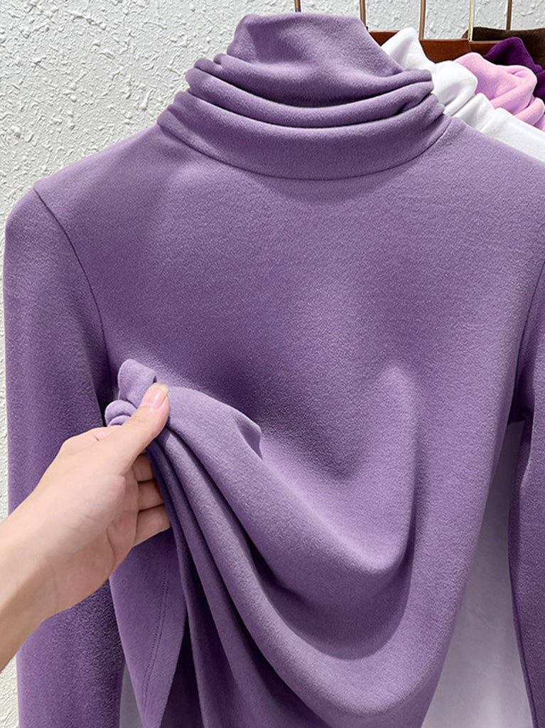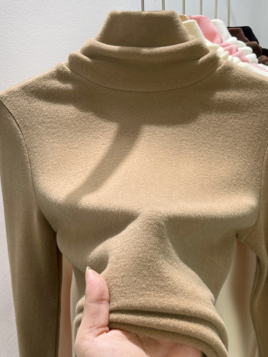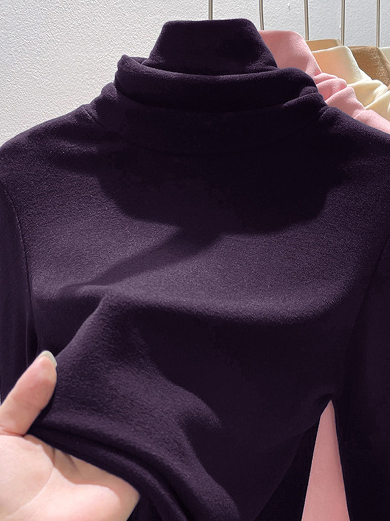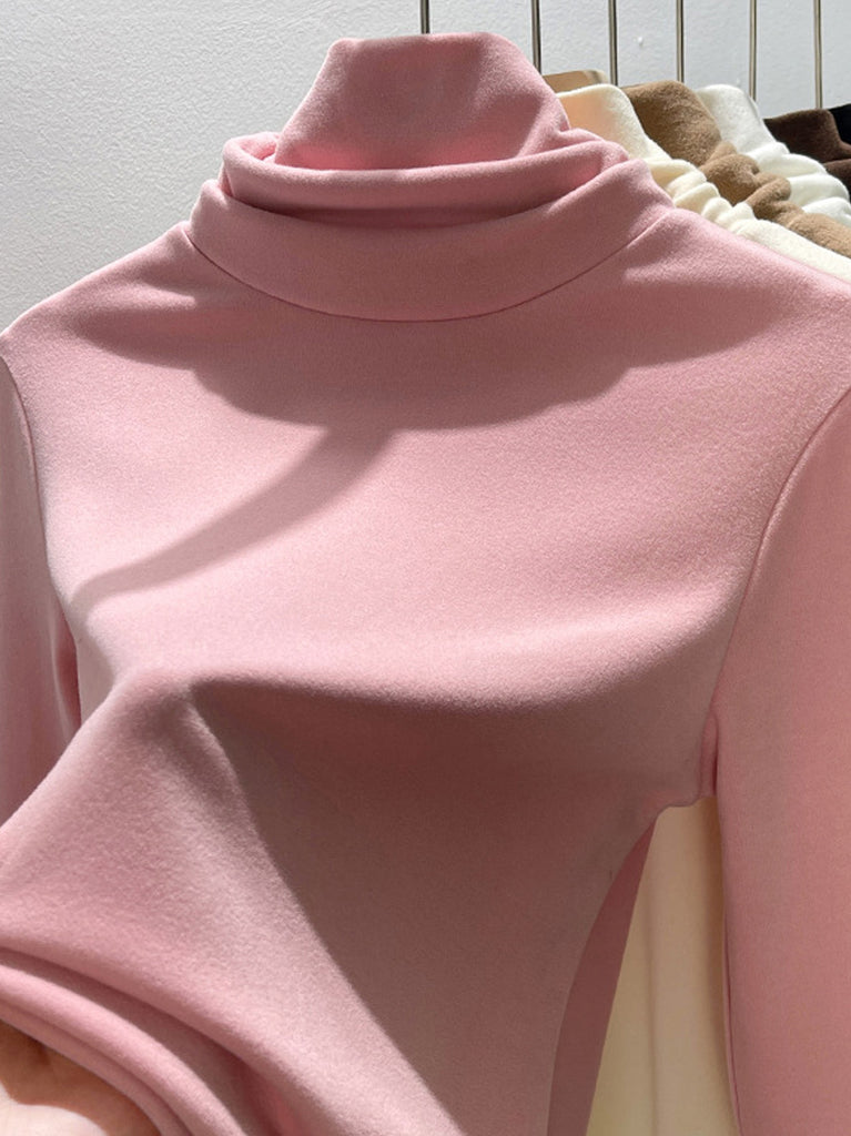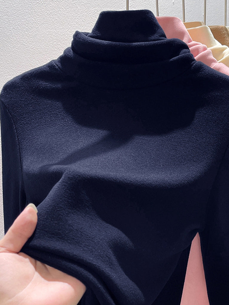 Suéter de cuello alto de color liso para mujer, estilo casual de otoño